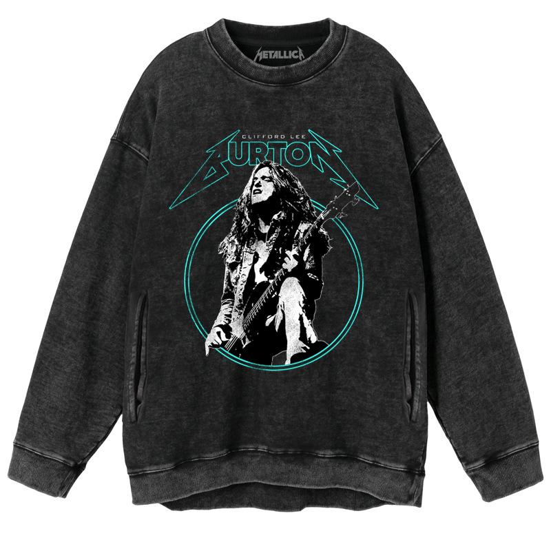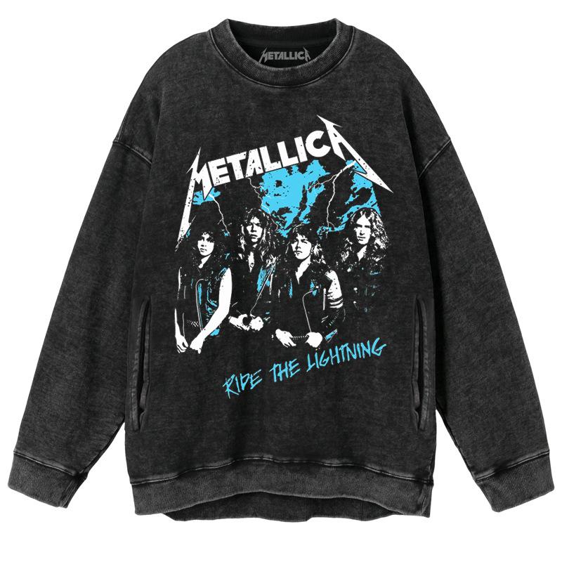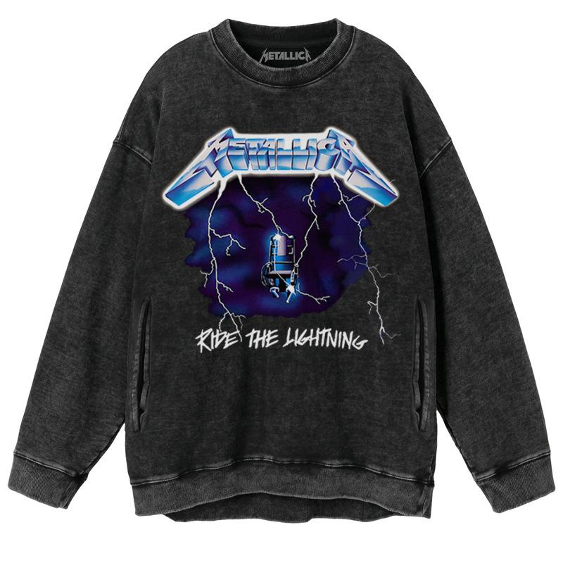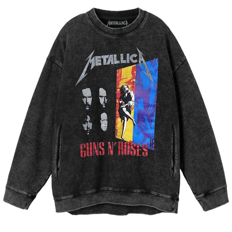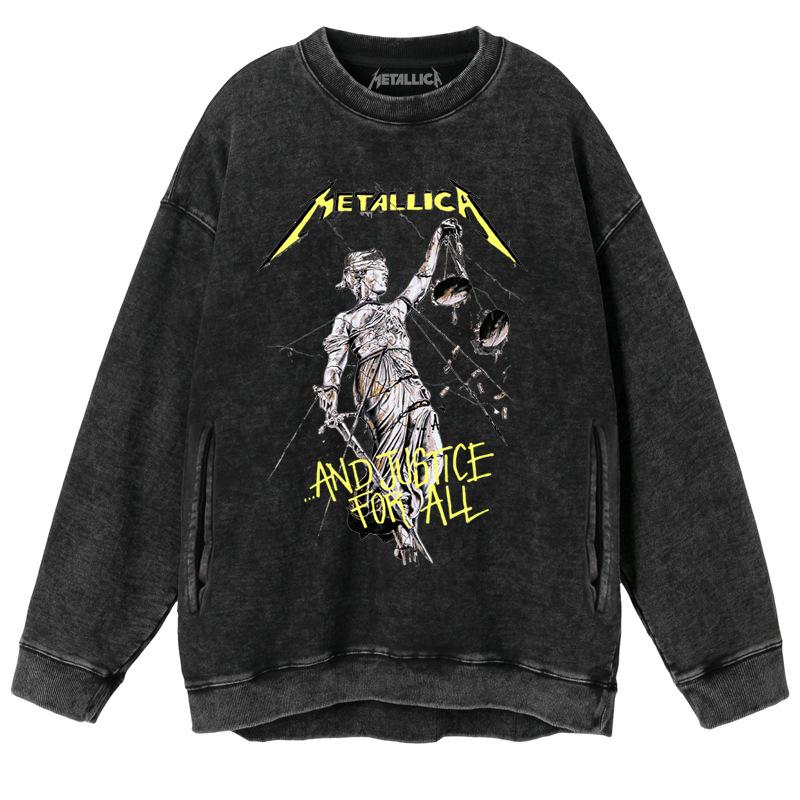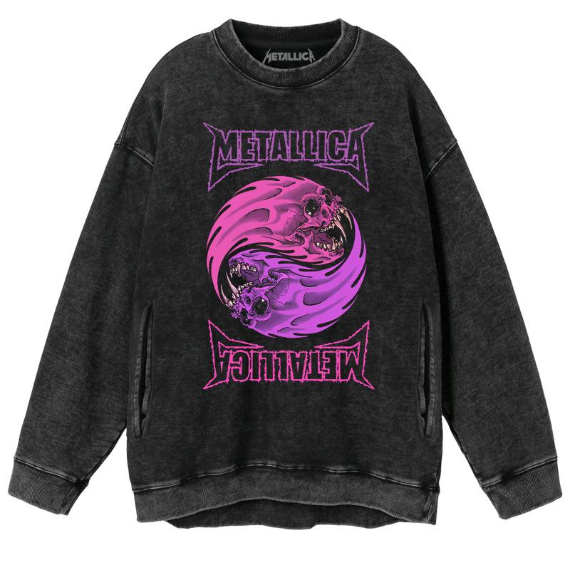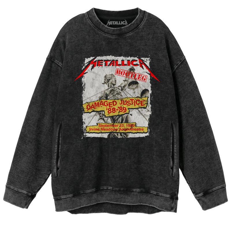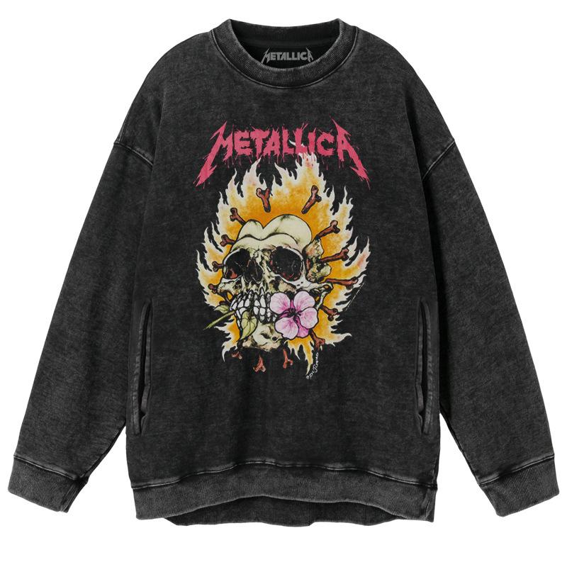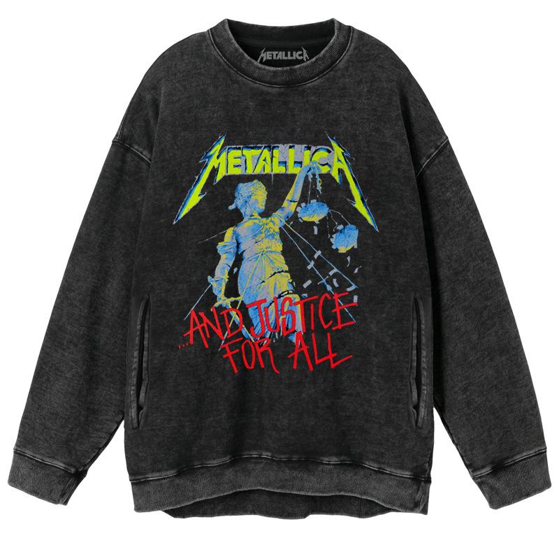 Suéter de cuello redondo para hombre con diseño de batik vintage desgastado y lavado de la banda de metal Metallica King, rock punk