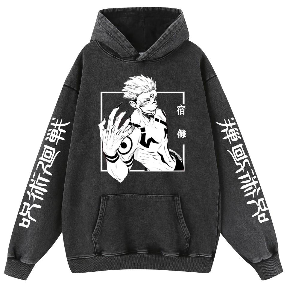 Suéter con capucha de algodón vintage lavado Jujutsu Kaisen Spell Battle Cross-border para hombre y mujer