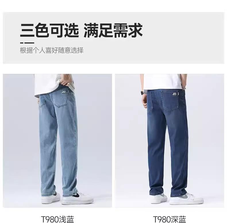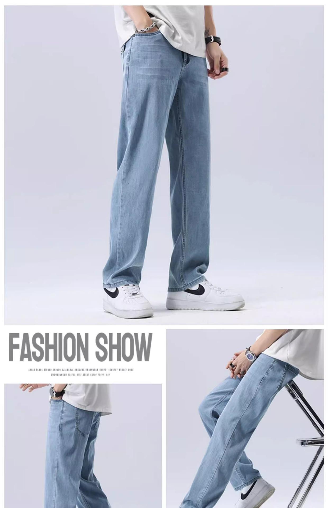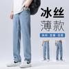 Pantalones vaqueros holgados, rectos y de cintura media, de seda helada, informales, para hombre, primavera y otoño, modernos, combinables, vintage.
