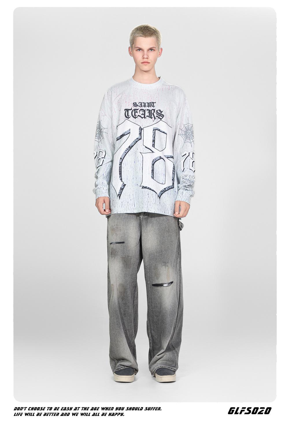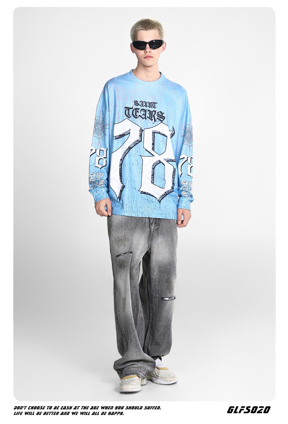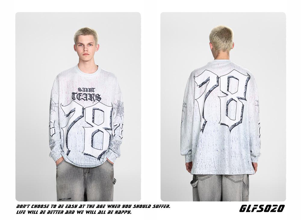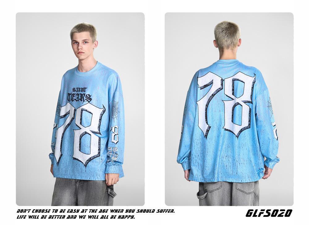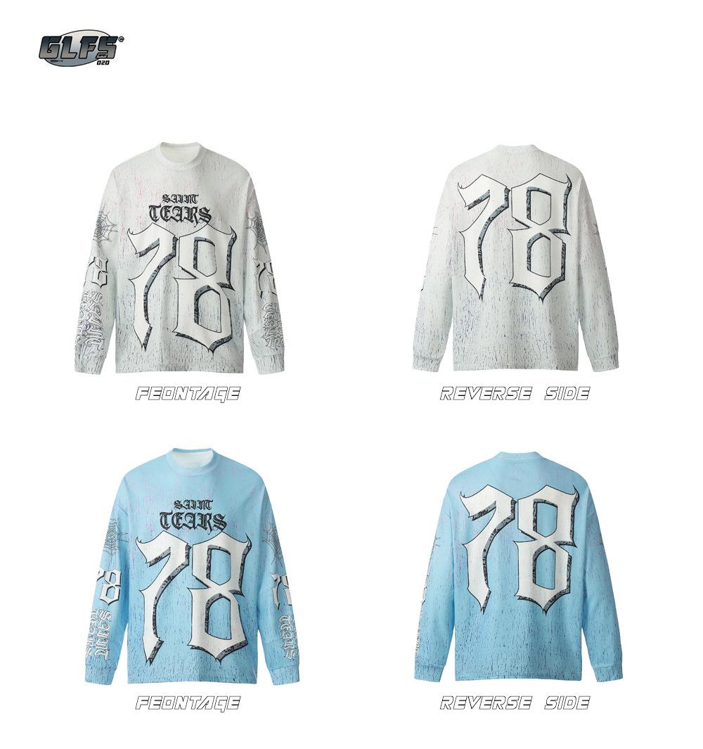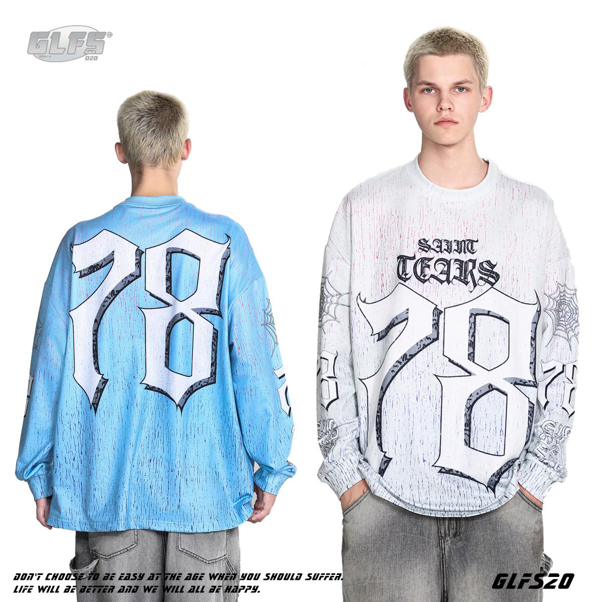 Camiseta deportiva retro americana de araña con estampado digital GLFS 78, camiseta holgada informal de manga larga para hombre y mujer.