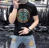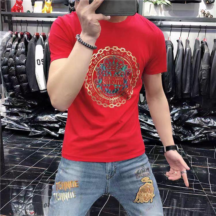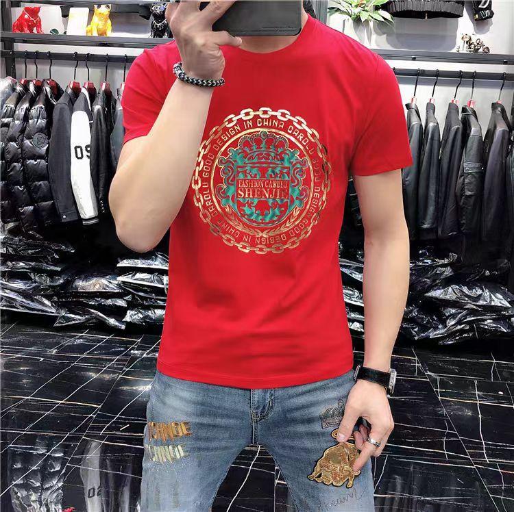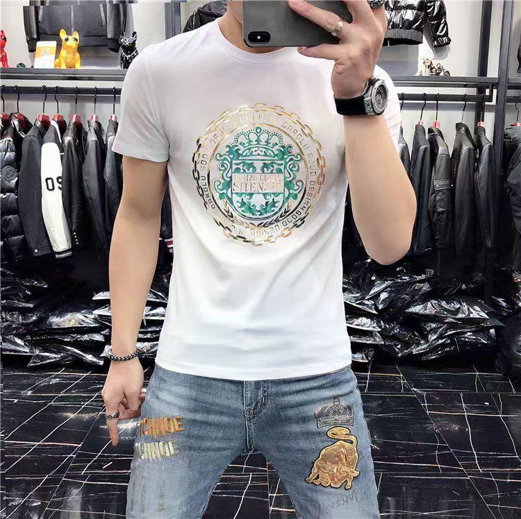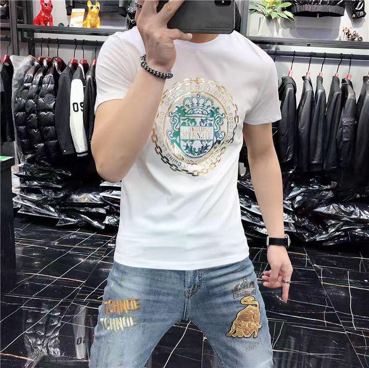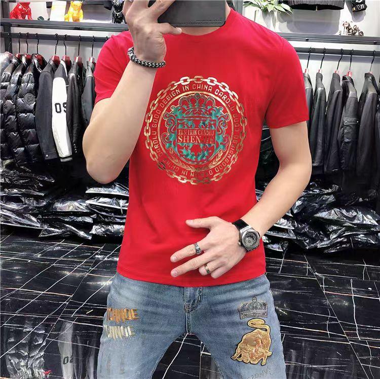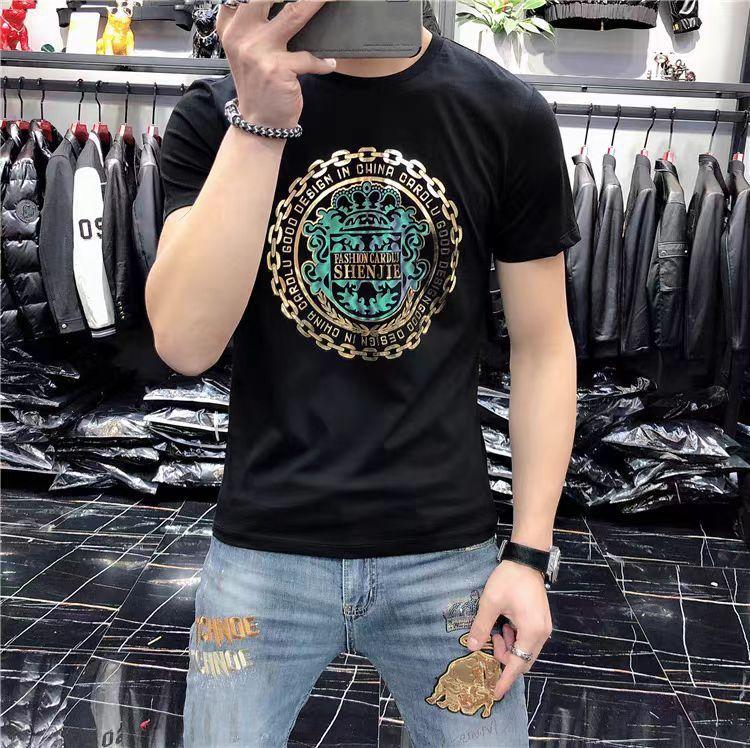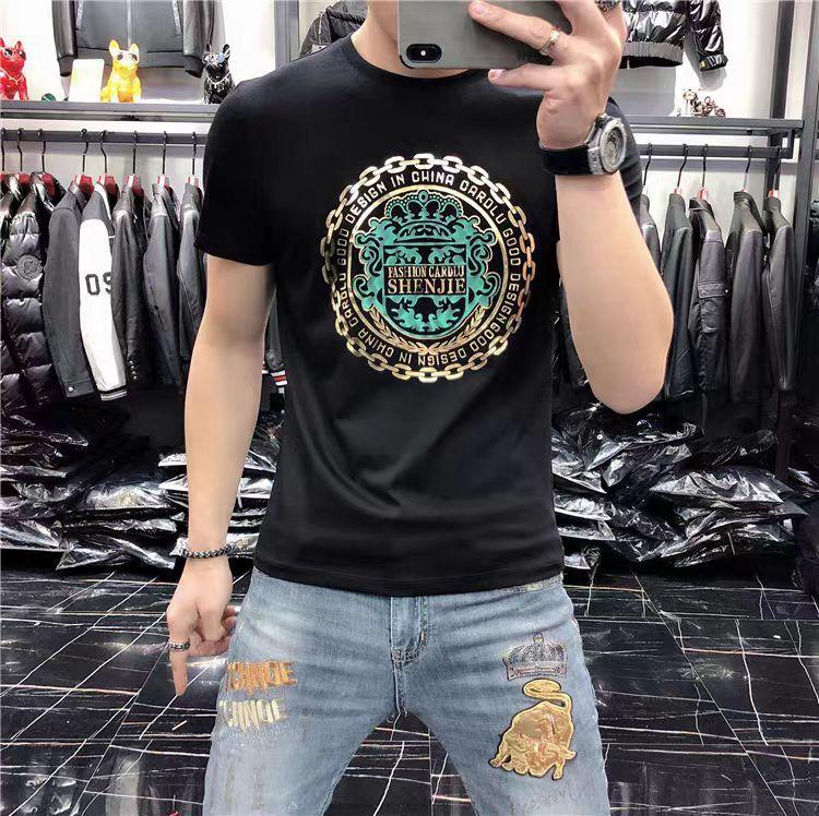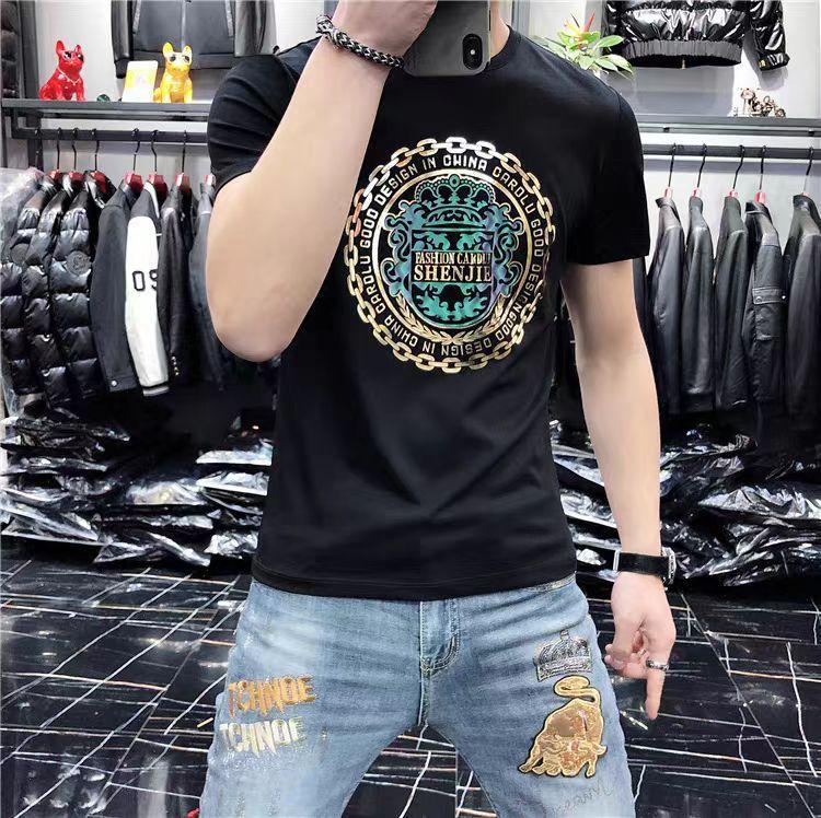 Camiseta de manga corta para hombre, nueva colección de verano 2024, con estampado dorado, tendencia de moda, algodón mercerizado, cuello redondo, corte ajustado.