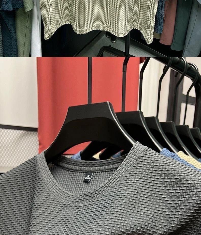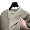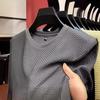 Camiseta de manga corta fina de verano de malla de seda de hielo para hombre, deportiva, informal, holgada, de secado rápido, transpirable, con cuello redondo y media manga.