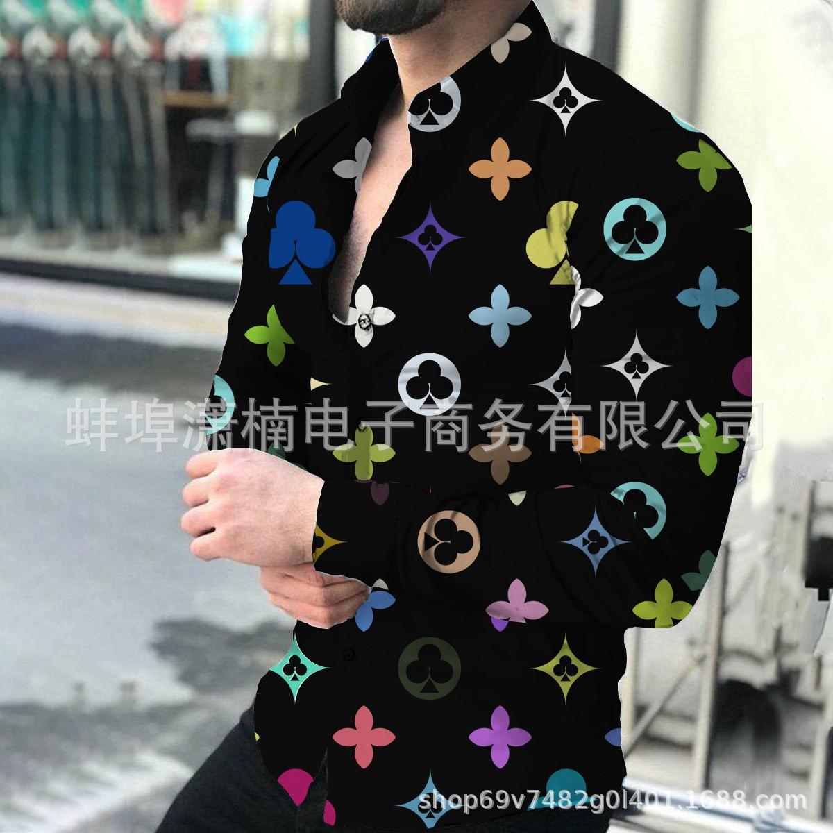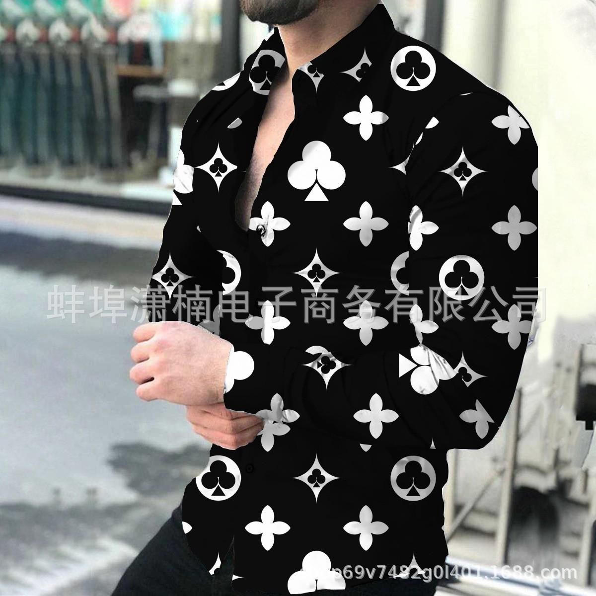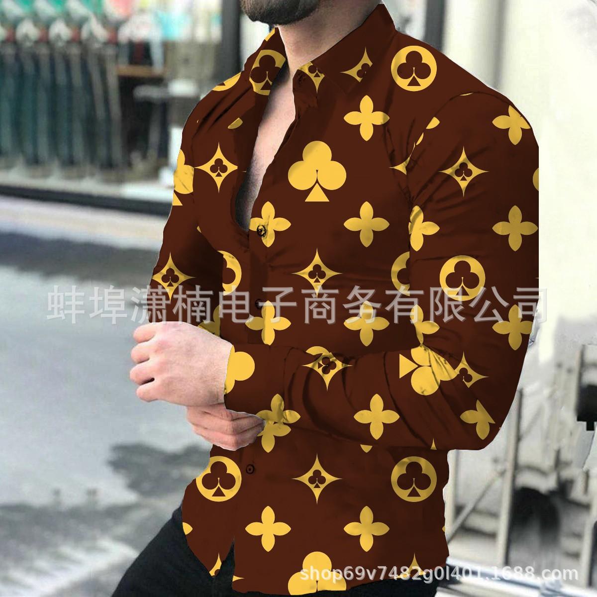Camisa de manga larga informal estampada para hombre, estilo europeo y americano, de Amazon Independent Station, superventas, primavera 2023