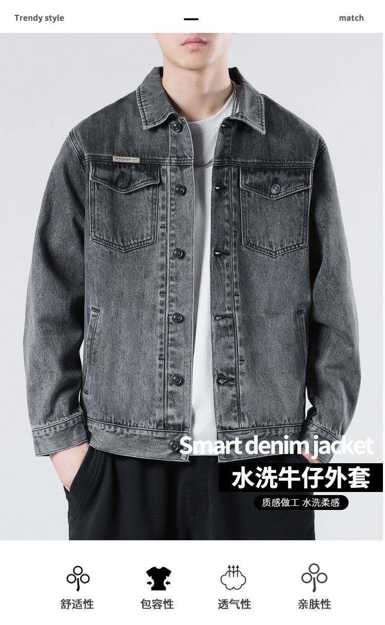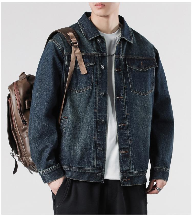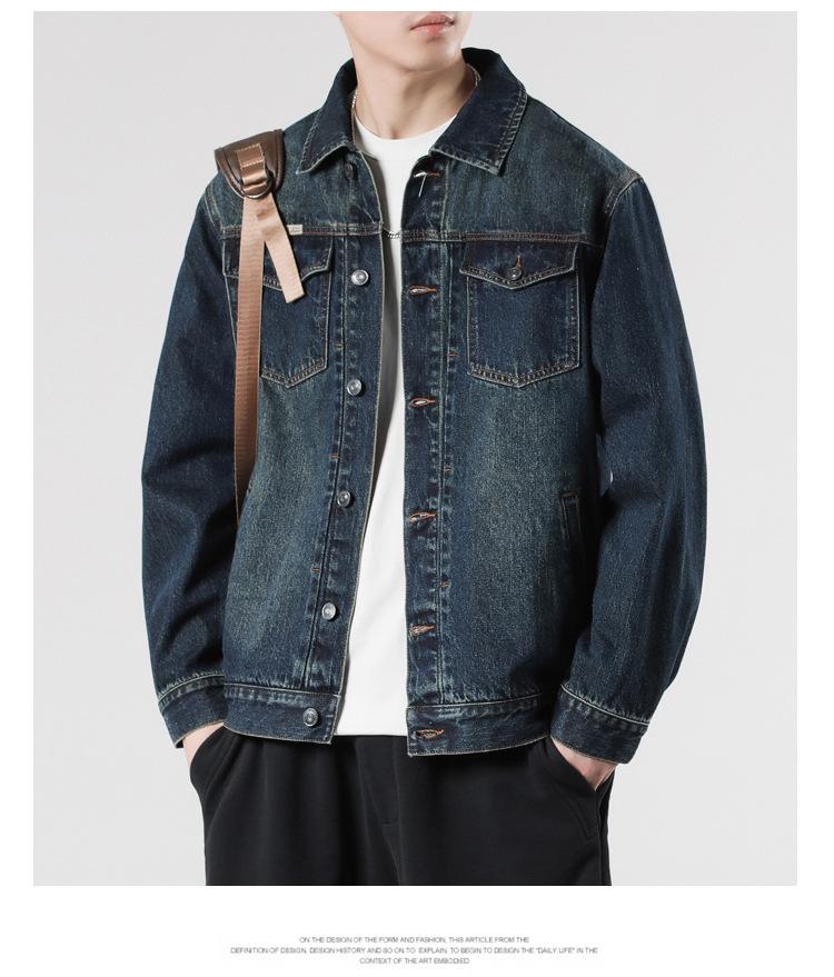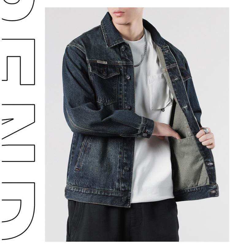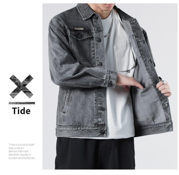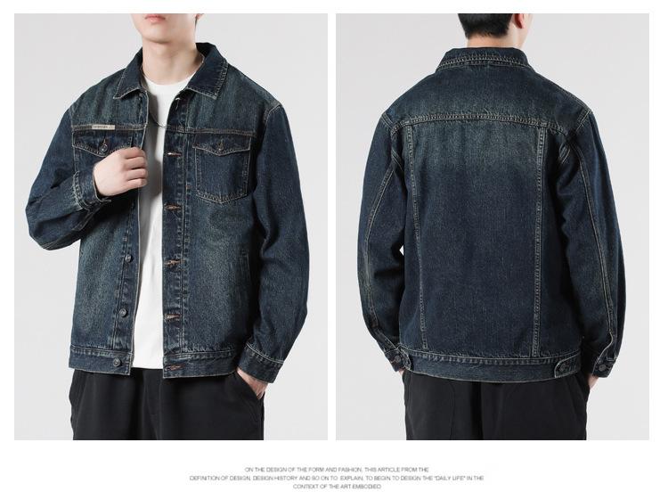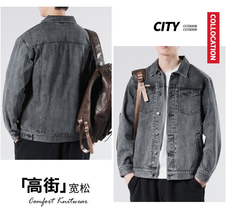 Chaqueta vaquera lavada vintage para hombre, nueva marca de moda de otoño para hombre, chaqueta vaquera de alta gama que combina con todo, chaqueta holgada con solapa.