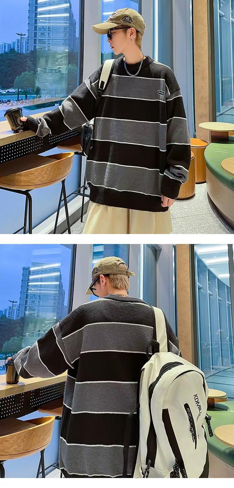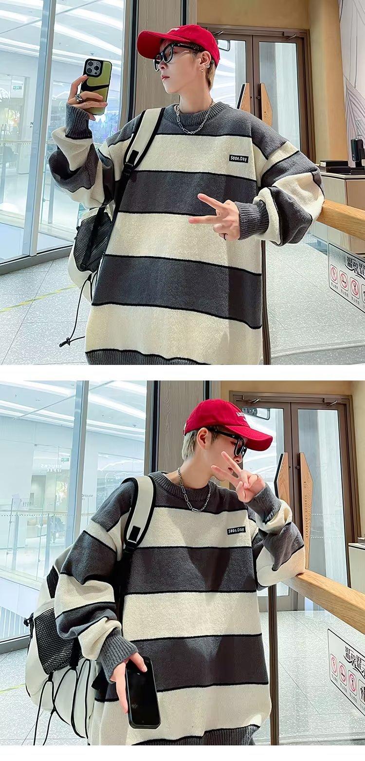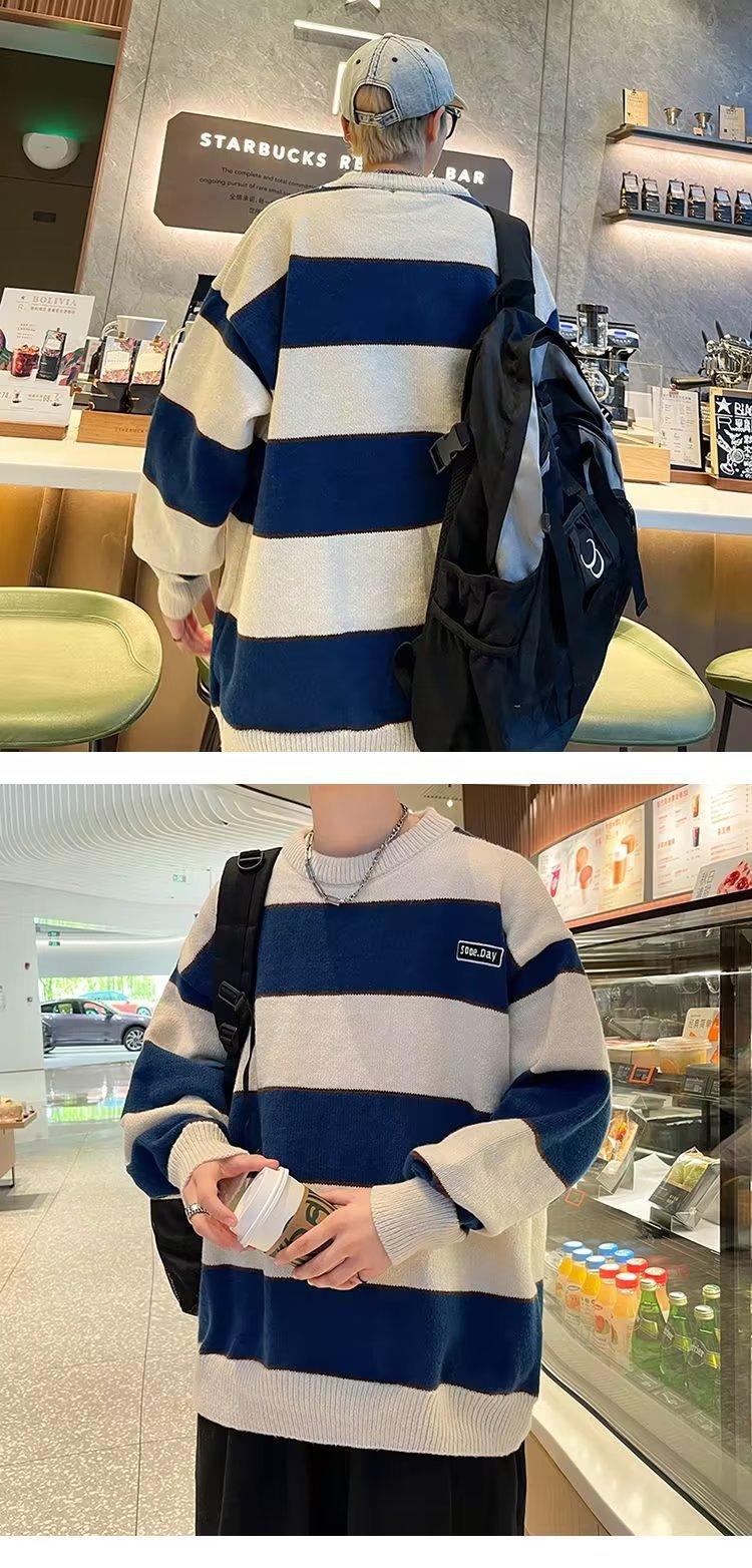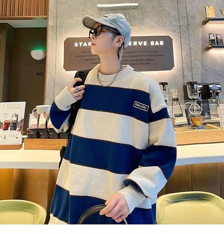 Suéter rayado para hombre cuello redondo otoño e invierno 2023 nueva marca de moda popular casual suéter de pareja