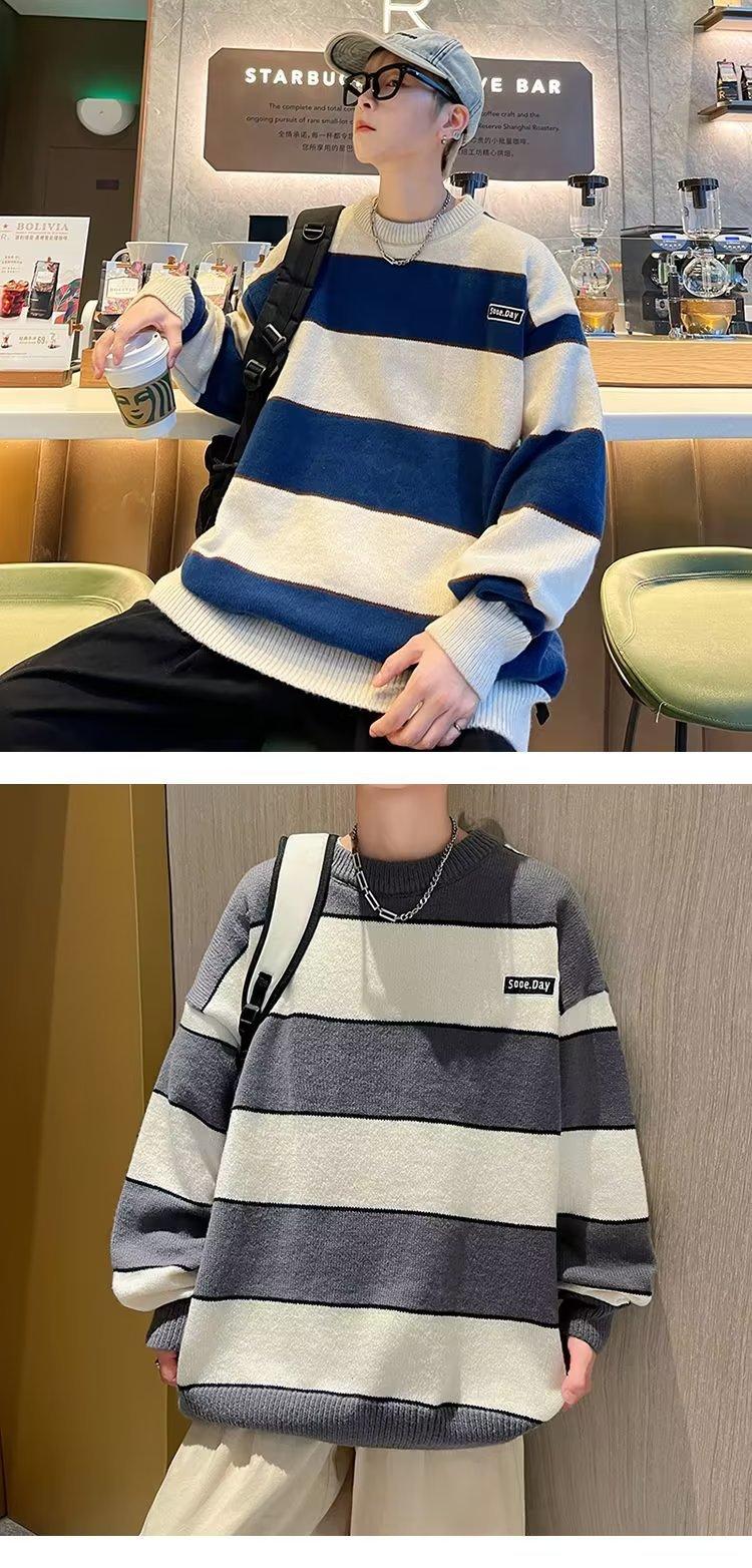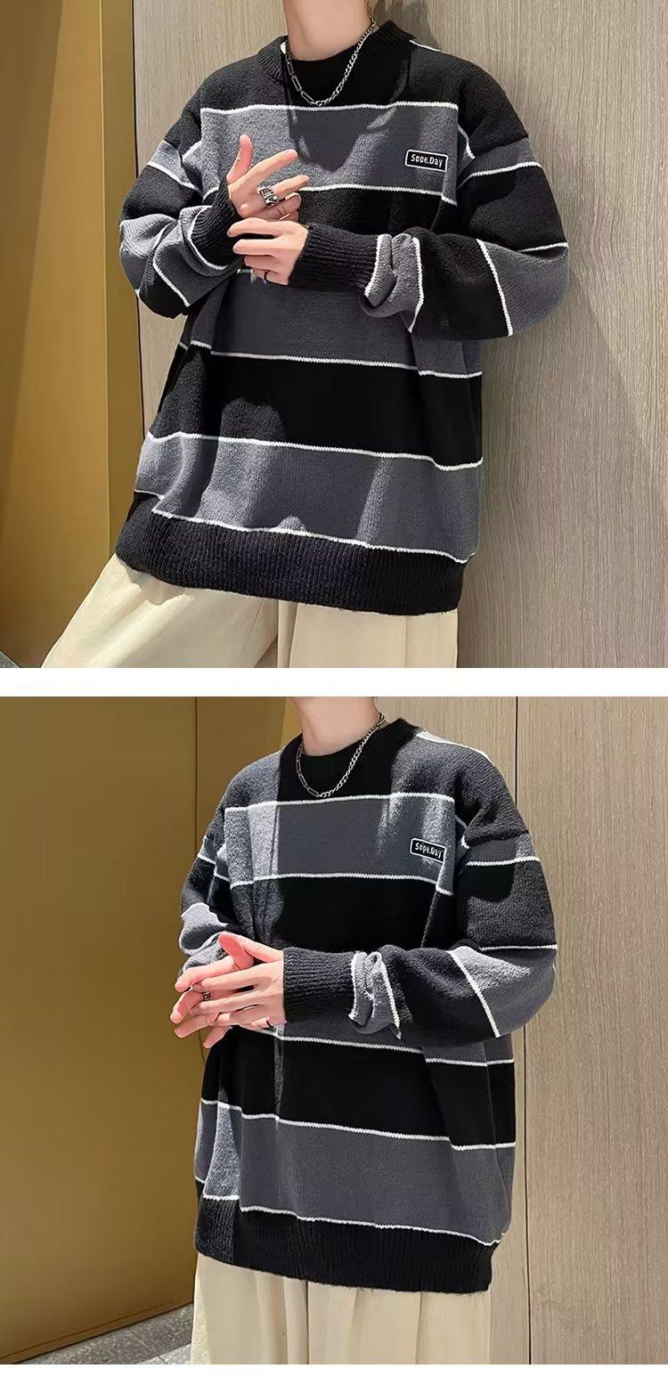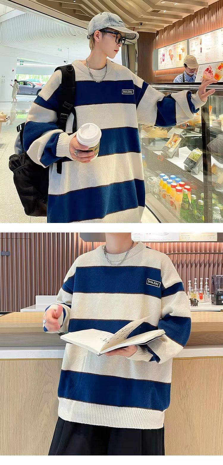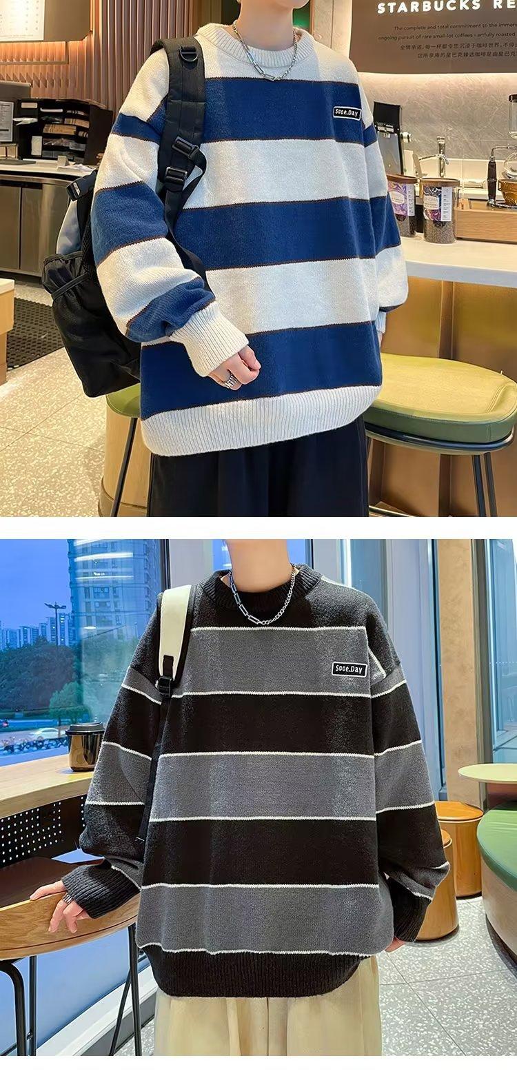 Suéter rayado para hombre cuello redondo otoño e invierno 2023 nueva marca de moda popular casual suéter de pareja