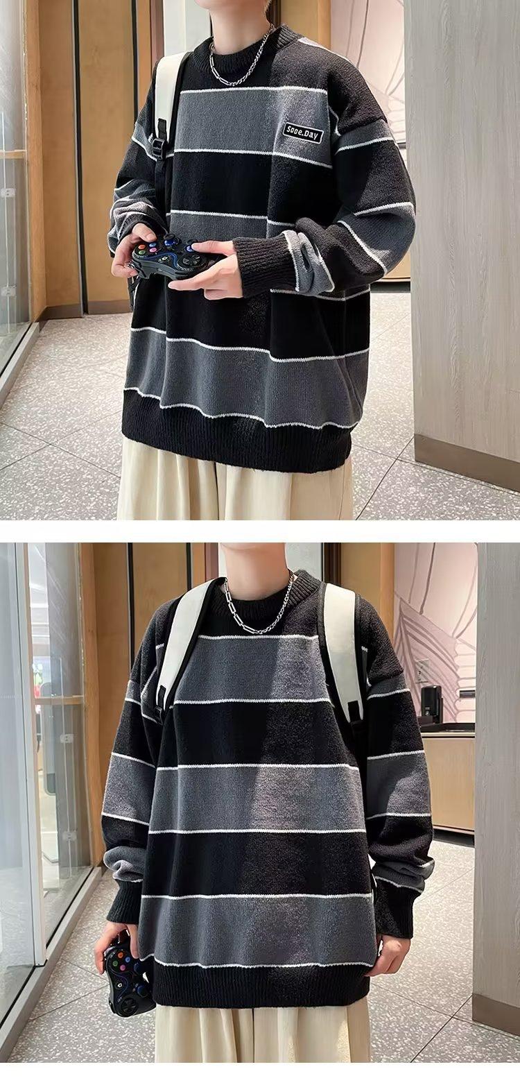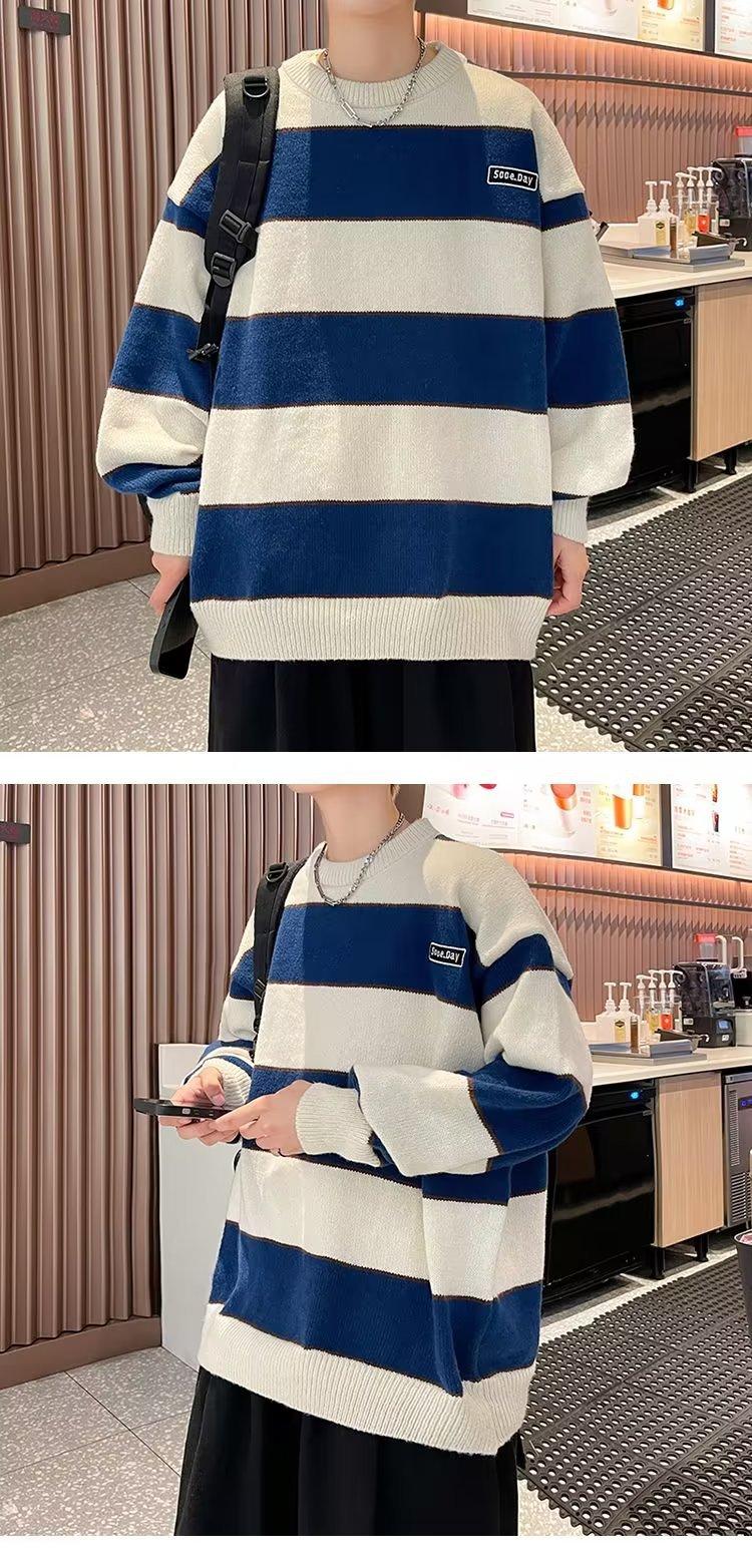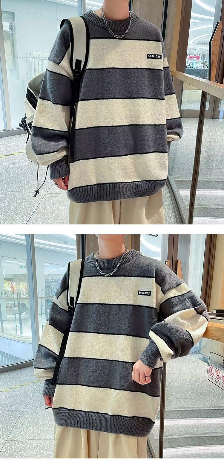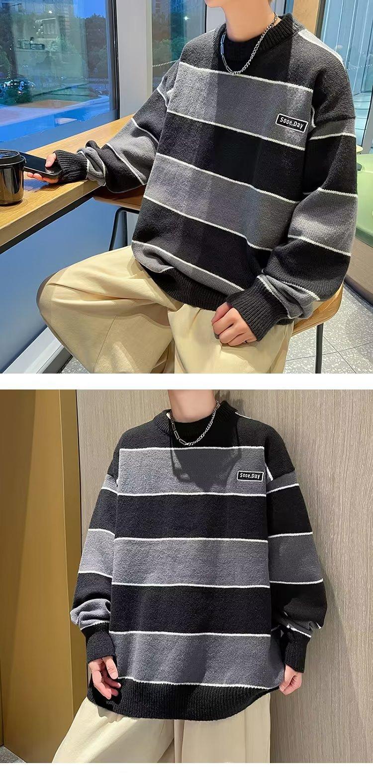 Suéter rayado para hombre cuello redondo otoño e invierno 2023 nueva marca de moda popular casual suéter de pareja