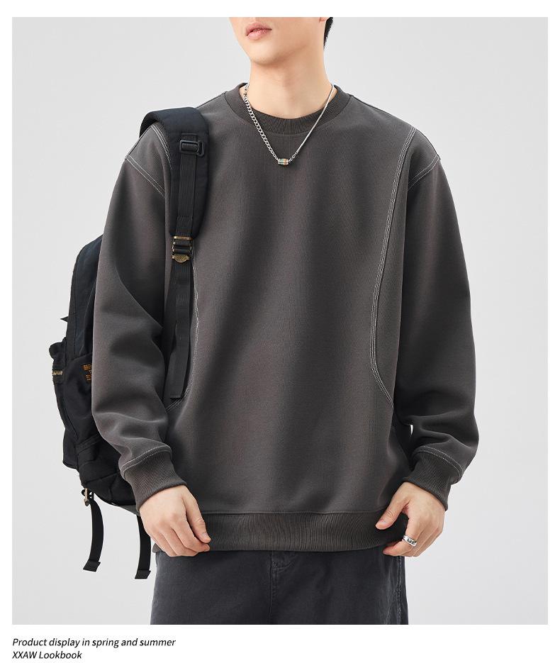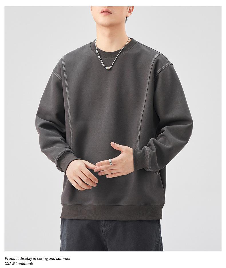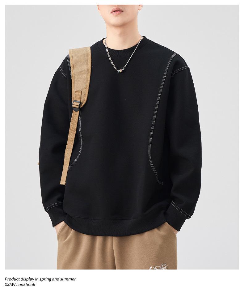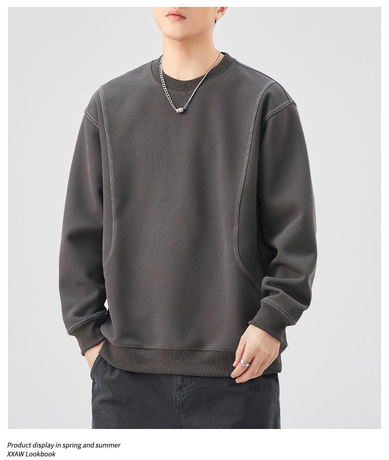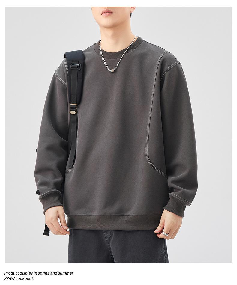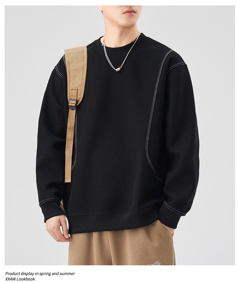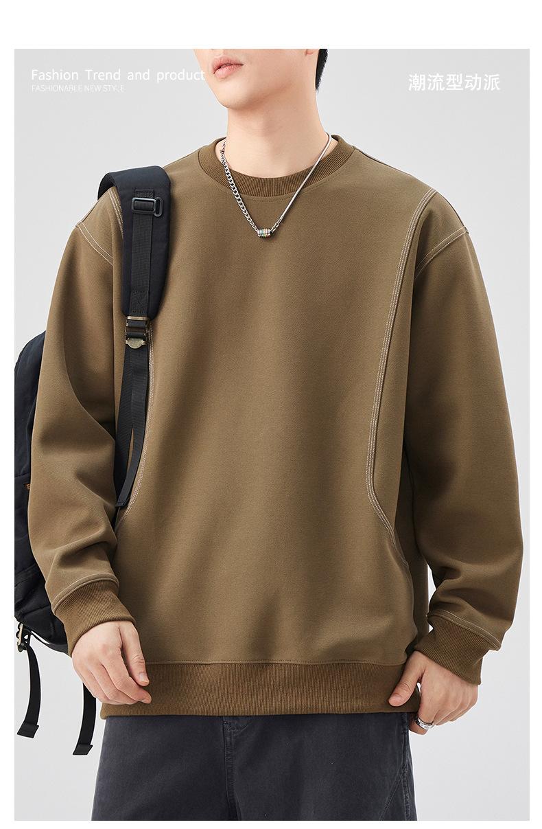 Marca de moda color sólido diseño de línea brillante top callejero combinable jersey de cuello redondo nuevo suéter holgado casual de manga larga hombres