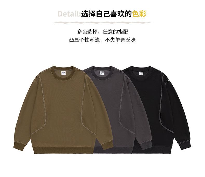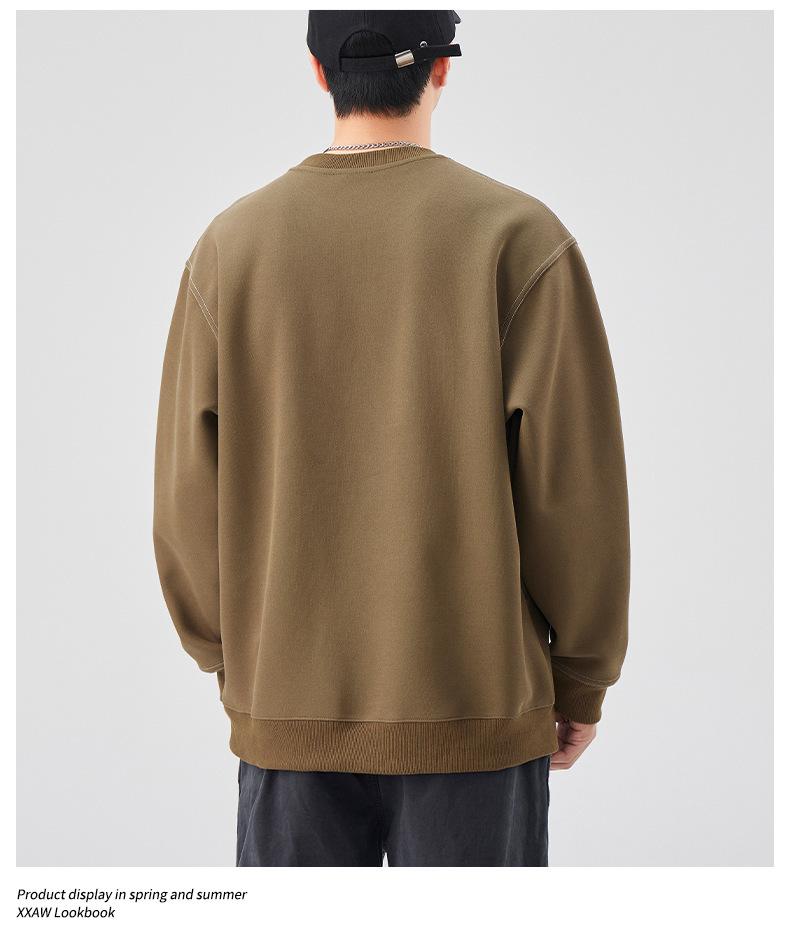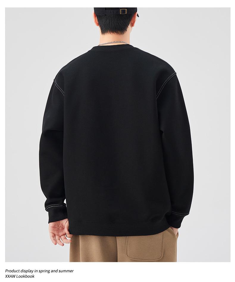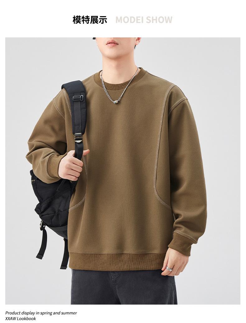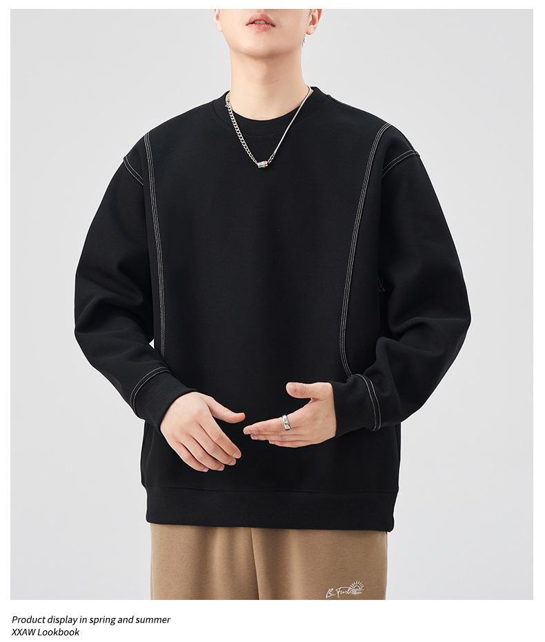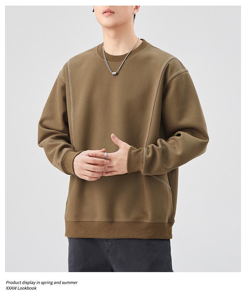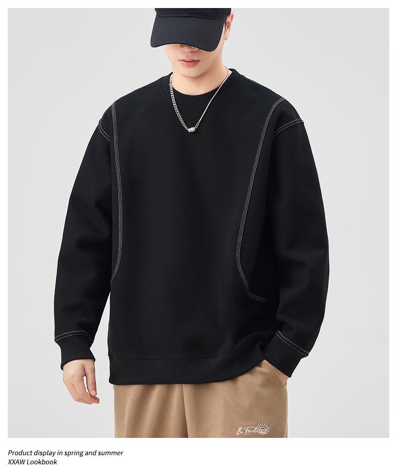 Marca de moda color sólido diseño de línea brillante top callejero combinable jersey de cuello redondo nuevo suéter holgado casual de manga larga hombres