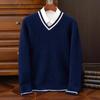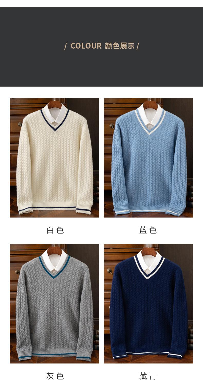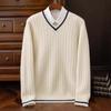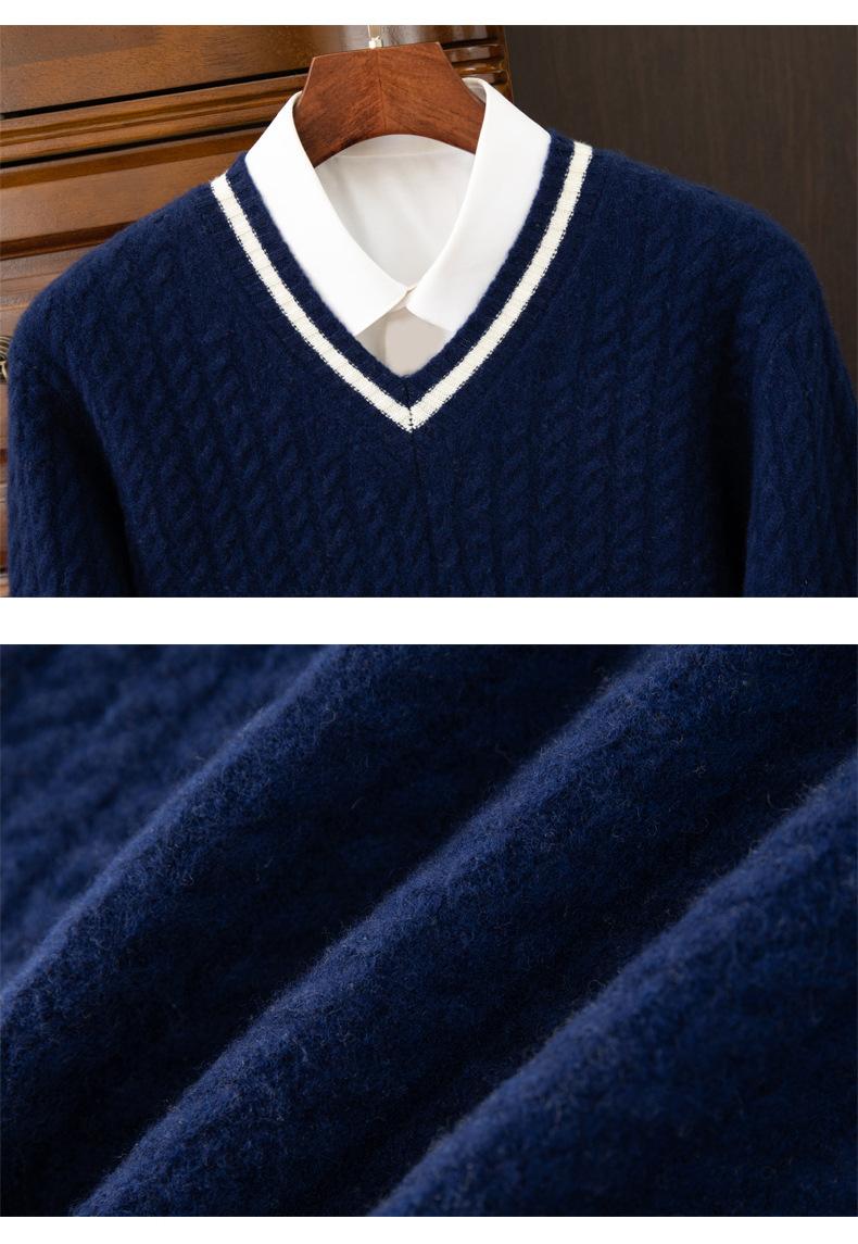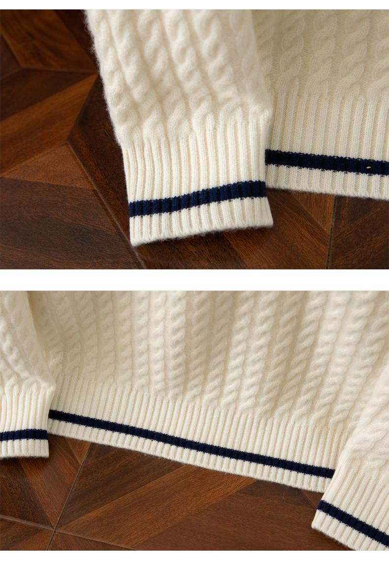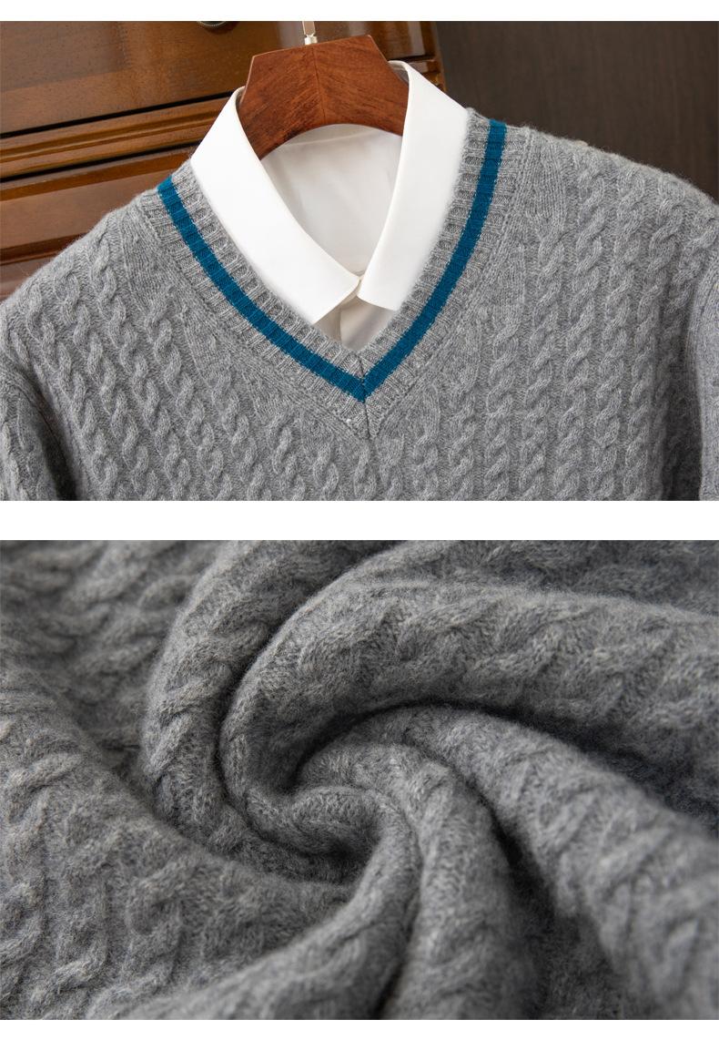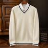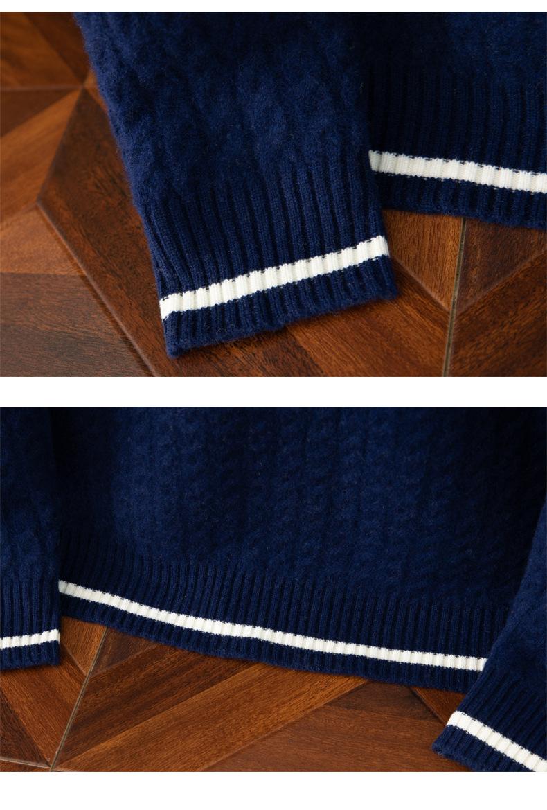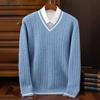 Otoño e Invierno Nuevo Tejido de Lana Pura Cuello en V Color Contraste Suéter Espesado Casual Negocios Flor Torcida Manga Larga Top Base