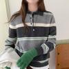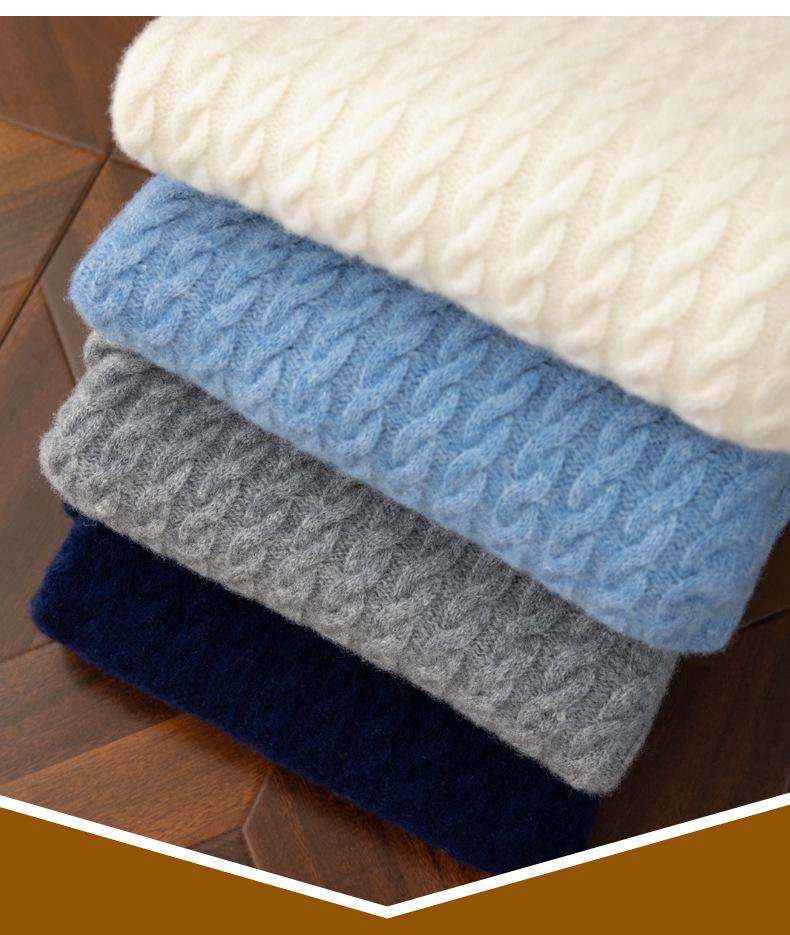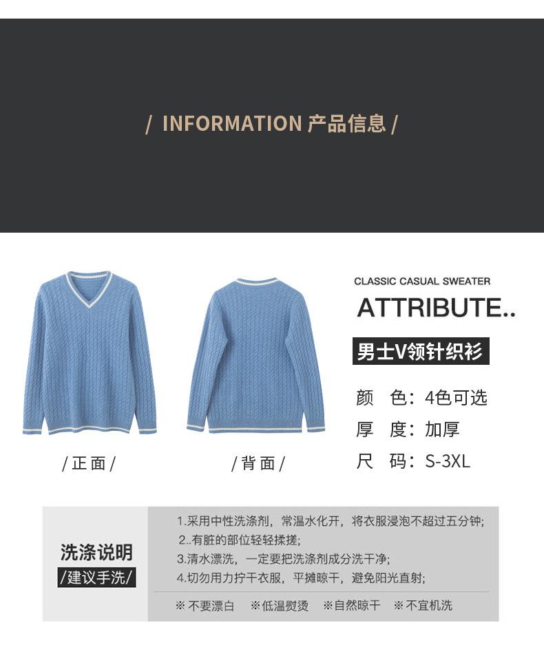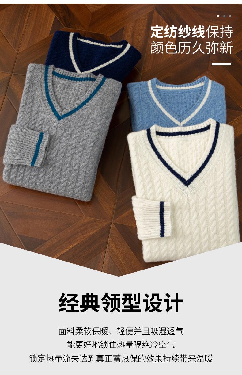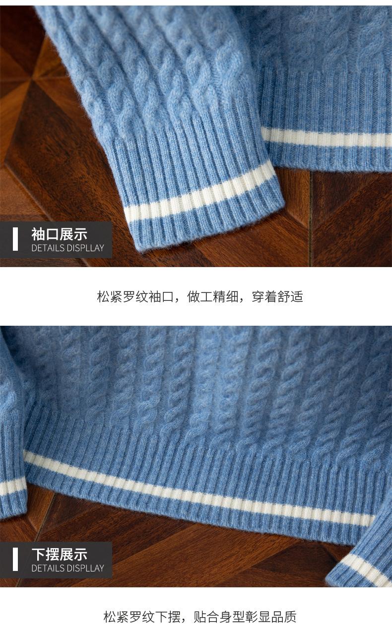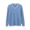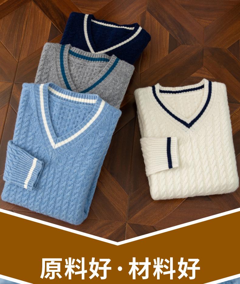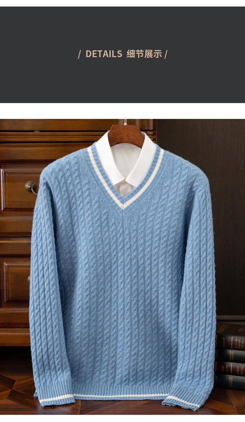 Otoño e Invierno Nuevo Tejido de Lana Pura Cuello en V Color Contraste Suéter Espesado Casual Negocios Flor Torcida Manga Larga Top Base
