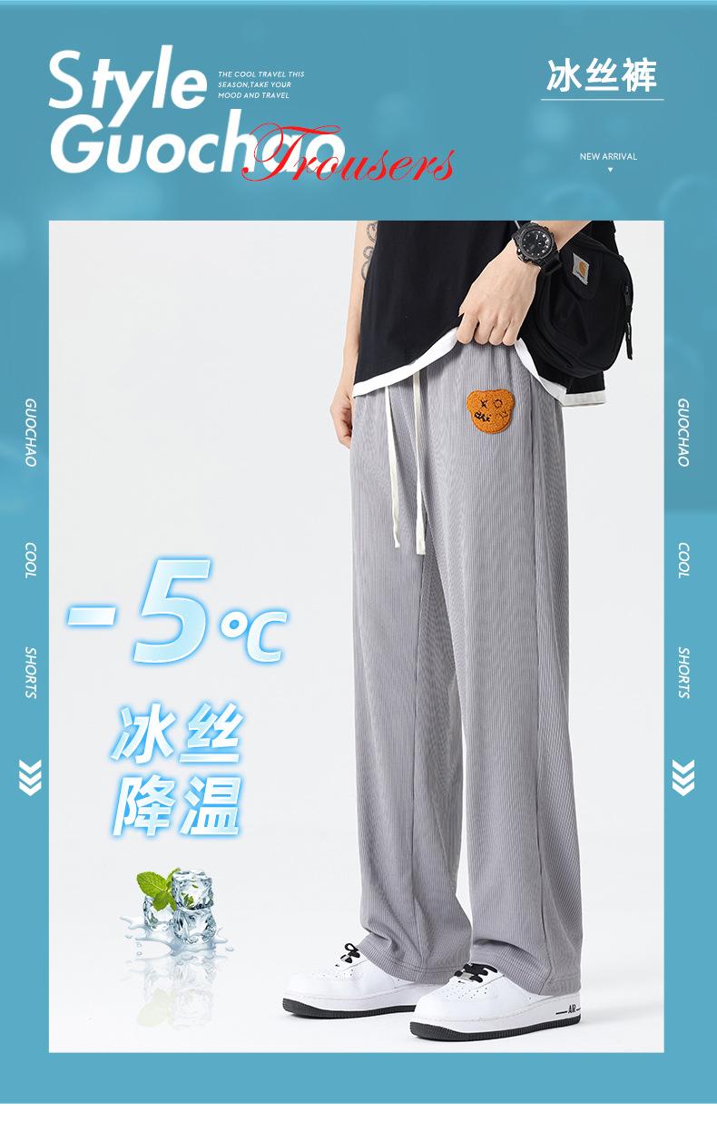 Pantalones casuales delgados de verano cómodos de seda de hielo de secado rápido deportivos plus rectos verticales