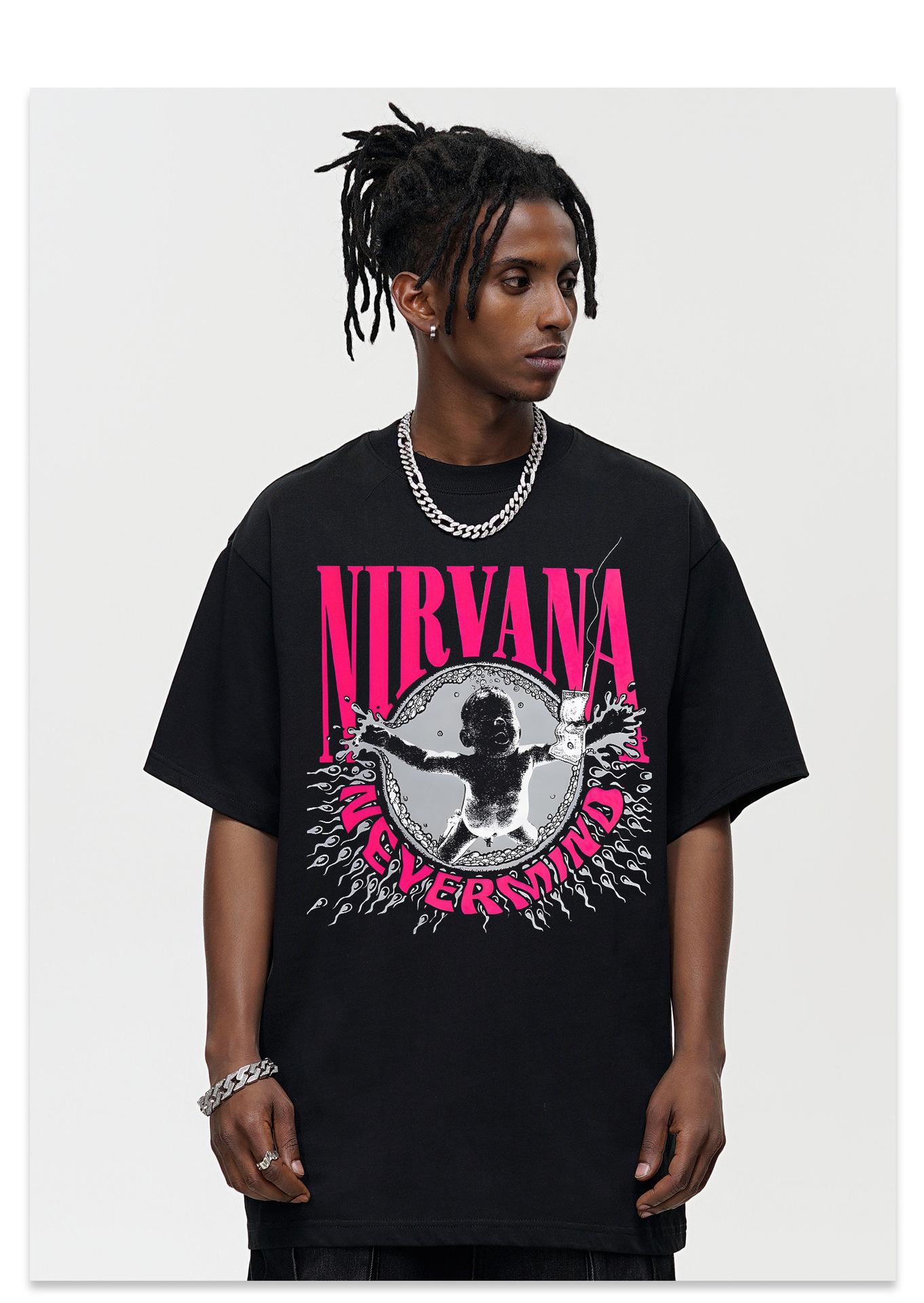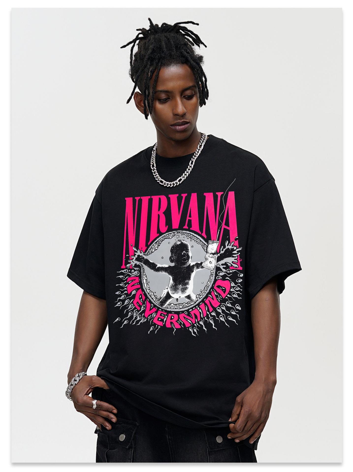 Camiseta Clásica de Banda NIRVANA Retro Americana de Manga Corta para Hombre Verano Nueva de Media Manga Cuello Pequeño