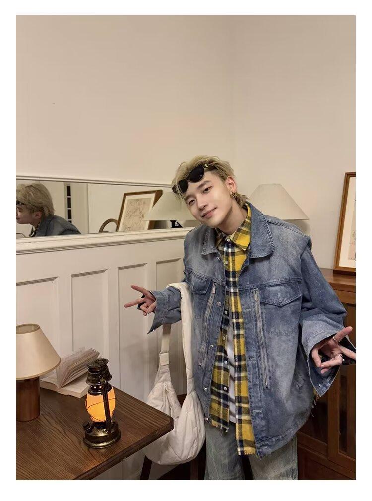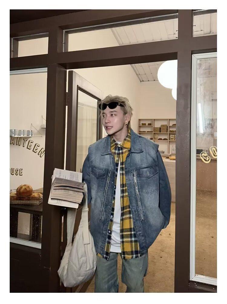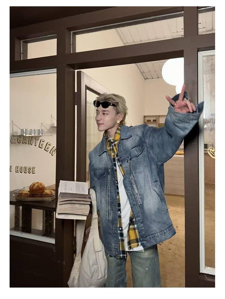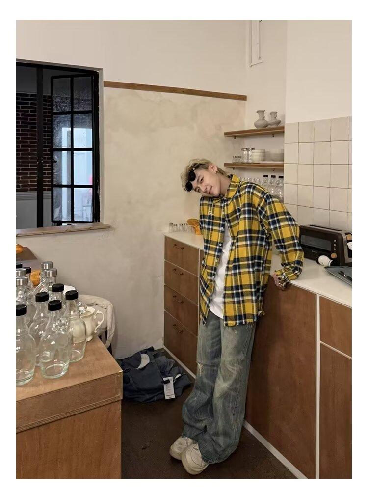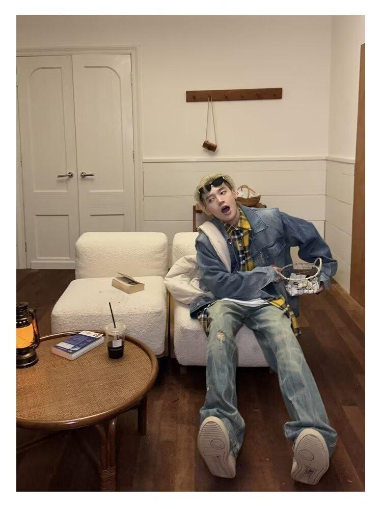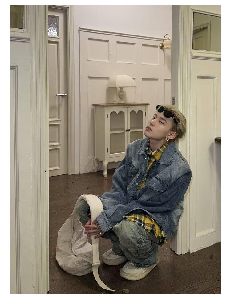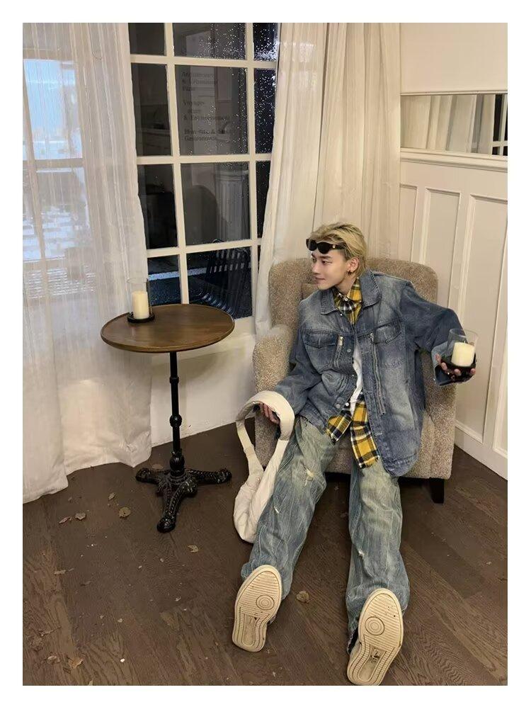 Pantalones vaqueros viejos lavados estilo americano retro holgados de pierna ancha y rectos