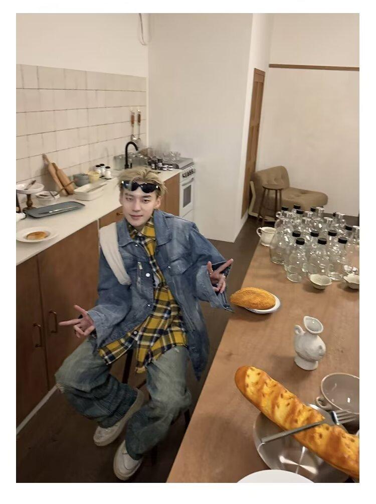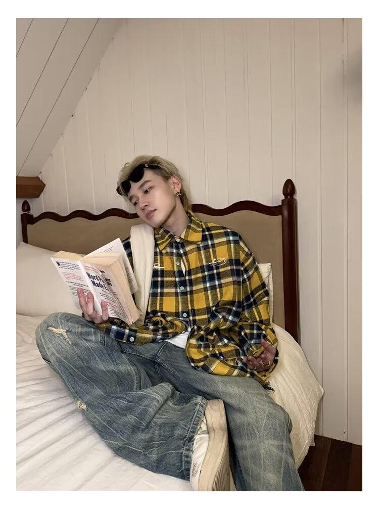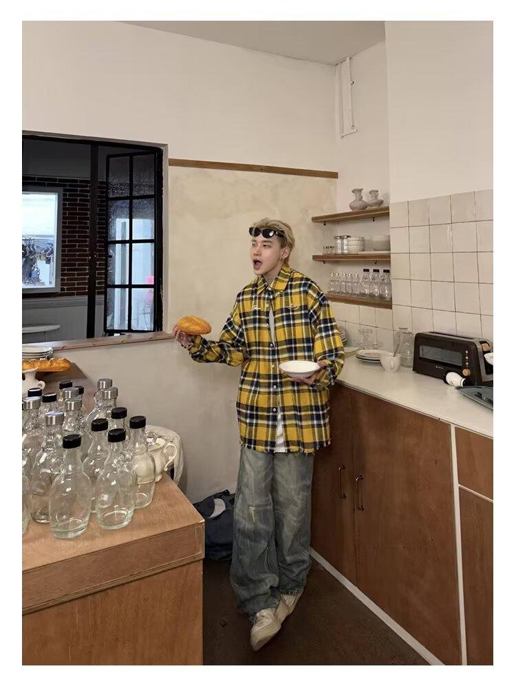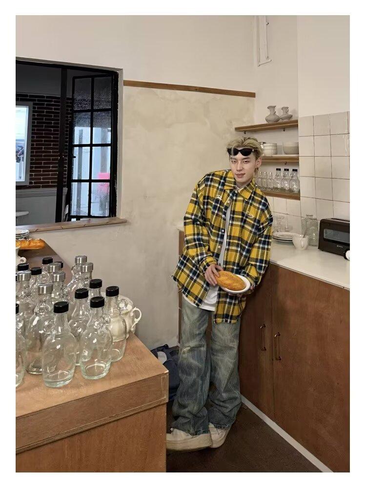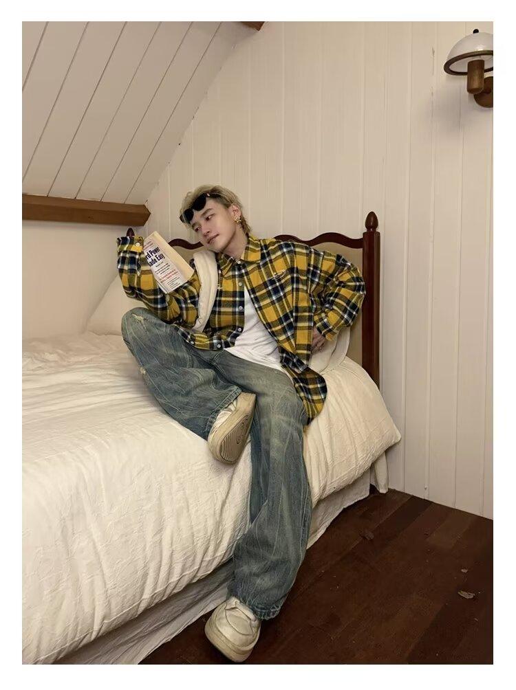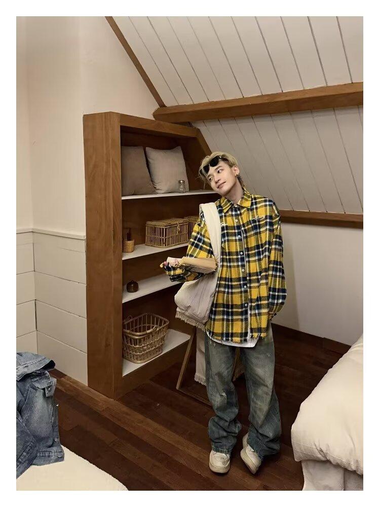 Pantalones vaqueros viejos lavados estilo americano retro holgados de pierna ancha y rectos