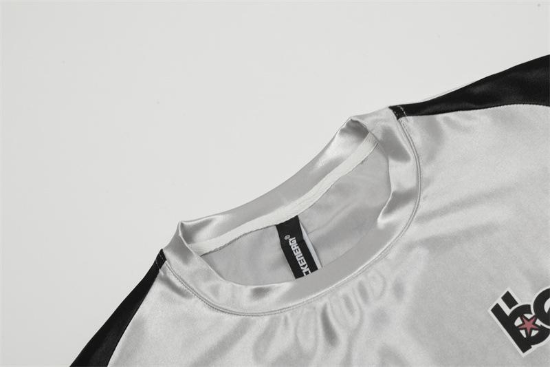Otoño Nuevo Estilo Americano Retro Marca de Moda Contraste de Color Hombro Manga Larga Camiseta Estilo Universitario Deportivo Top de Carga