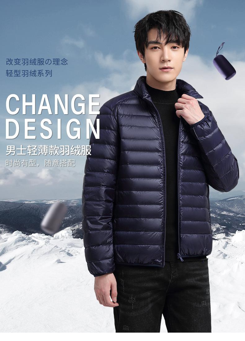 Chaqueta Ligera de Plumas para Hombre Corta Cuello Vertical 2024 Chaleco de Invierno 50 Plumón de Pato Blanco Talla Grande Cálida Chaqueta con Capucha Transfronteriza