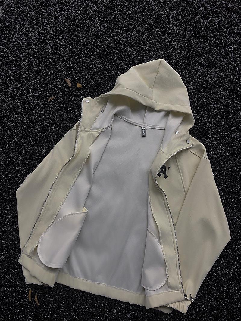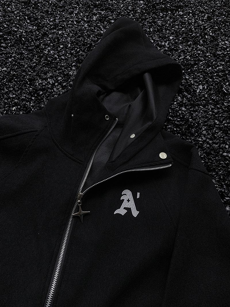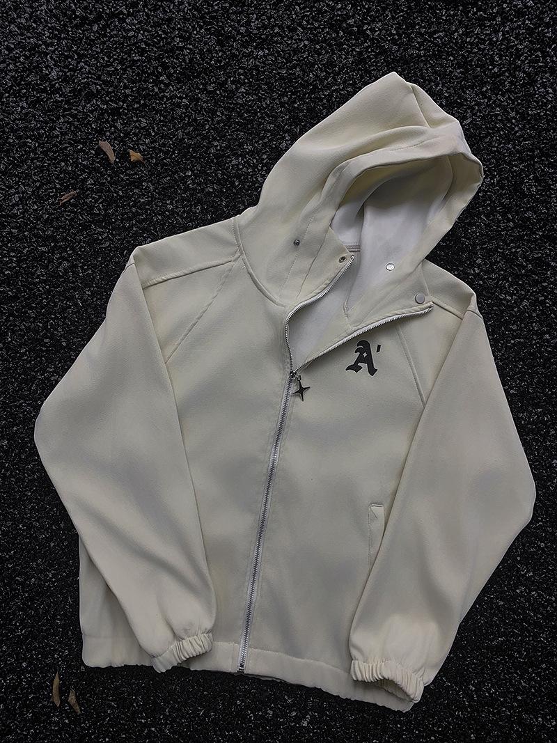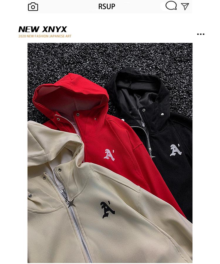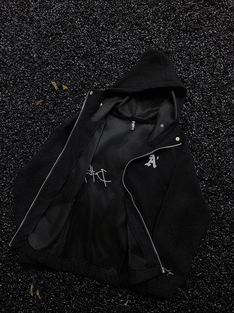 Suéter con capucha bordado informal estilo americano para hombres y mujeres, primavera y otoño, nuevo cárdigan con cremallera, chaqueta holgada que combina con todo para pareja.