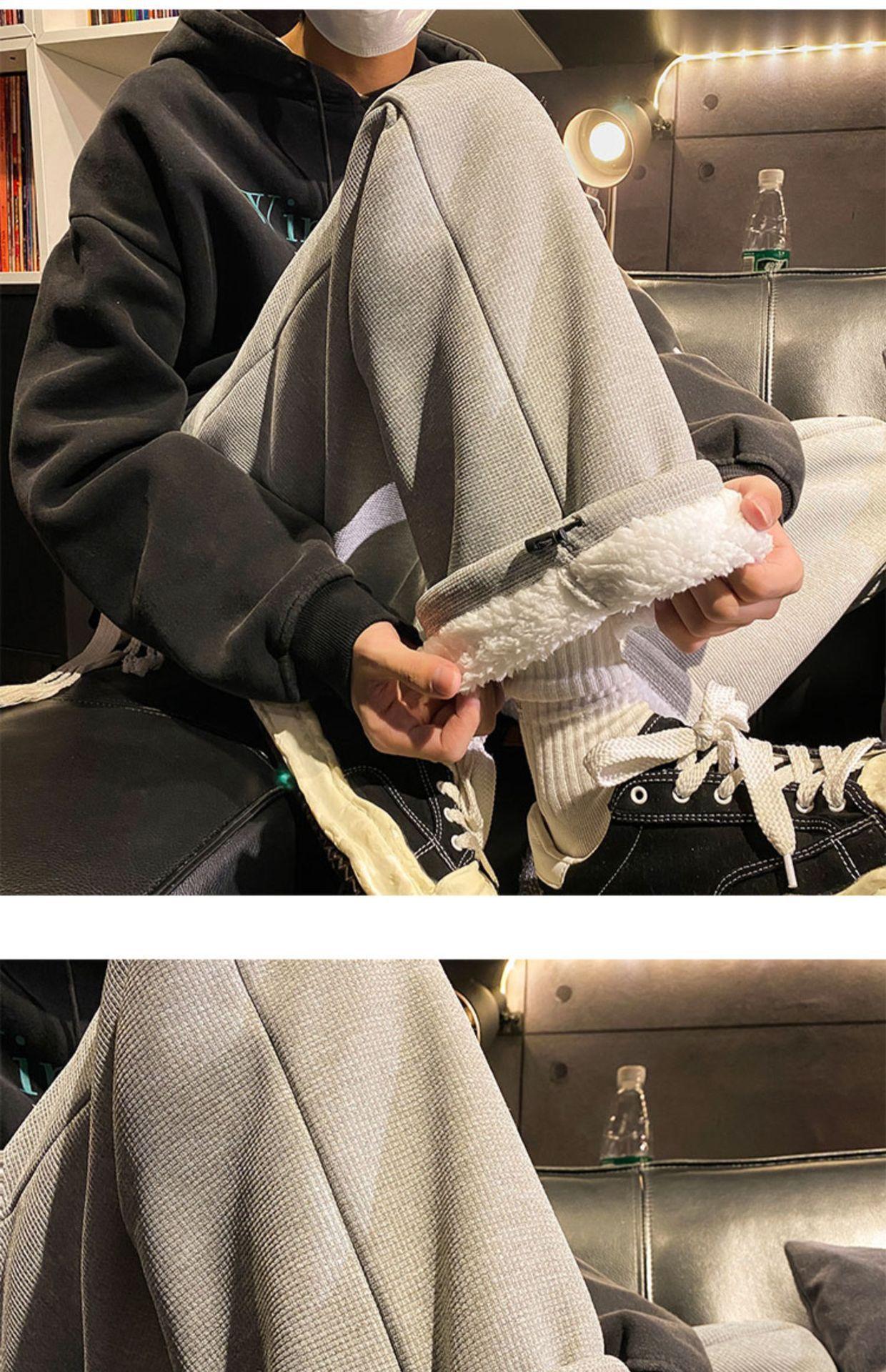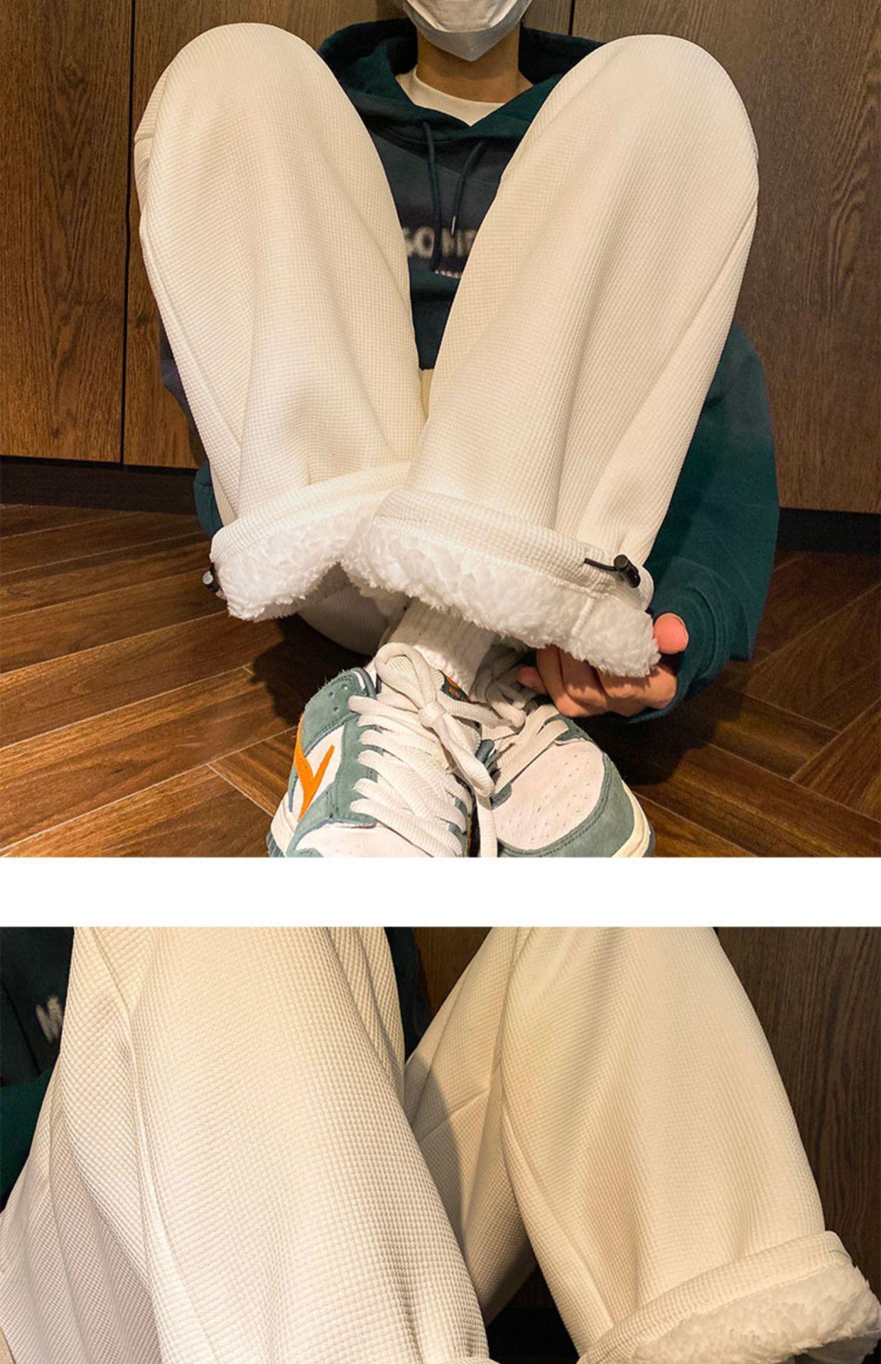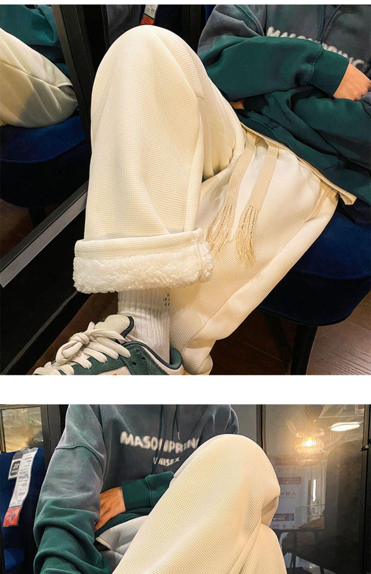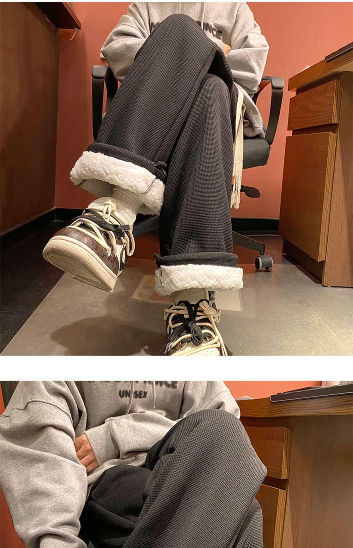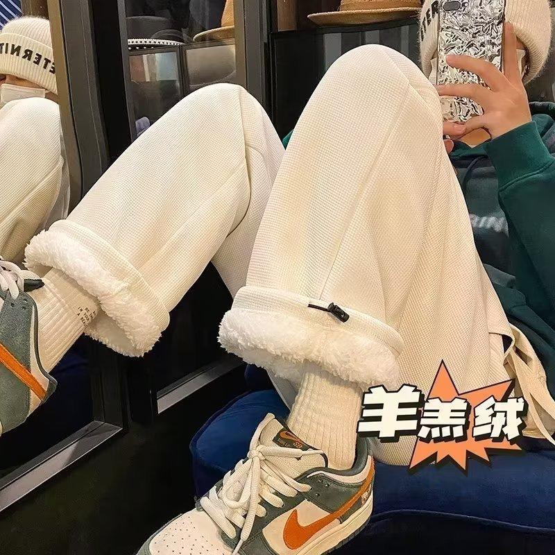 Pantalones Deportivos Casuales de Cachemira Cálidos para Estudiantes con Forro Polar de Moda Americana Otoño/Invierno, Rectos Holgados de Algodón con Forro Polar
