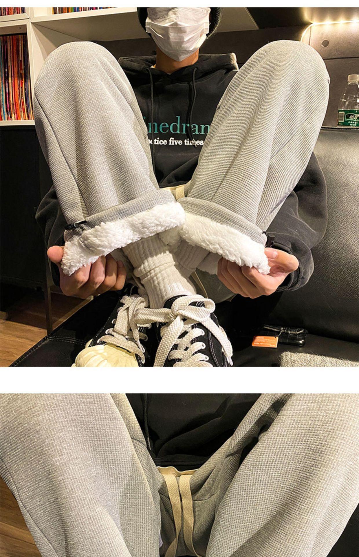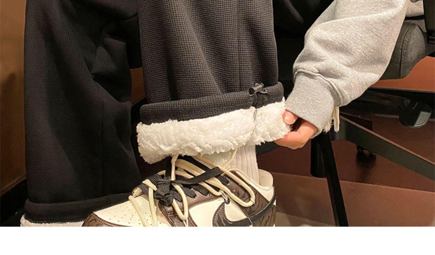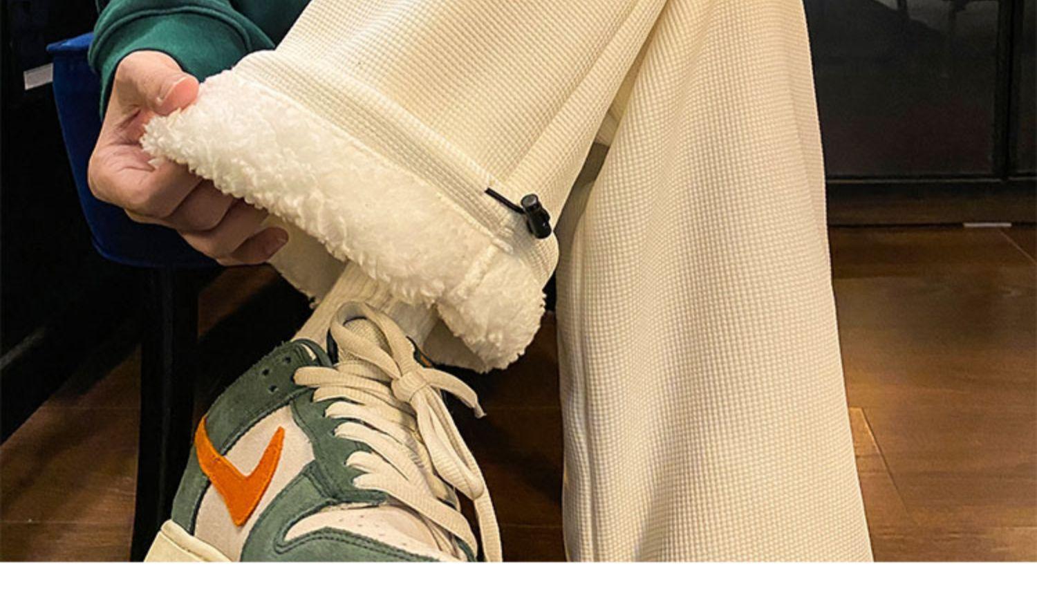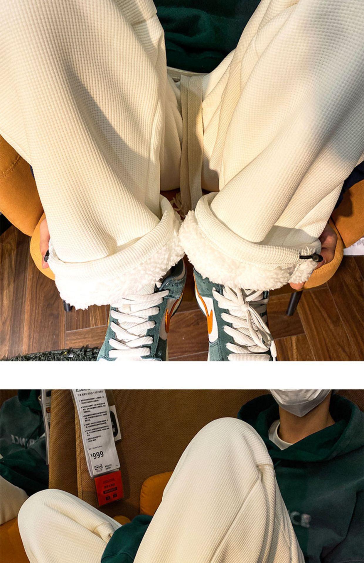 Pantalones Deportivos Casuales de Cachemira Cálidos para Estudiantes con Forro Polar de Moda Americana Otoño/Invierno, Rectos Holgados de Algodón con Forro Polar