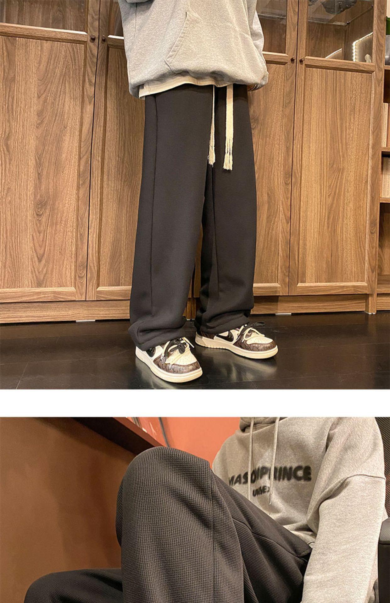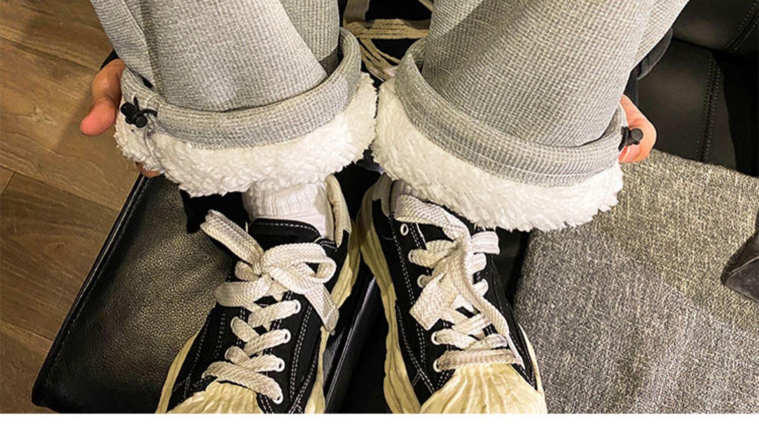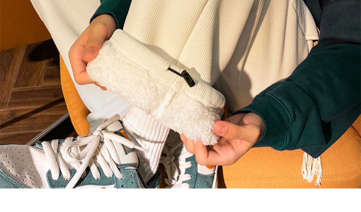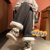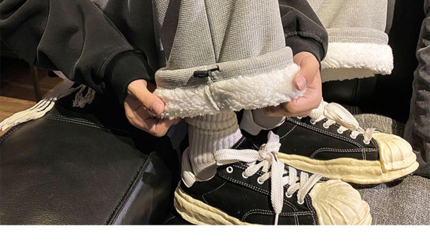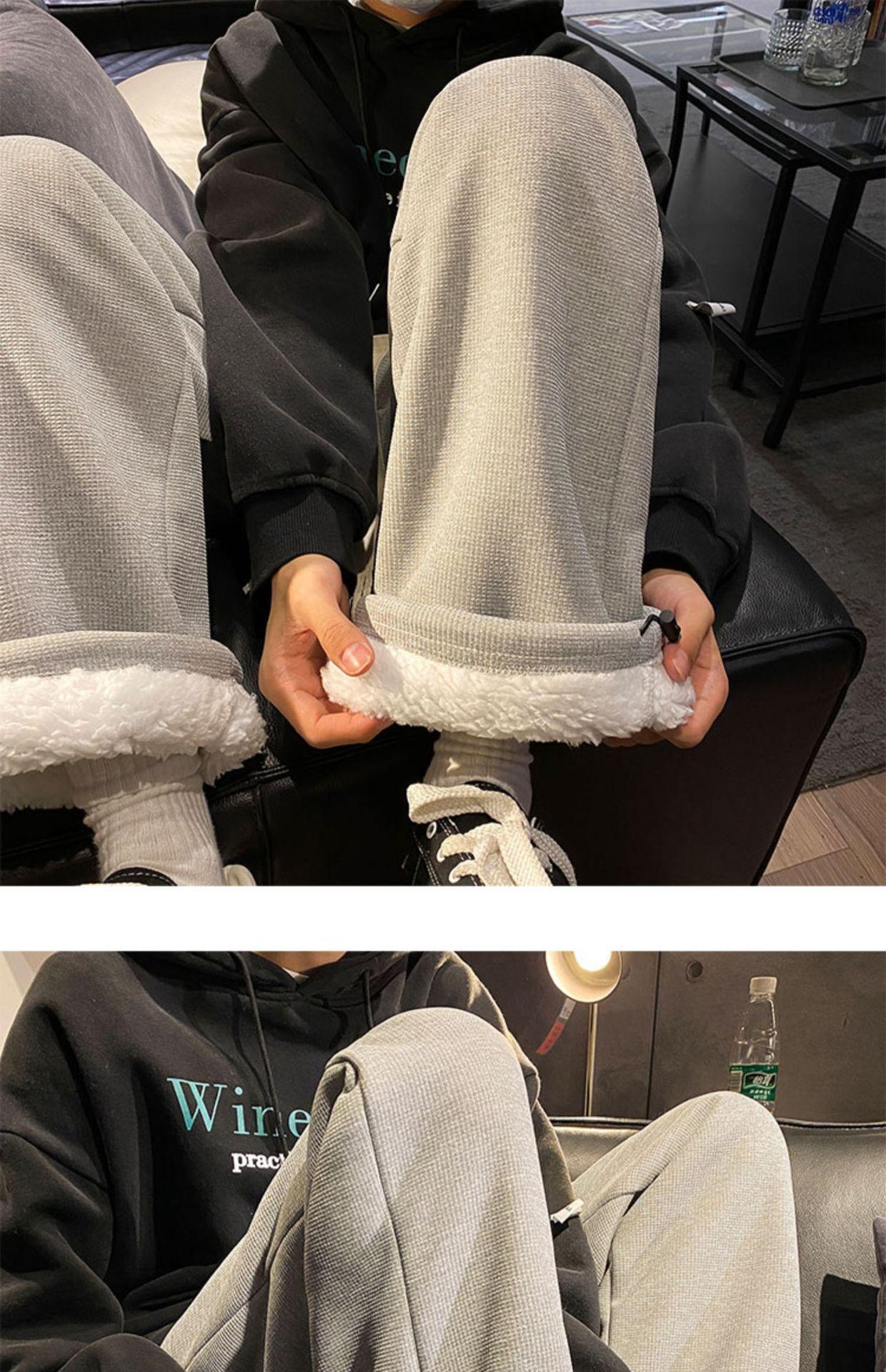 Pantalones Deportivos Casuales de Cachemira Cálidos para Estudiantes con Forro Polar de Moda Americana Otoño/Invierno, Rectos Holgados de Algodón con Forro Polar