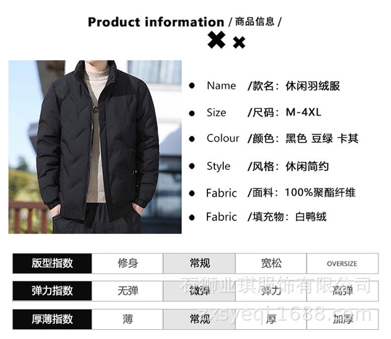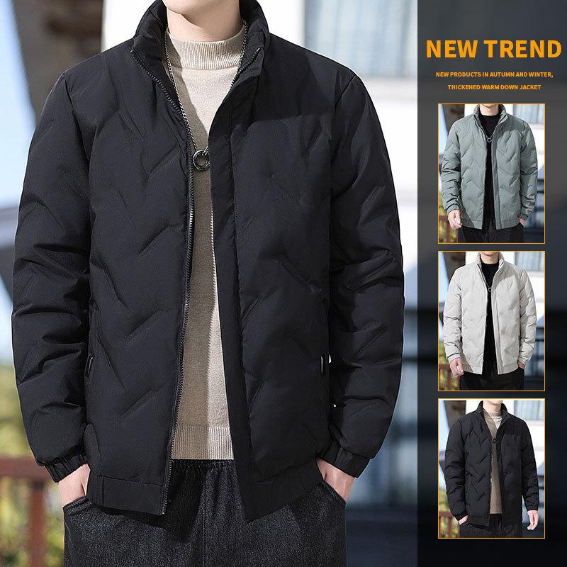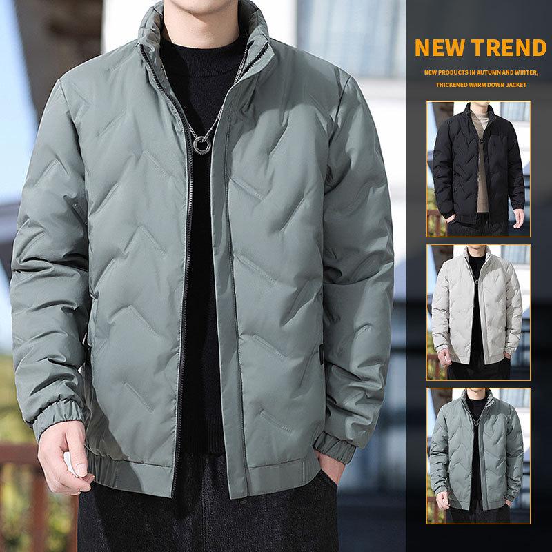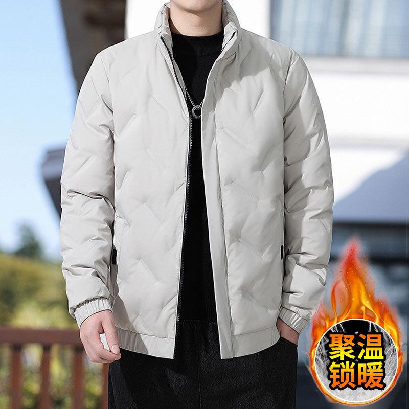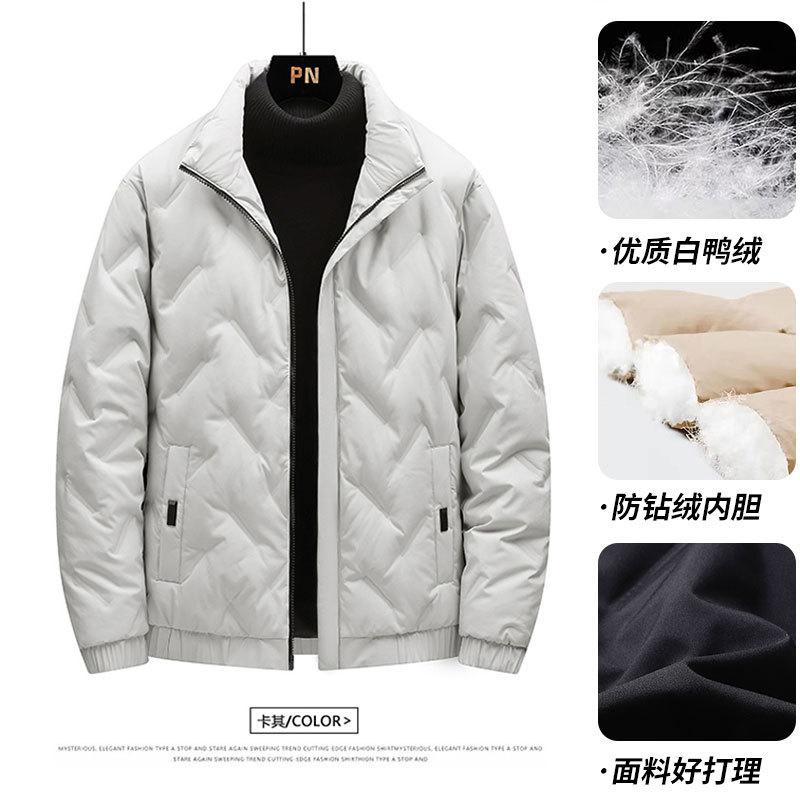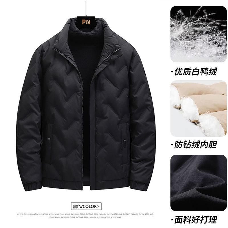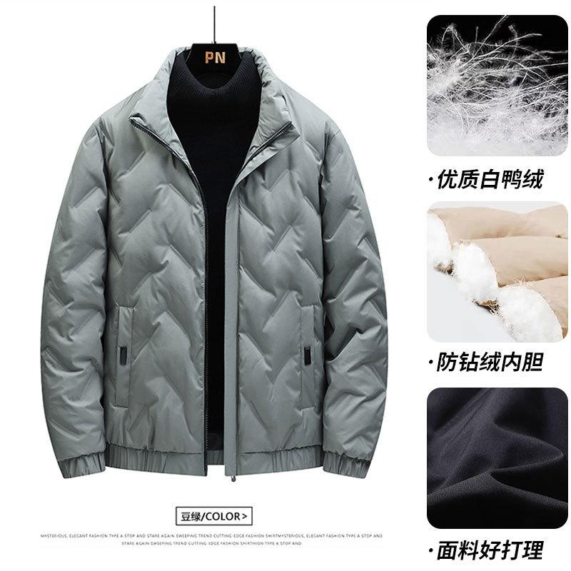 Chaqueta de plumas para hombre, ligera, para otoño e invierno, gruesa, cálida, corta, informal, con cuello 668