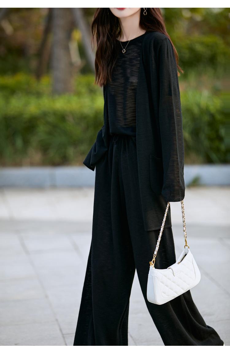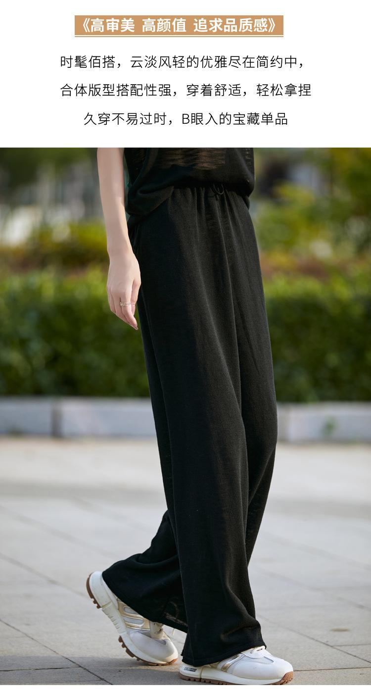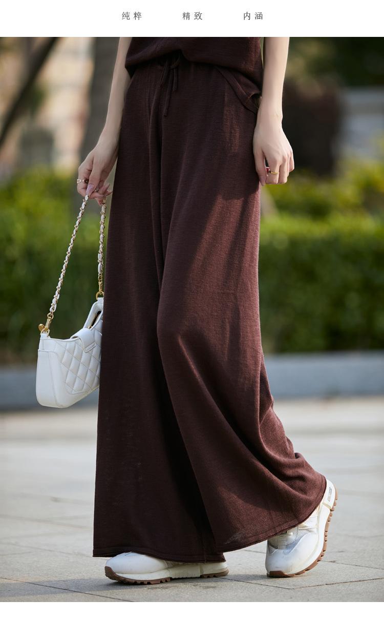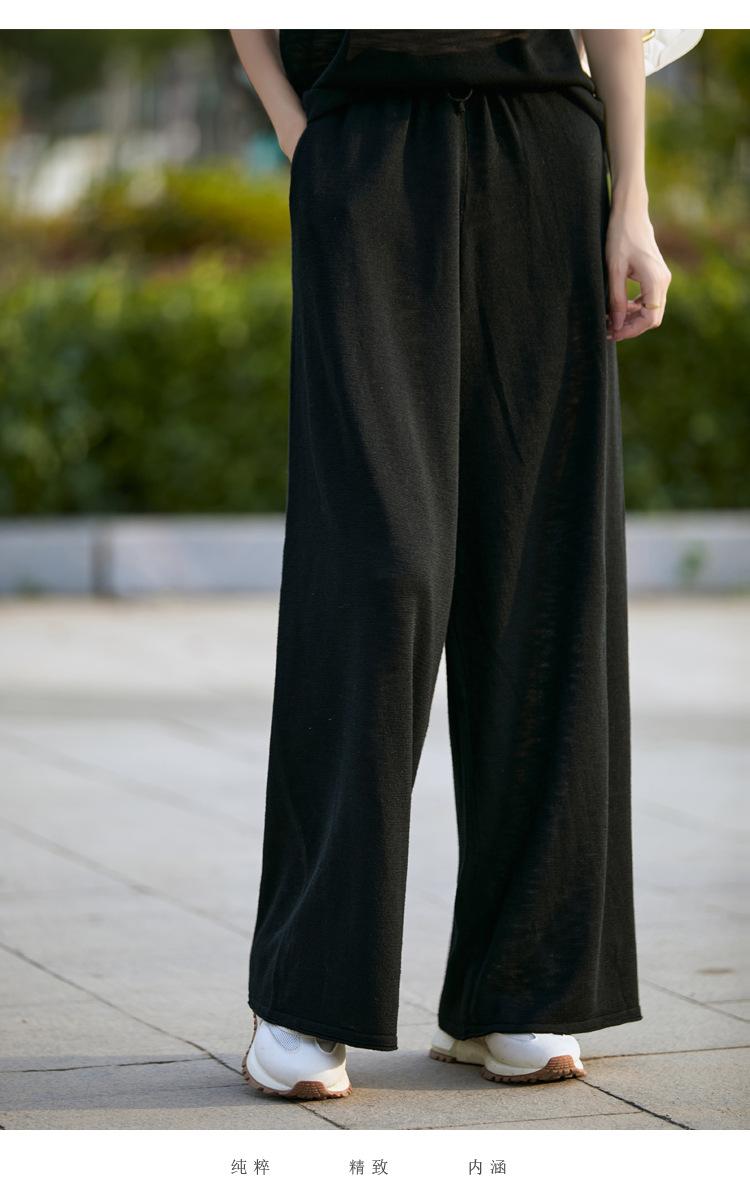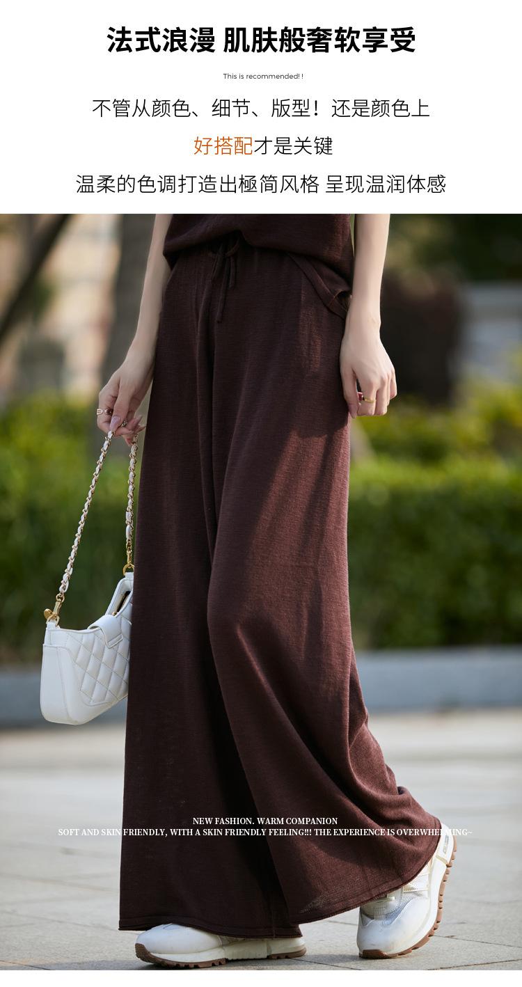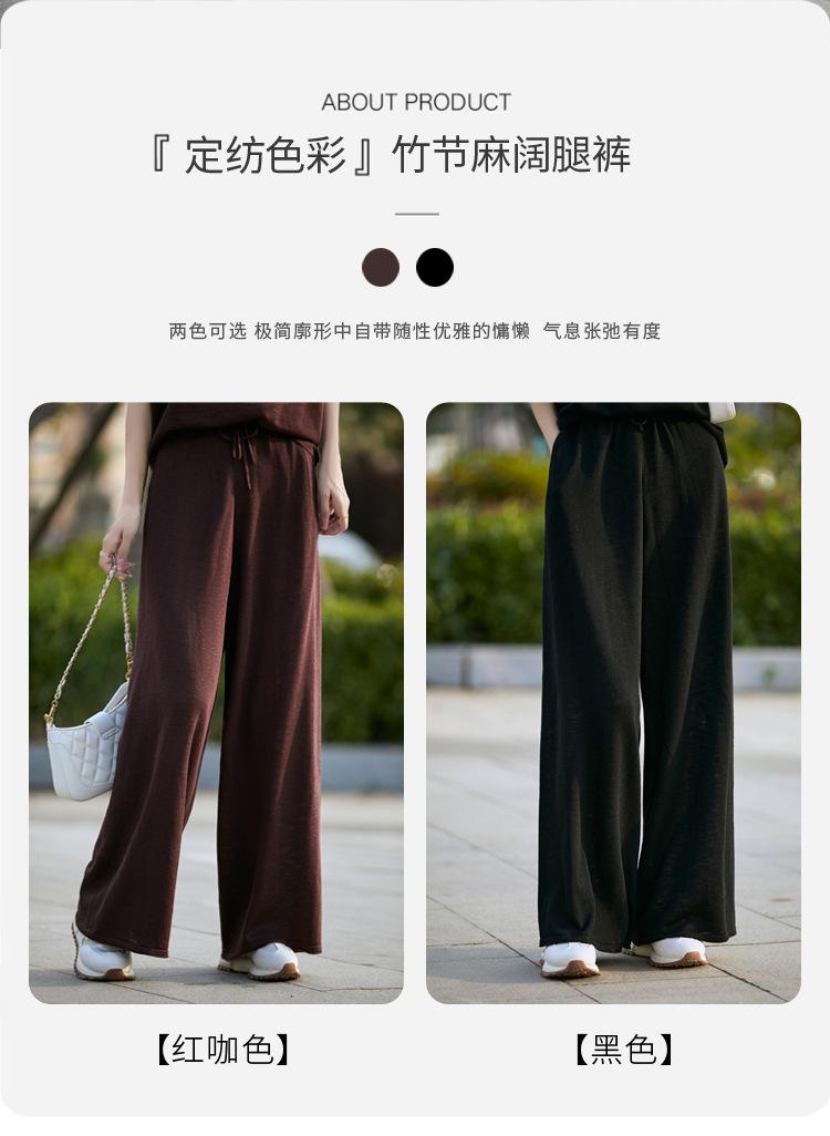 Pantalones de punto de pierna ancha para mujer 2024 Verano Nuevo Estilo Estilo Nacional Lino Slub Pantalones Arrastrados Sueltos Adelgazantes Rectos