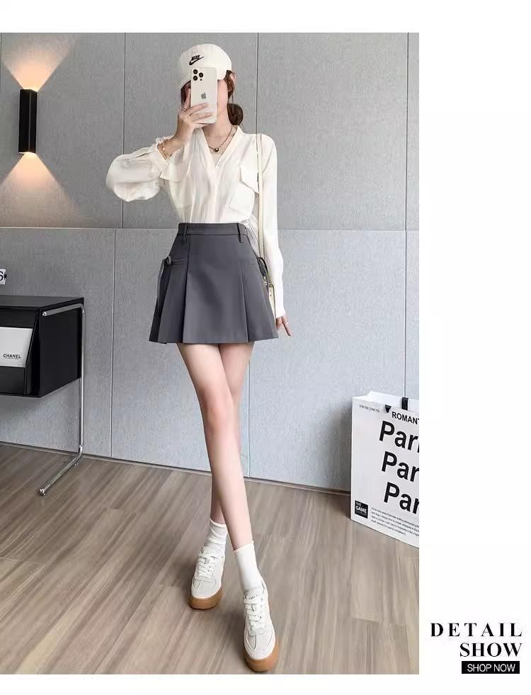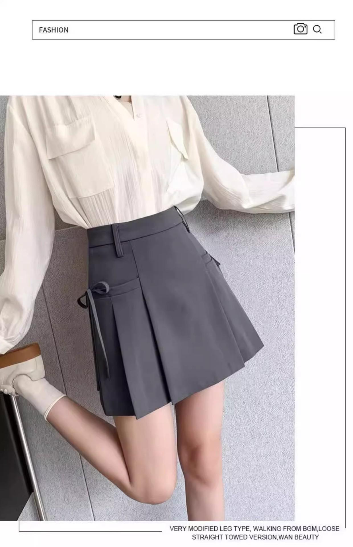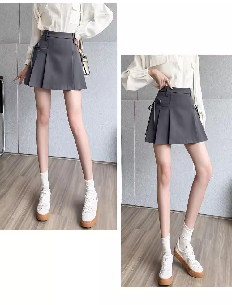 Falda irregular de verano gris recién llegada para mujer, falda plisada de cintura alta adelgazante, falda de línea A antideslumbrante para chica gordita