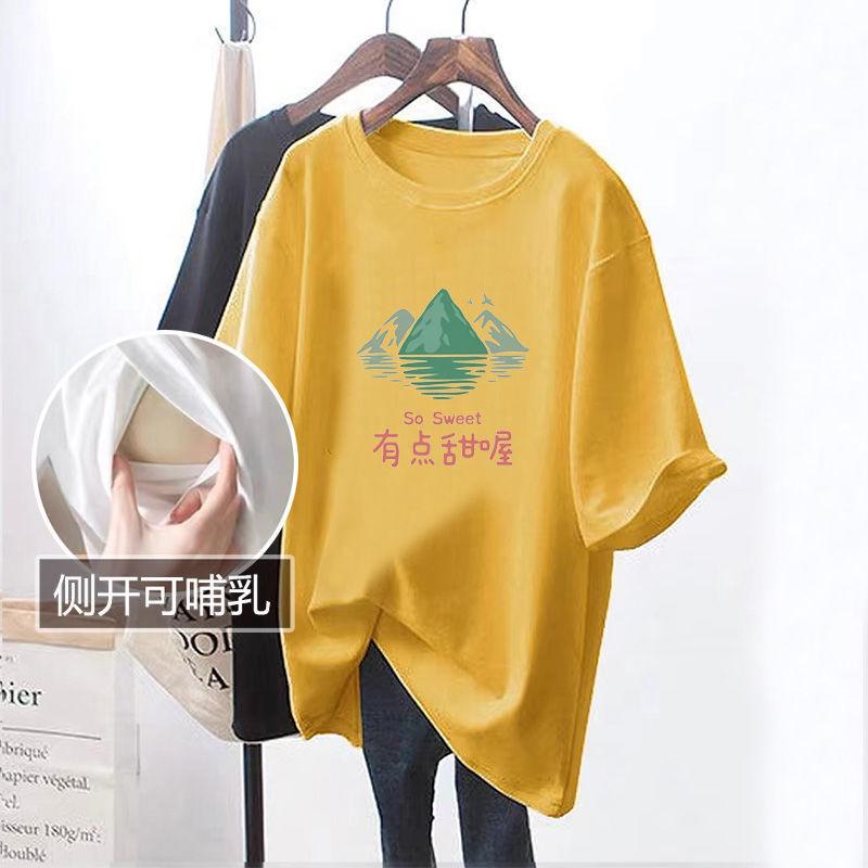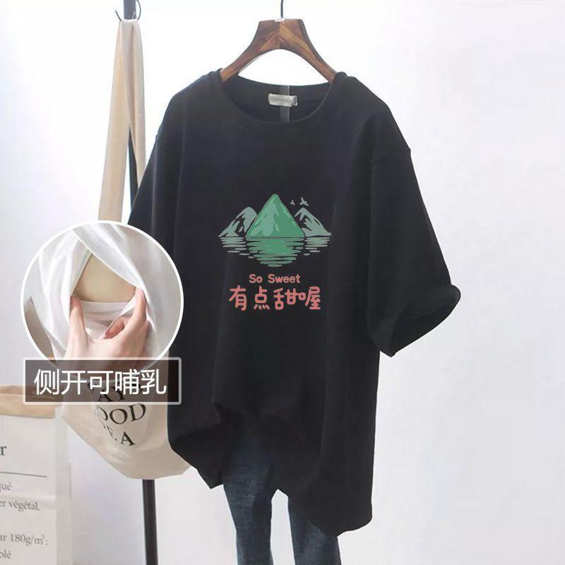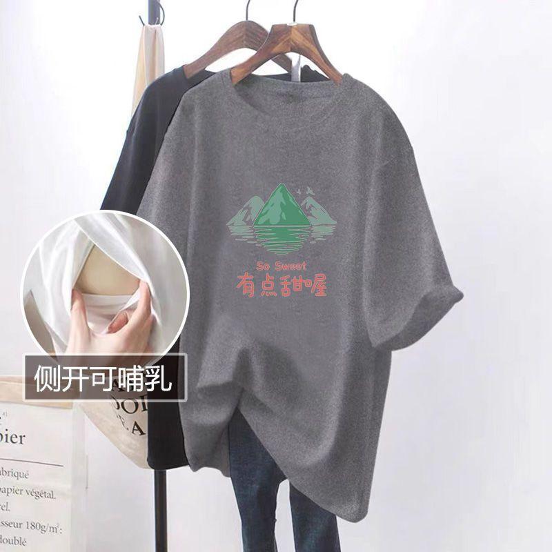 Ropa de lactancia materna de verano, ropa posparto, top para mamá sexy, camiseta de manga corta con abertura lateral, ropa de lactancia materna
