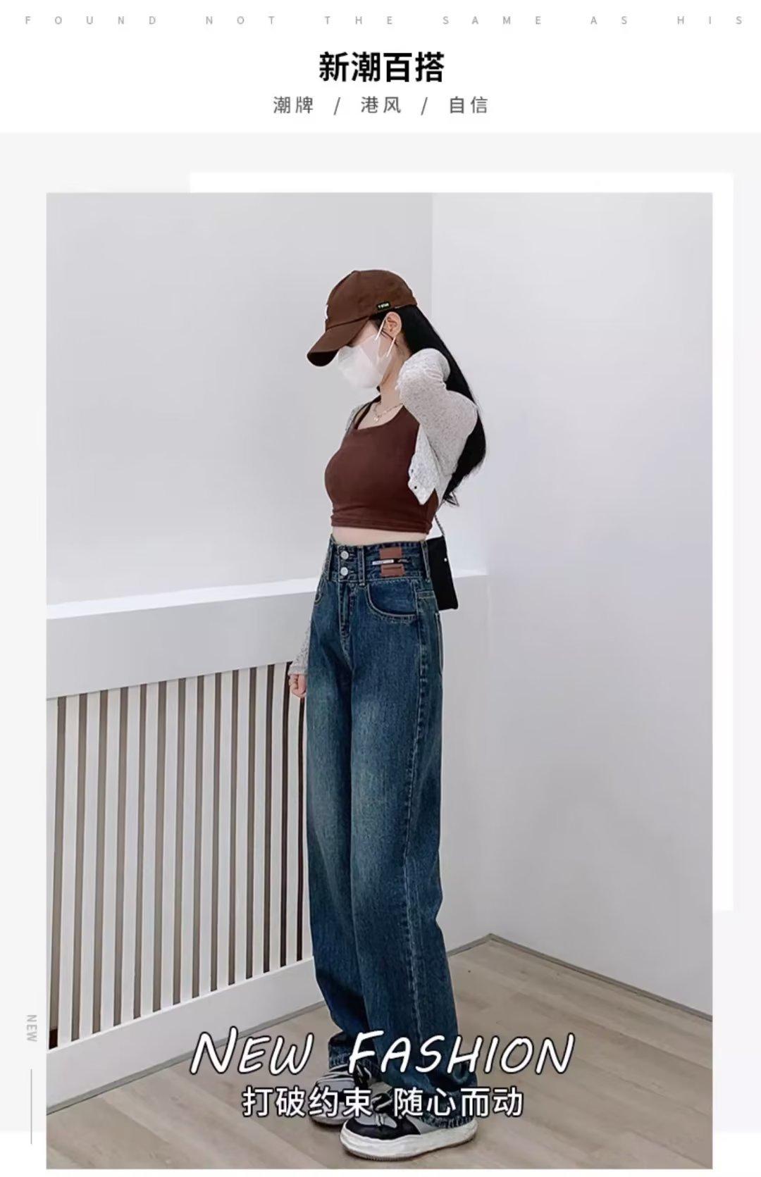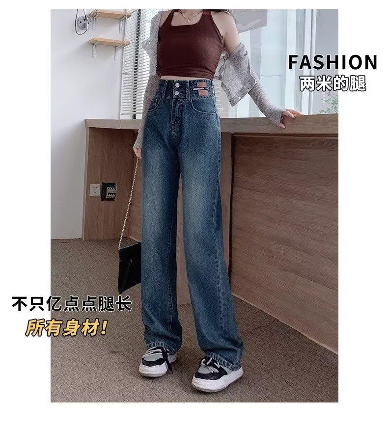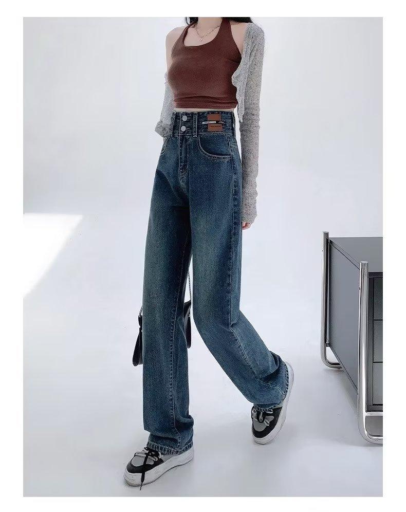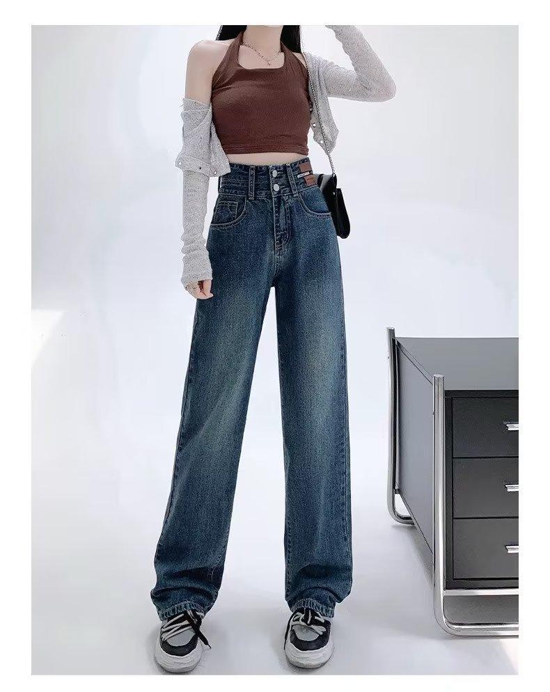Jeans retro de cintura alta para mujer rectos talla grande hermana gorda primavera y otoño diseño adelgazante nicho sueltos pantalones de pierna ancha primavera
