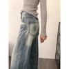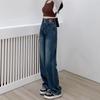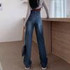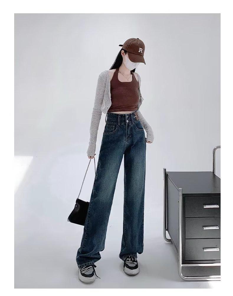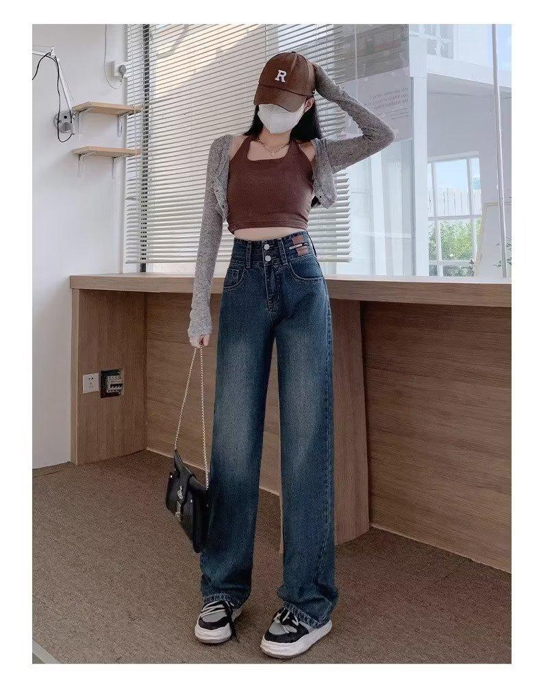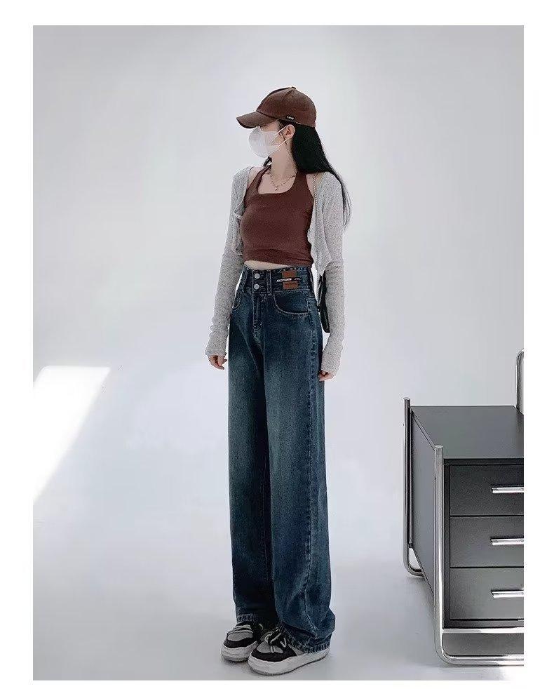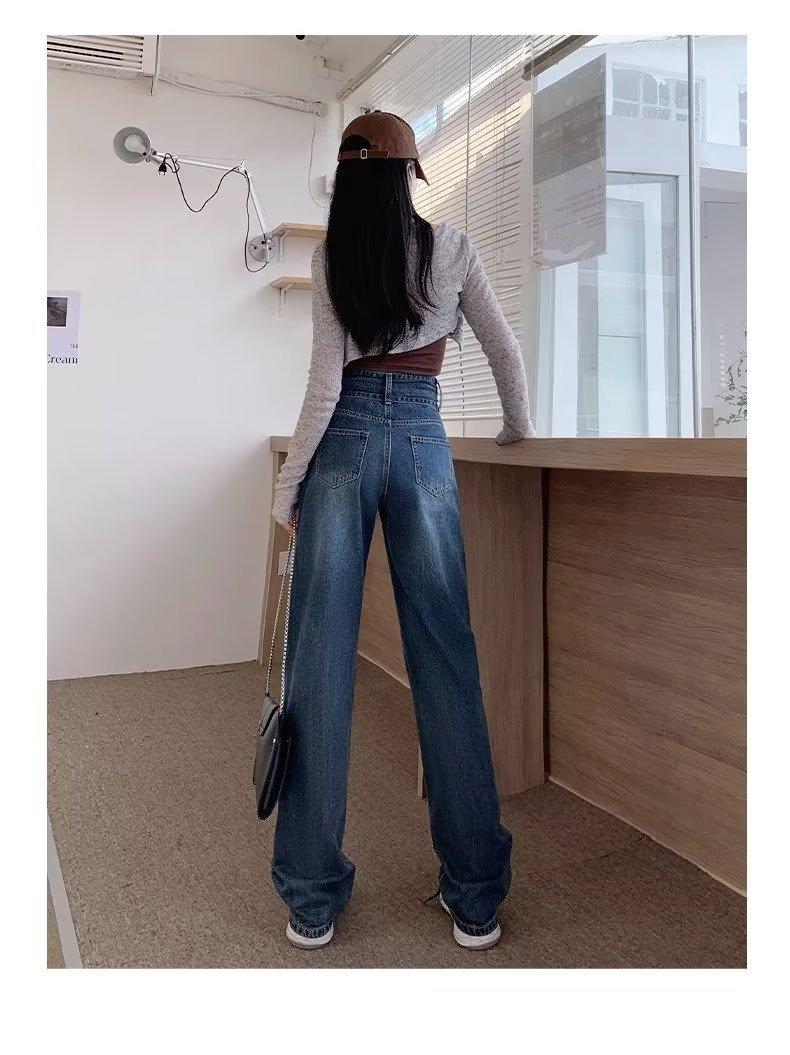 Jeans retro de cintura alta para mujer rectos talla grande hermana gorda primavera y otoño diseño adelgazante nicho sueltos pantalones de pierna ancha primavera