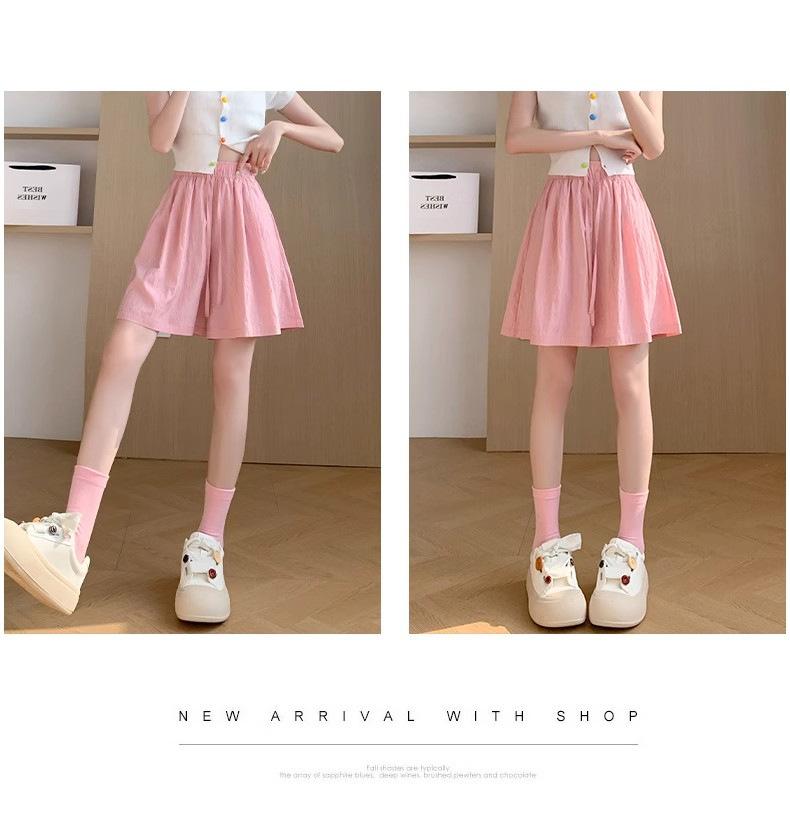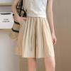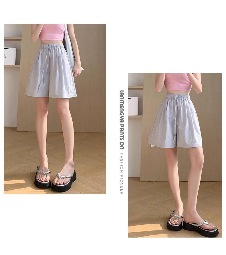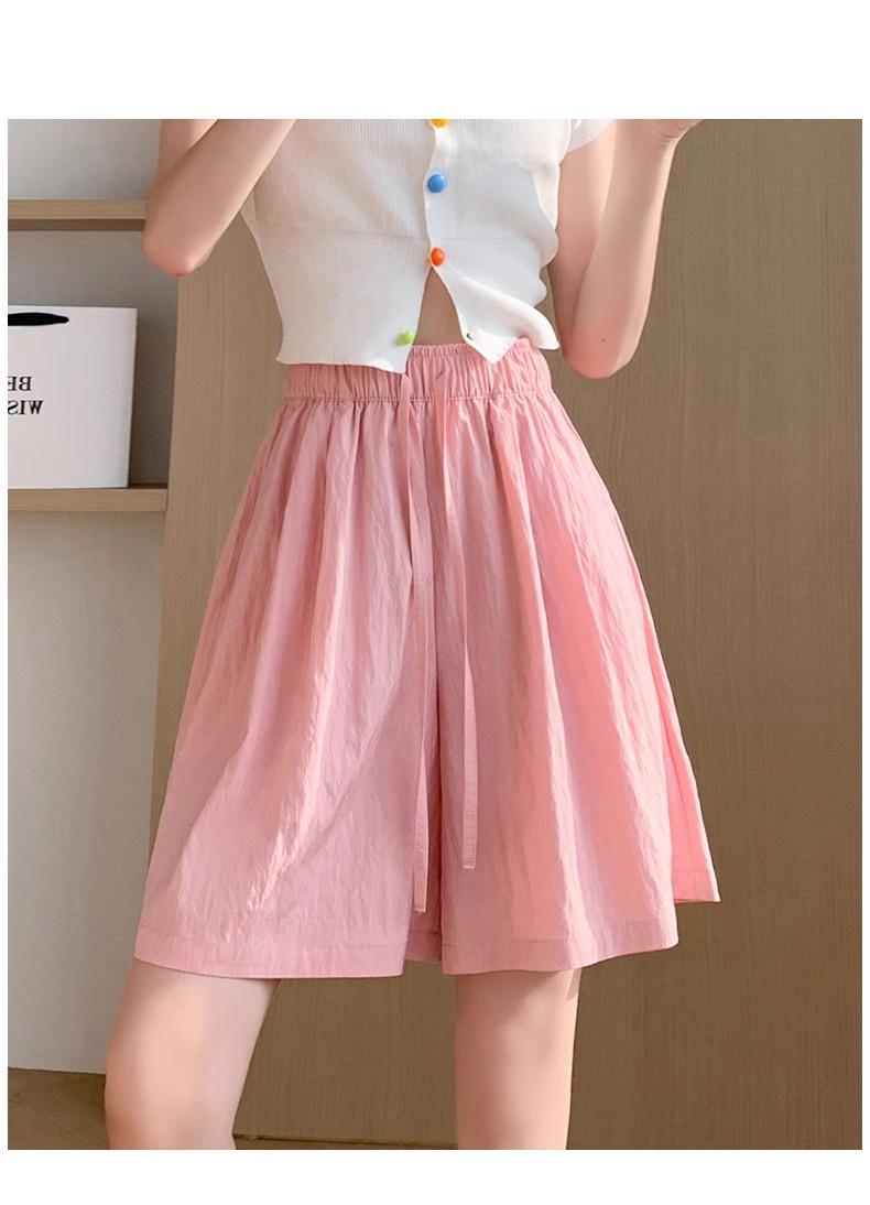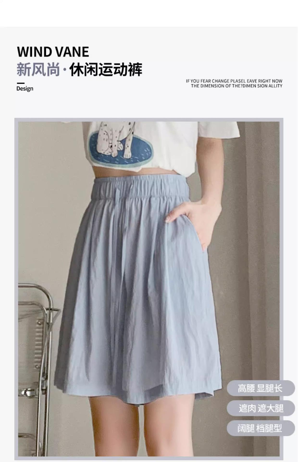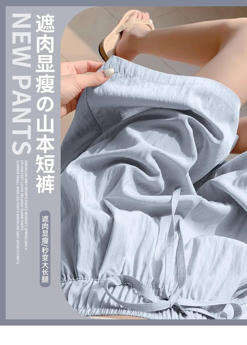Pantalones casuales sueltos de cintura alta de color sólido de verano para chicas gorditas de talla grande, pantalones adelgazantes de pierna ancha, pantalones cortos arrugados de seda de hielo de moda para mujeres