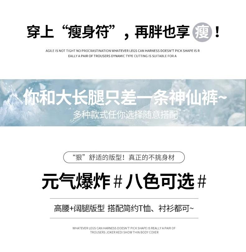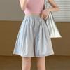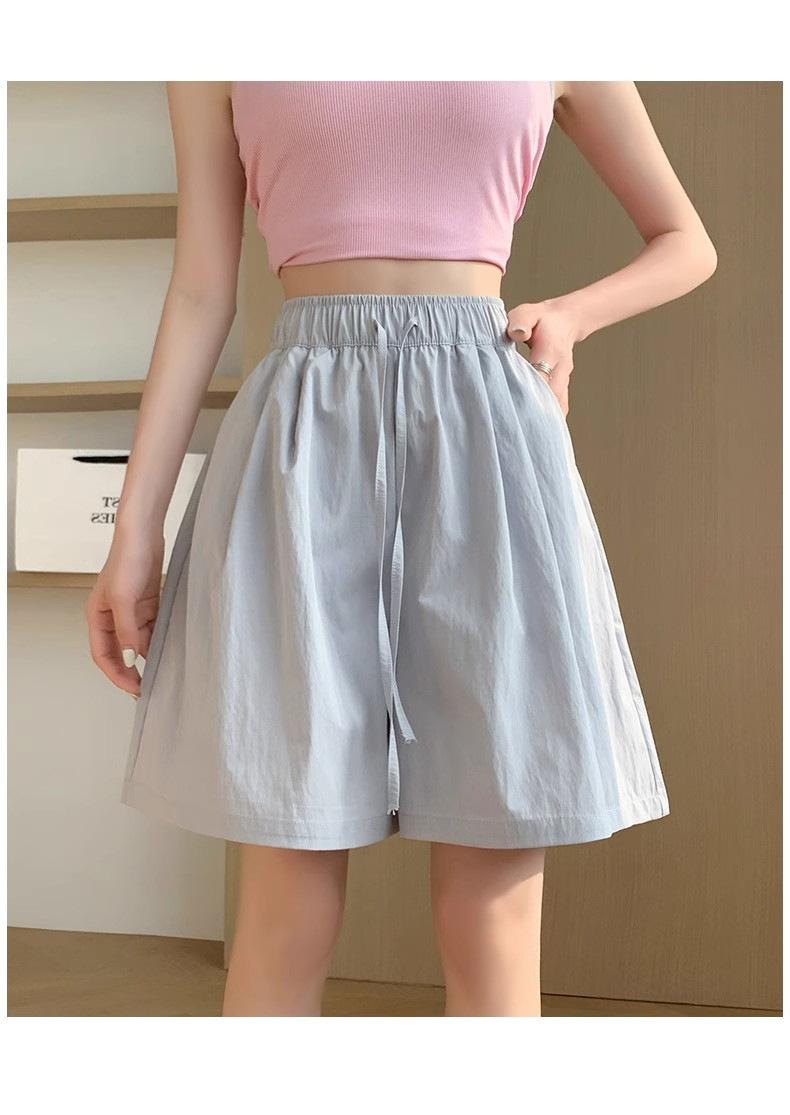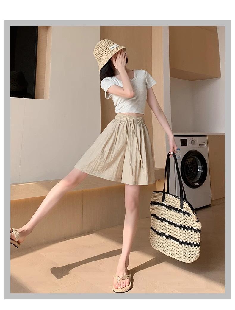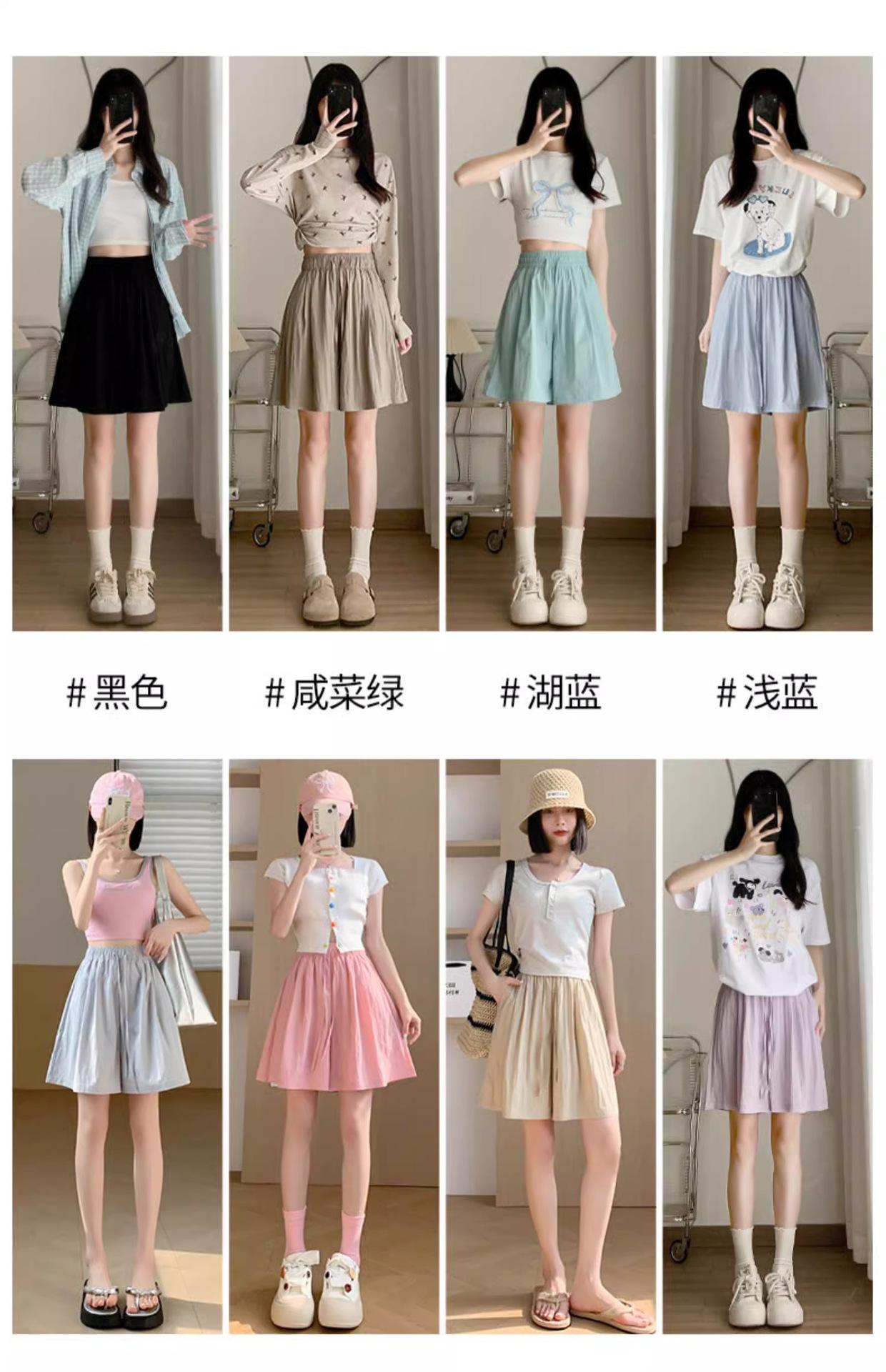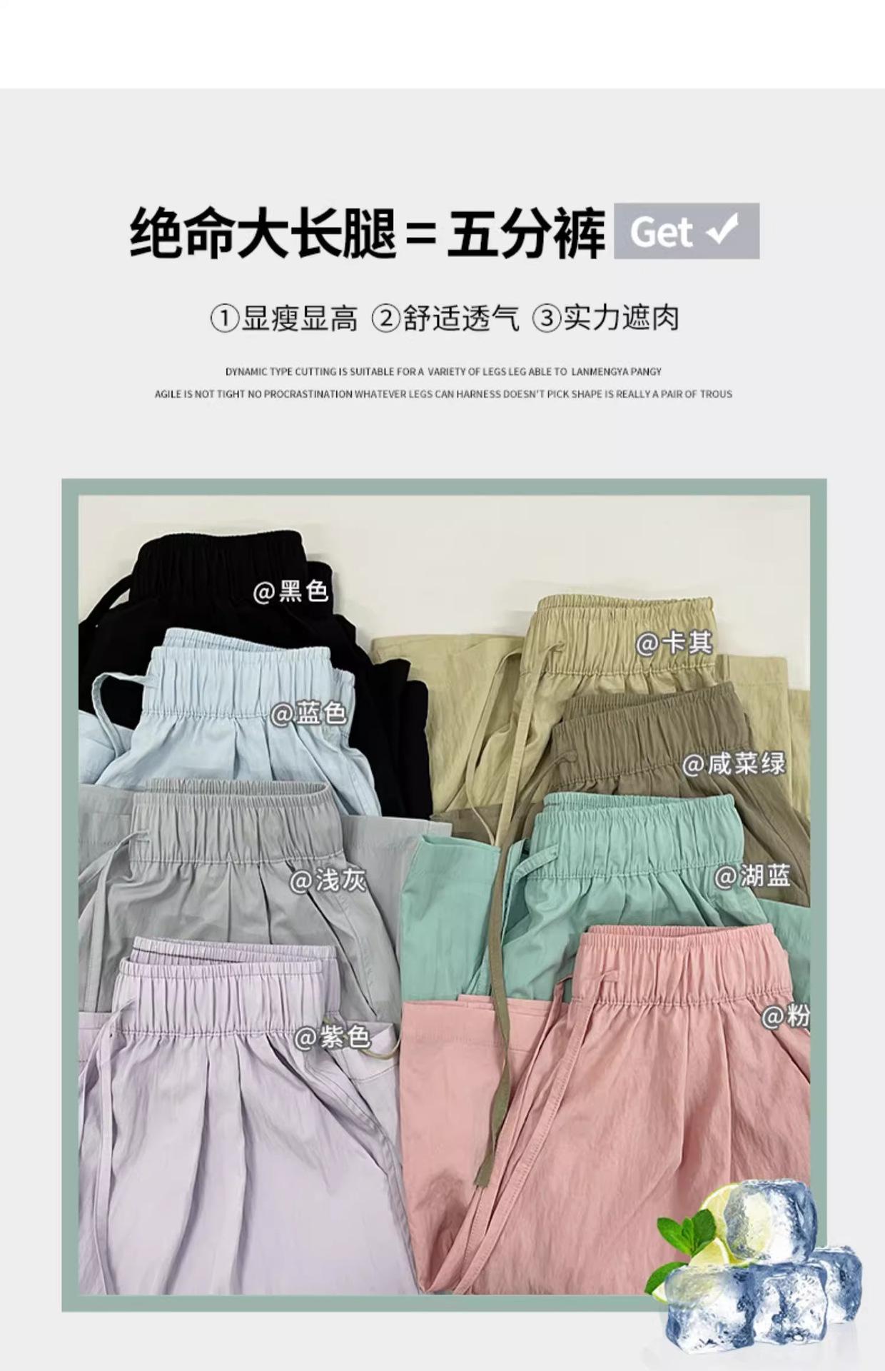 Pantalones casuales sueltos de cintura alta de color sólido de verano para chicas gorditas de talla grande, pantalones adelgazantes de pierna ancha, pantalones cortos arrugados de seda de hielo de moda para mujeres