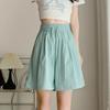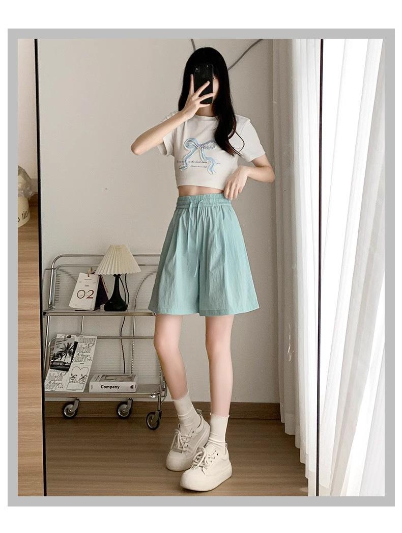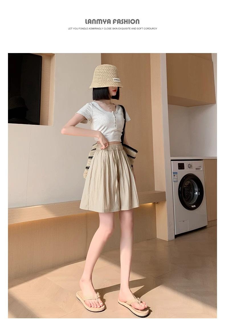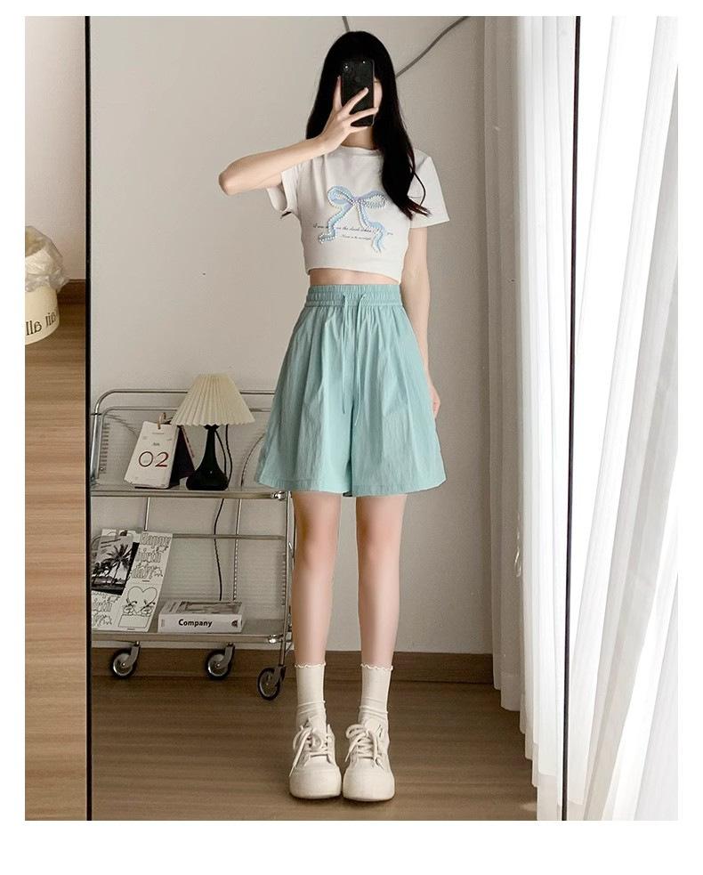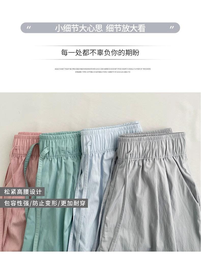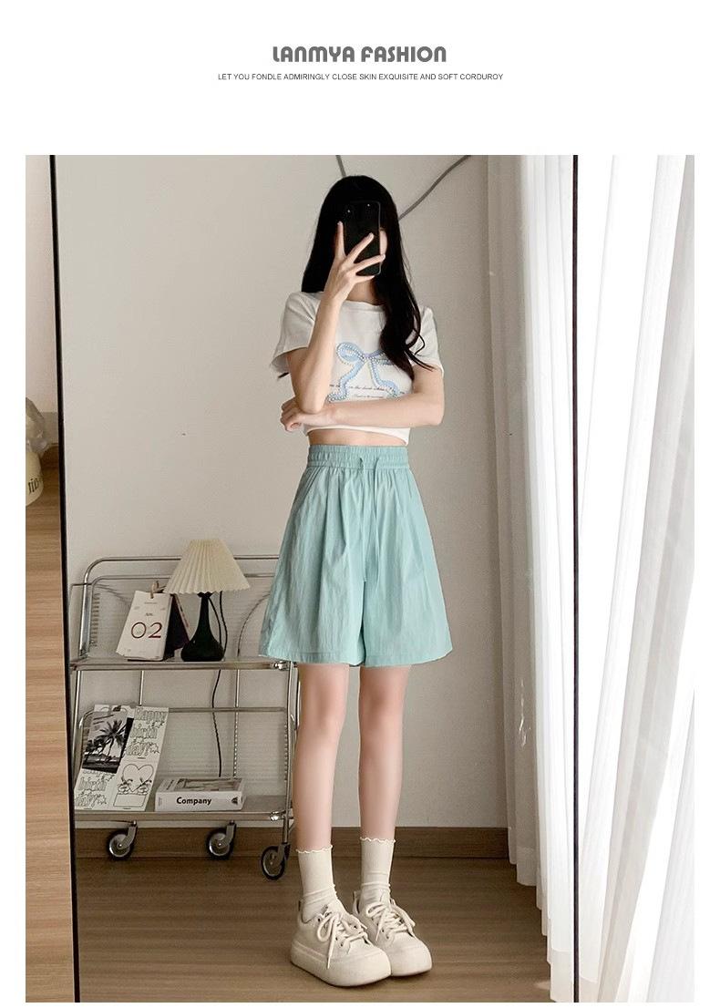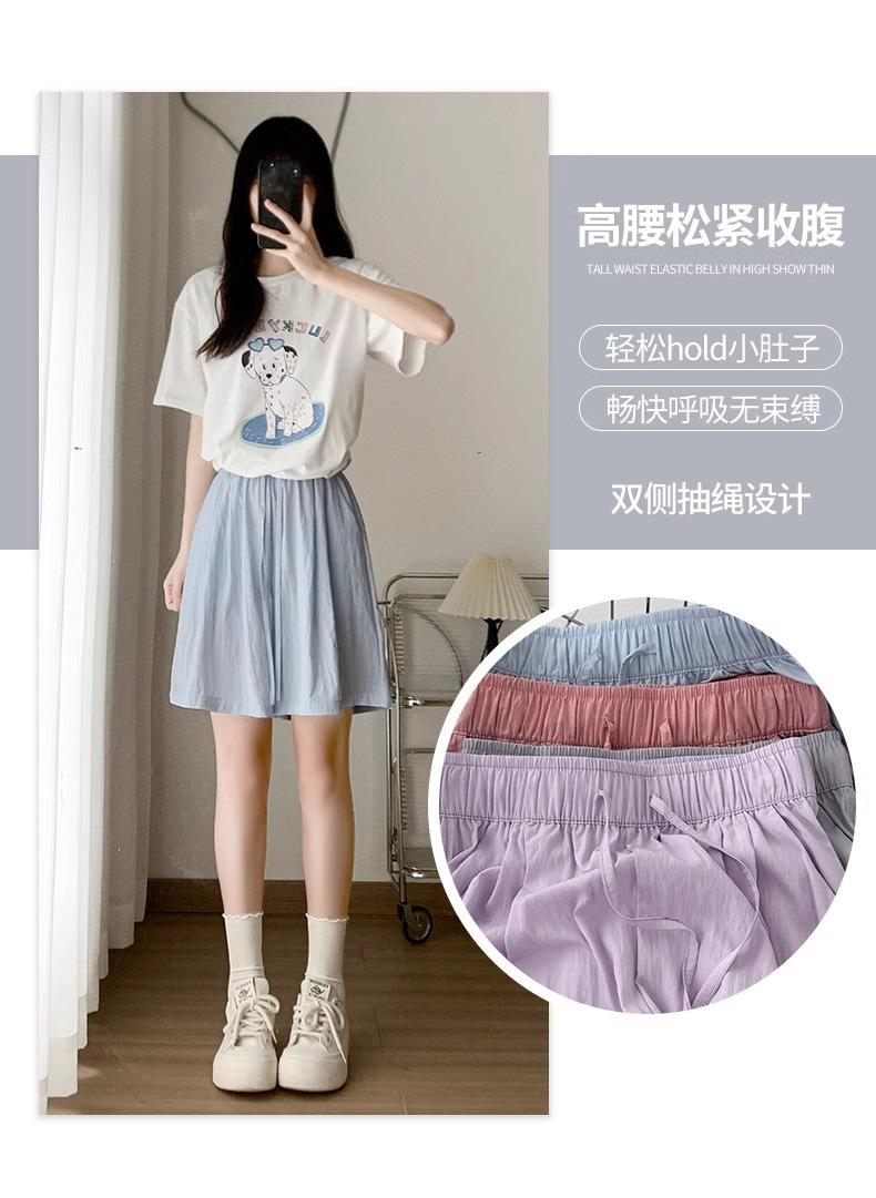 Pantalones casuales sueltos de cintura alta de color sólido de verano para chicas gorditas de talla grande, pantalones adelgazantes de pierna ancha, pantalones cortos arrugados de seda de hielo de moda para mujeres