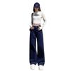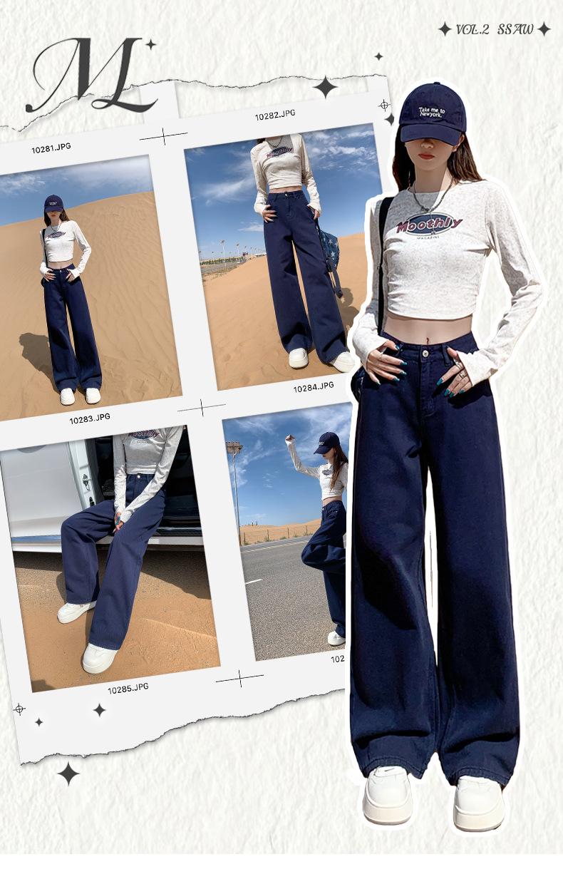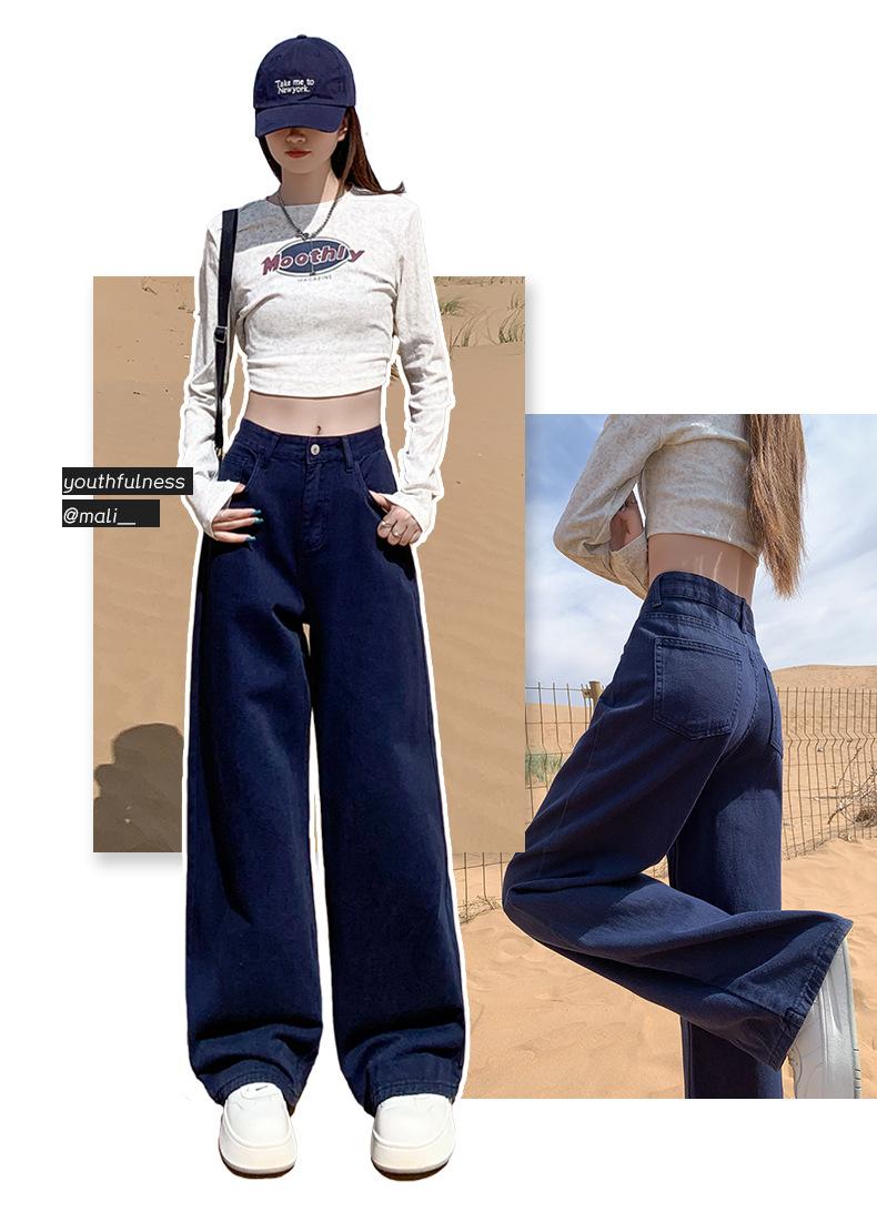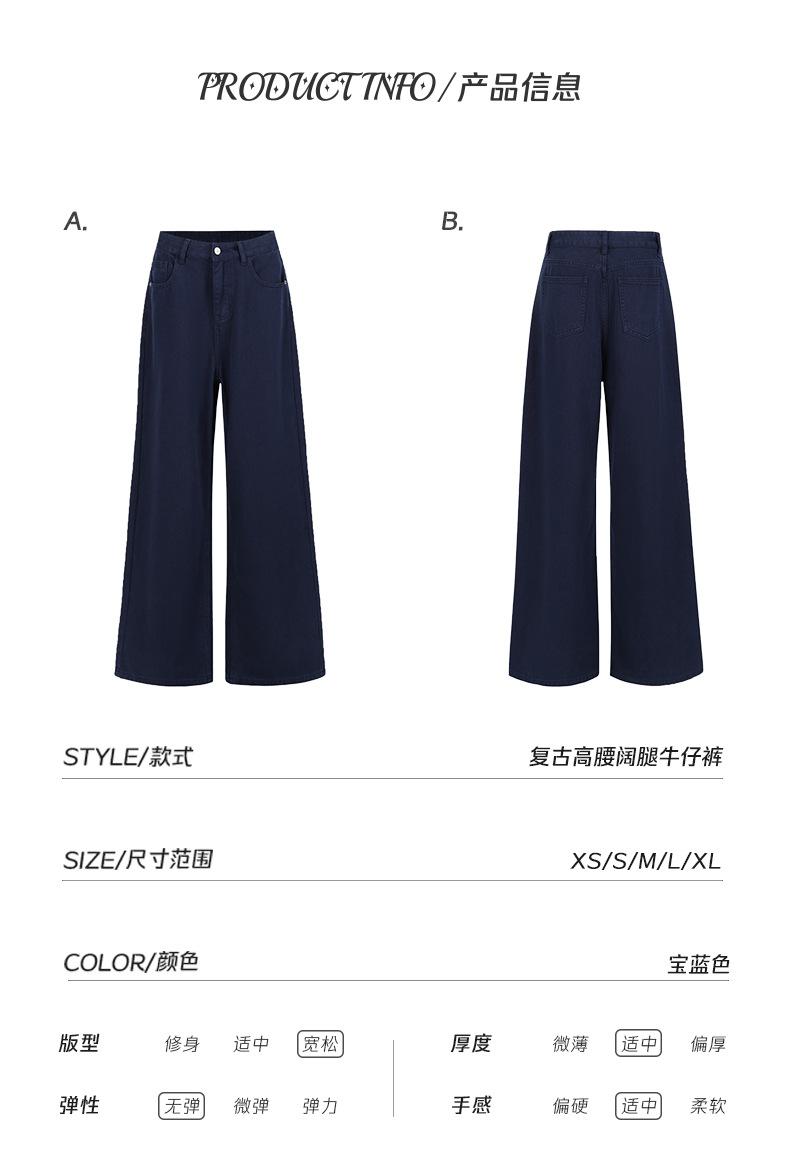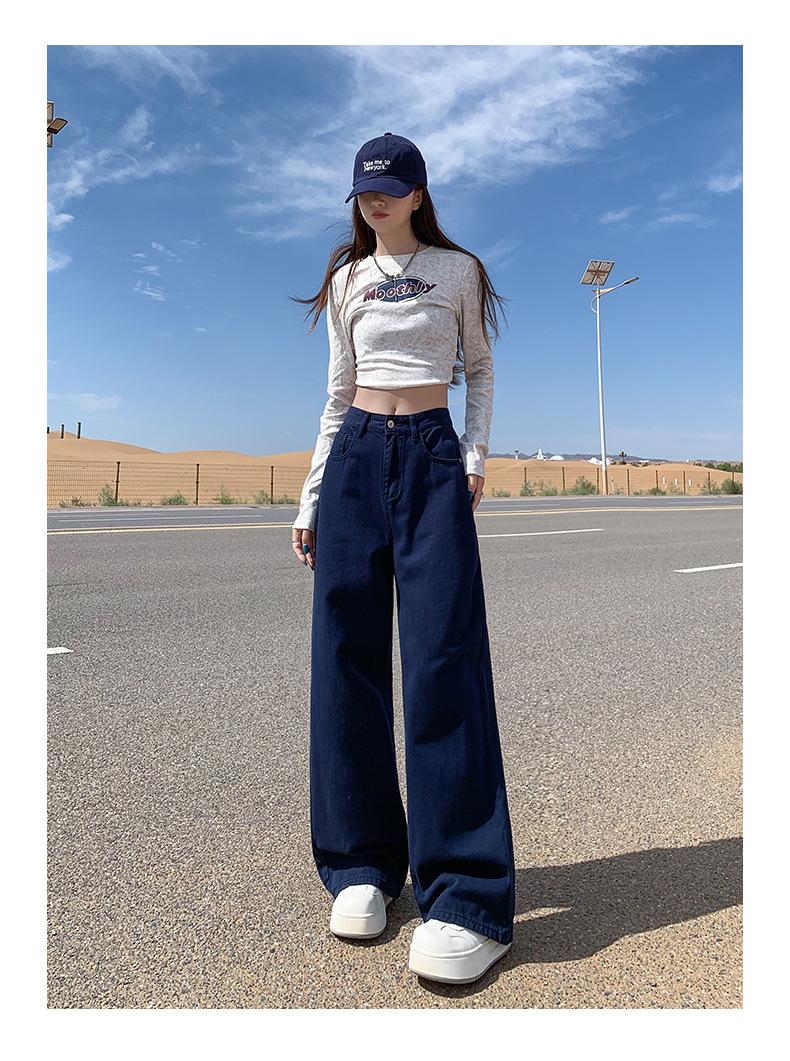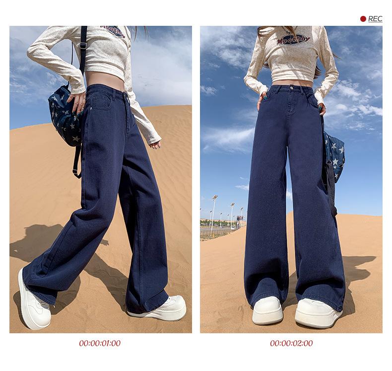 Pantalones vaqueros retro azul real lavados de cintura alta de otoño 2024 de alta calidad para mujer, pantalones holgados y ajustados de pierna ancha