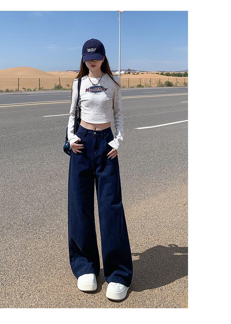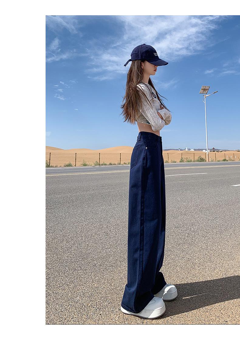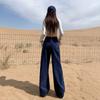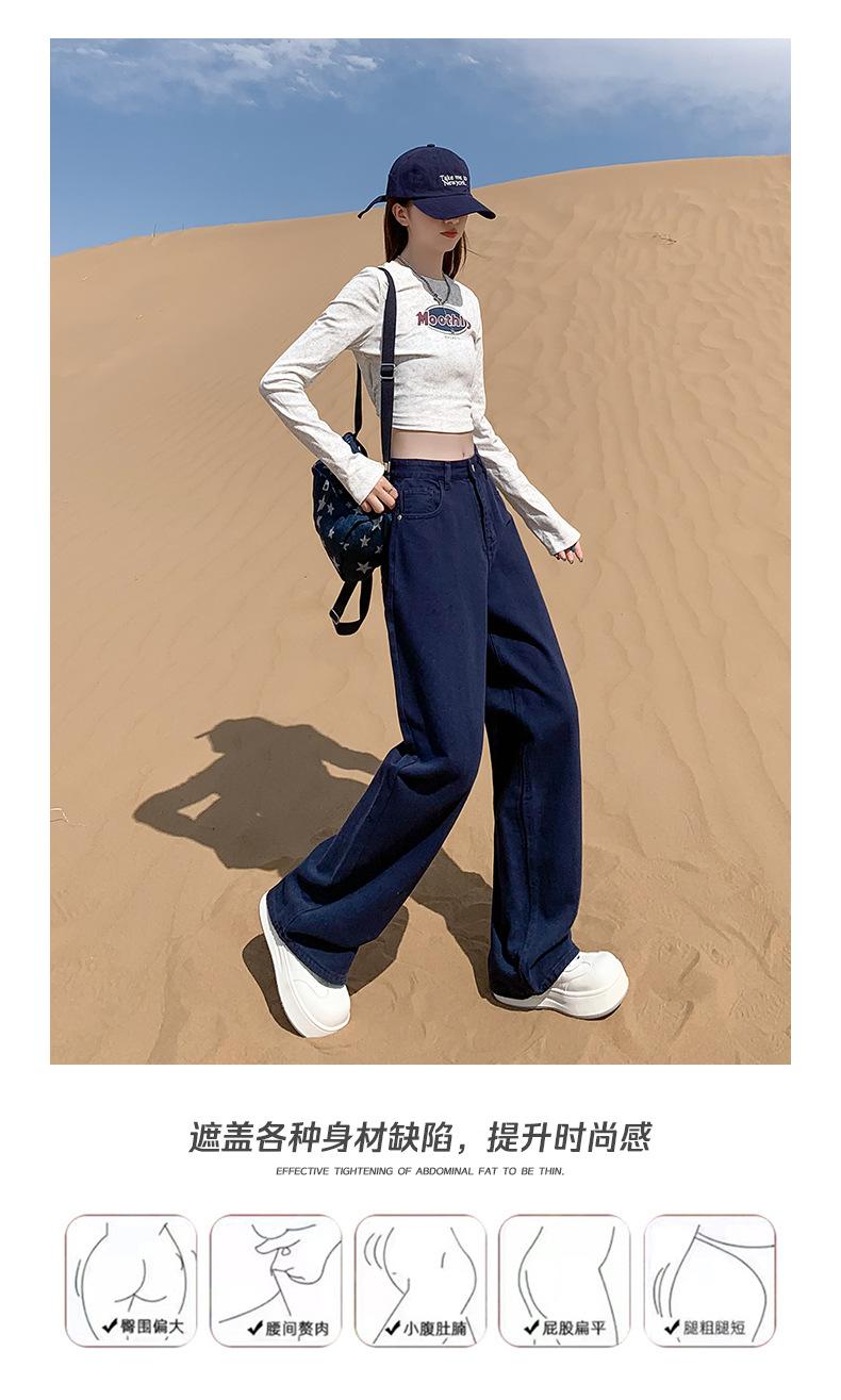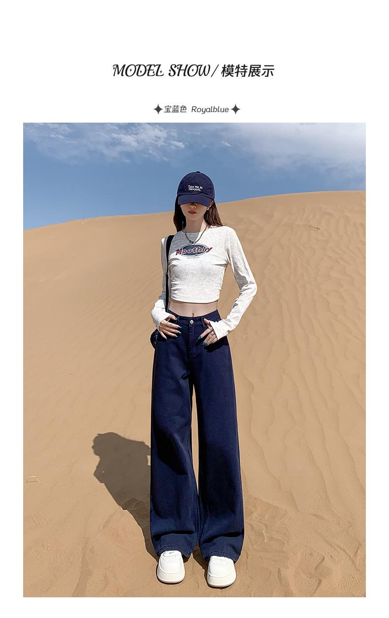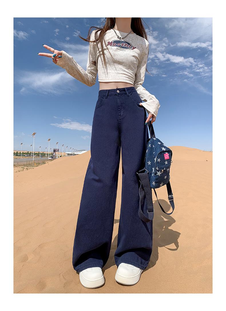 Pantalones vaqueros retro azul real lavados de cintura alta de otoño 2024 de alta calidad para mujer, pantalones holgados y ajustados de pierna ancha