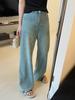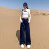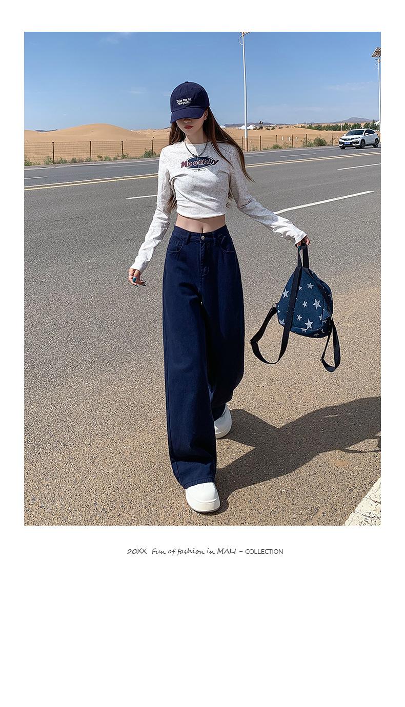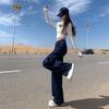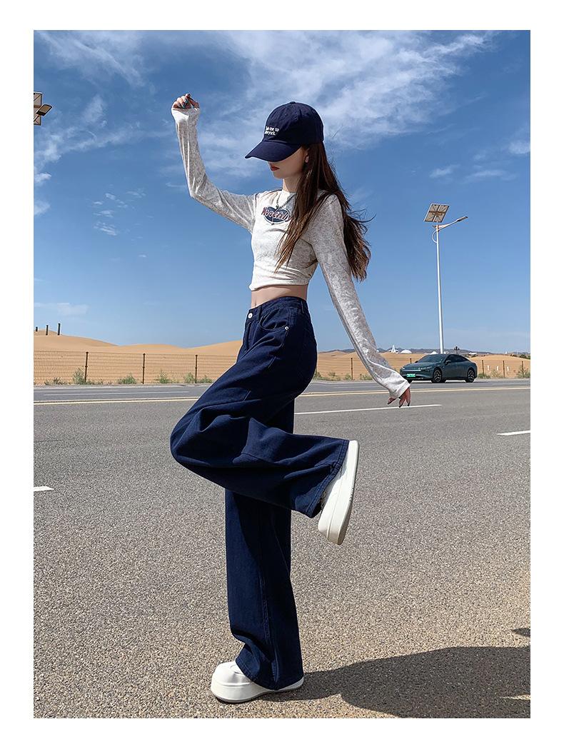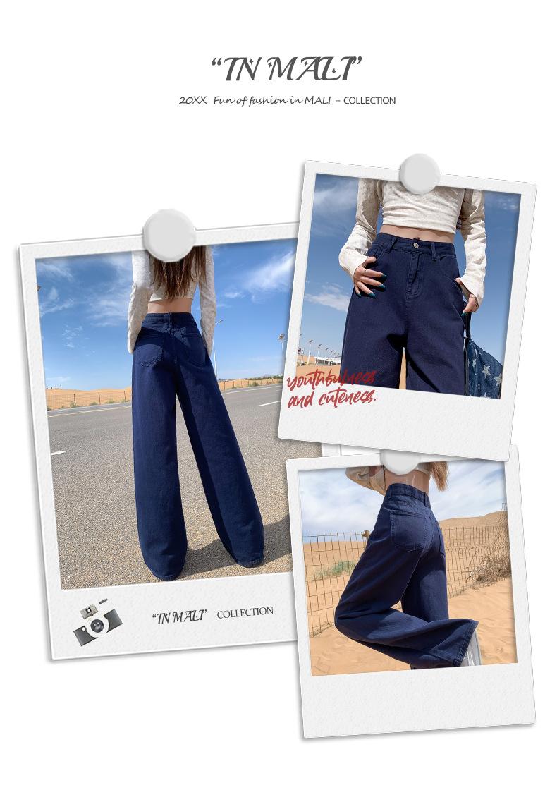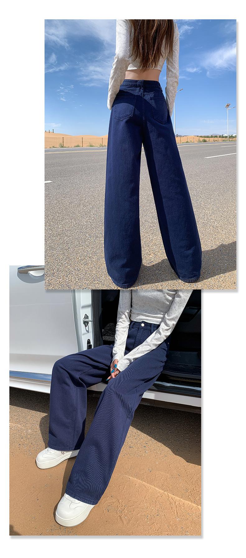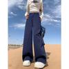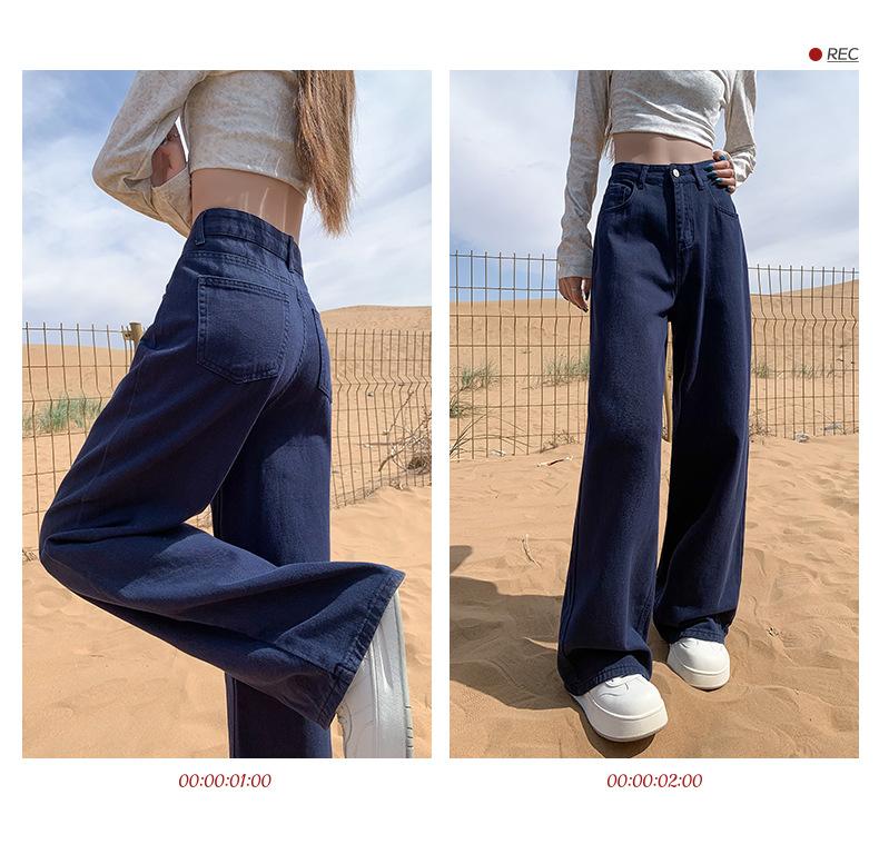 Pantalones vaqueros retro azul real lavados de cintura alta de otoño 2024 de alta calidad para mujer, pantalones holgados y ajustados de pierna ancha