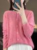 Cárdigan de Lana 100% Pura para Mujer Primavera Nuevo Cuello Redondo Hueco Suéter Tejido Top Suelto Estilo Occidental Abrigo de Suéter Delgado