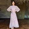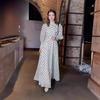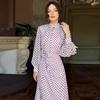 Otoño 2024 Nuevo Europeo y Americano Amazon Transfronterizo para Mujer Cuello Redondo Moda Estampado de Lunares Vestido Elegante