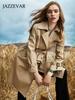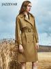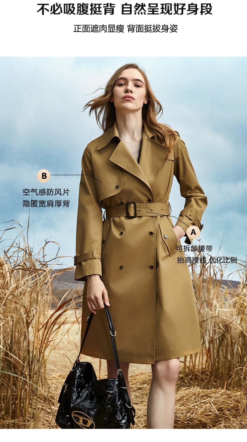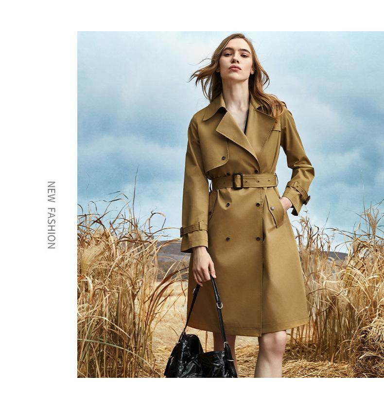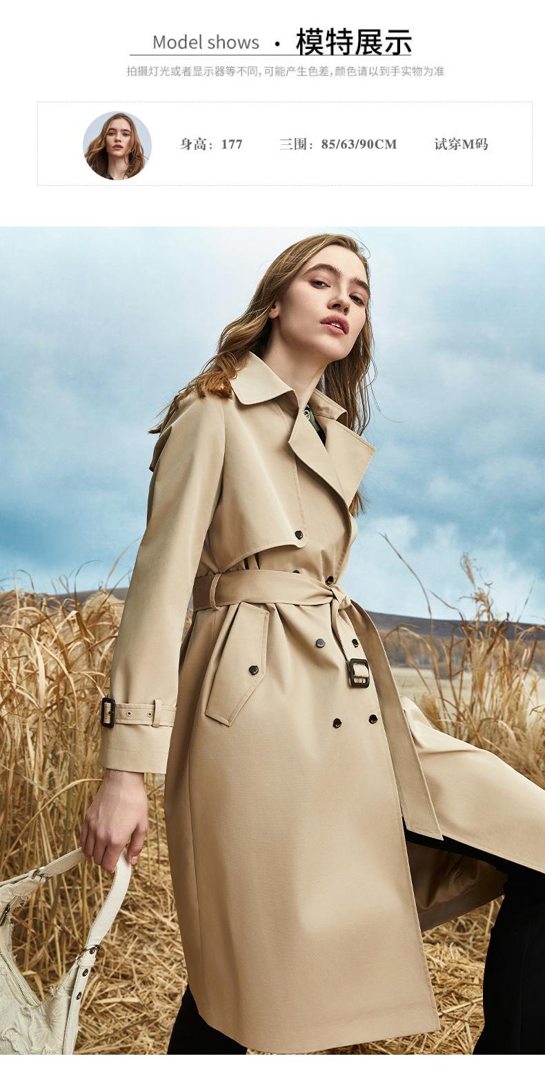 Rompevientos para mujer Jiazawa 25 Primavera Nuevo Casual Suelto Largo Medio Estilo Británico Chaqueta de Cintura de Alta Calidad