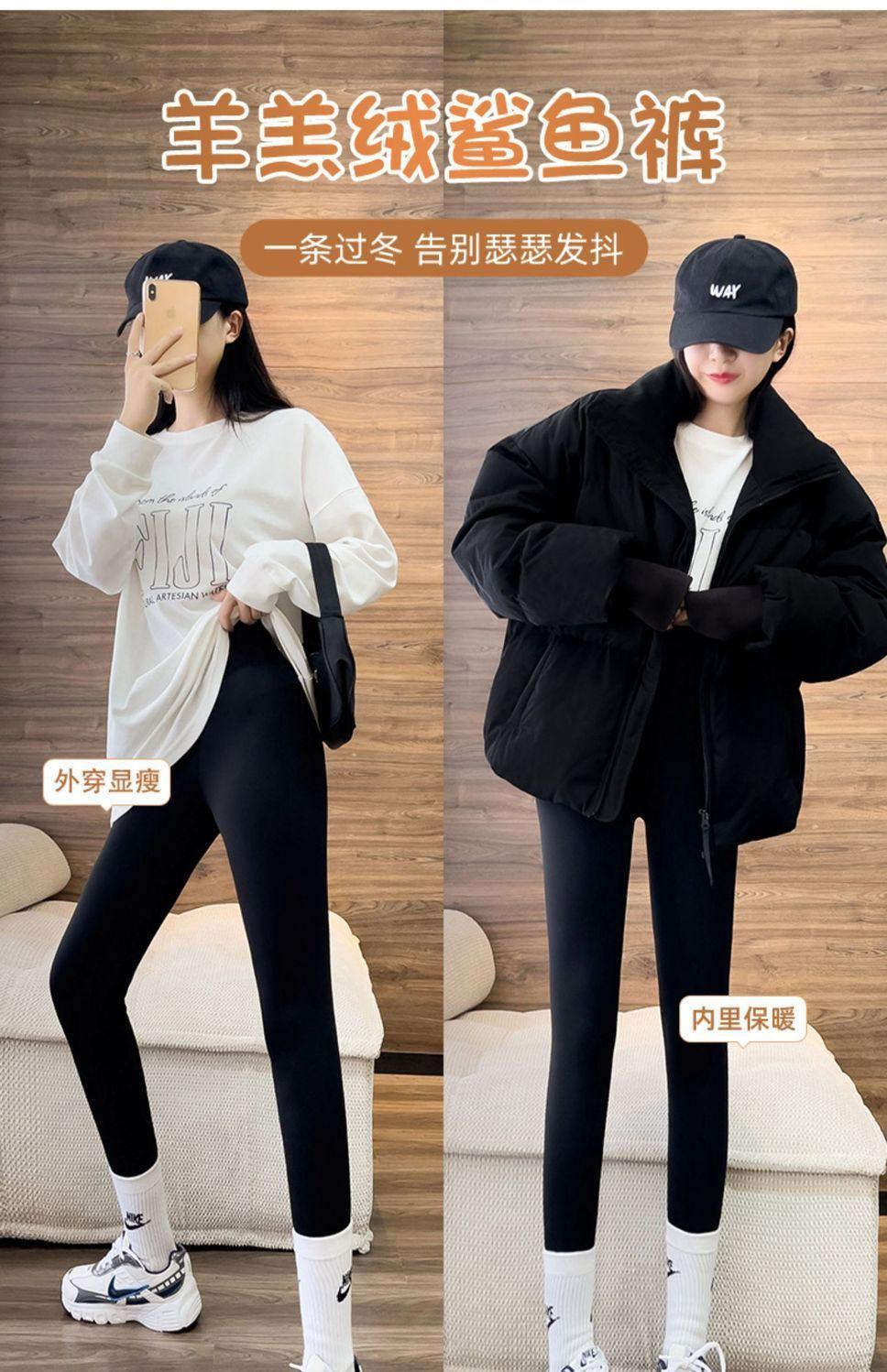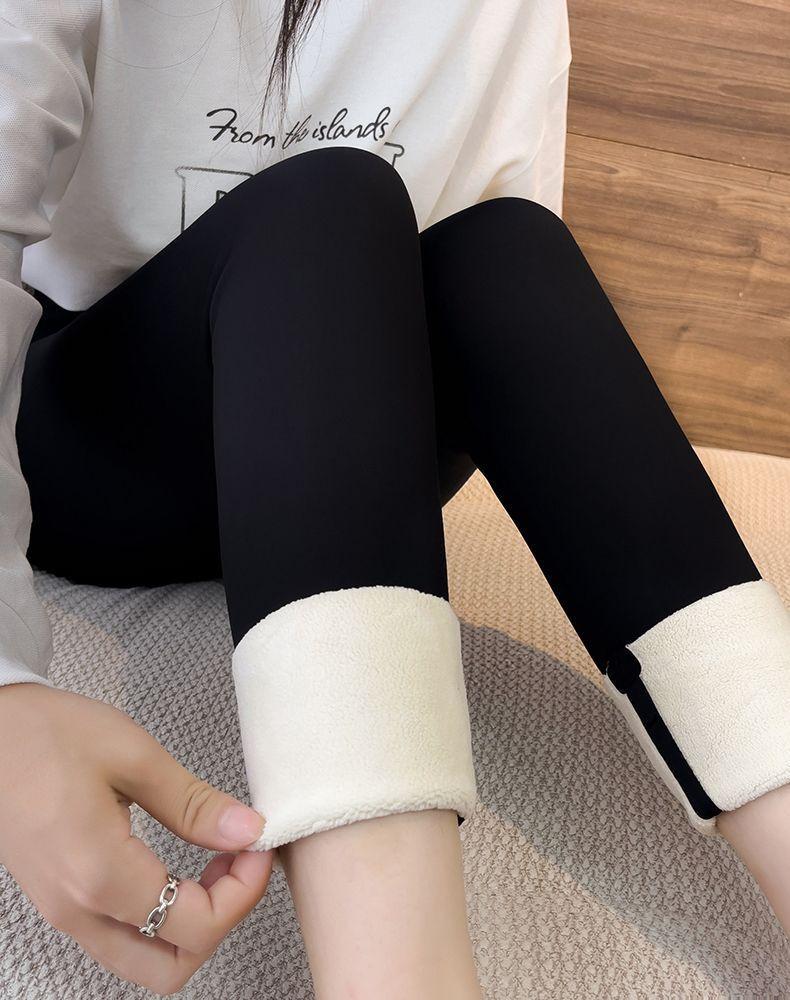 Leggings forro polar Ropa exterior para mujer Levanta vientre Cadera Grueso Cálido Yoga Otoño e Invierno Pantalones de cordero Tiburón Pantalones Barbie