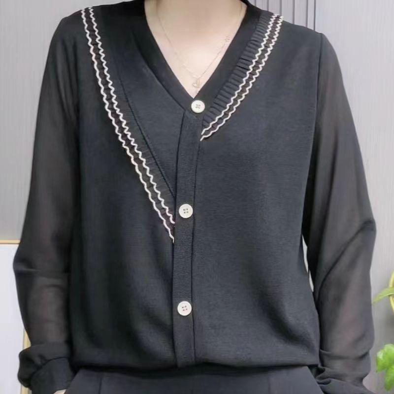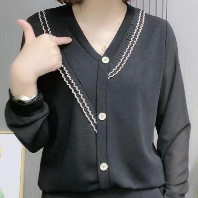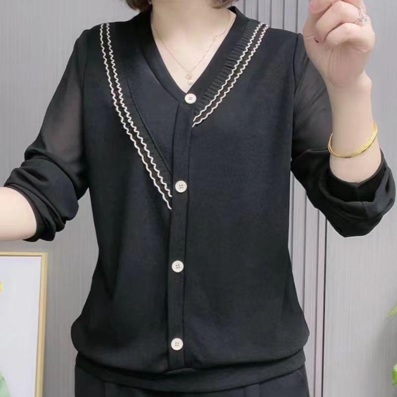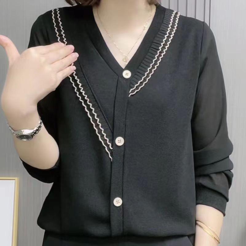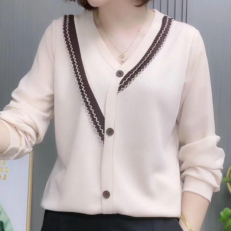 Camiseta de gasa estilo occidental, elegante, de primavera, con cuello en V, holgada y combinable para mujer