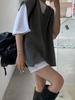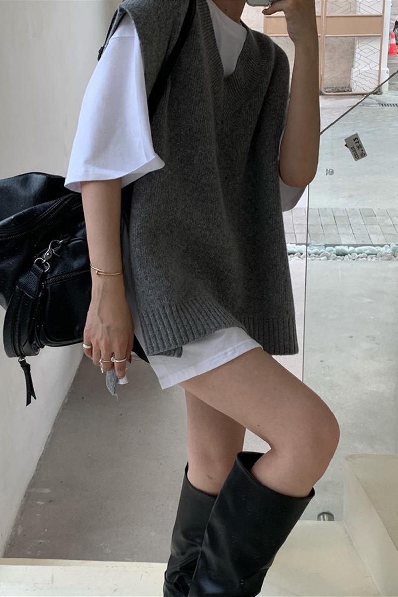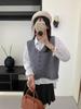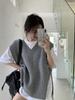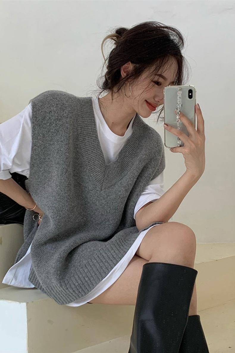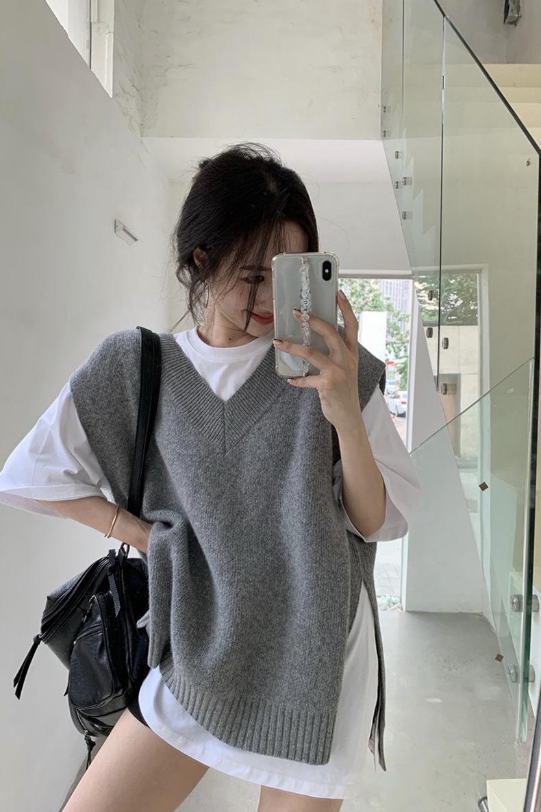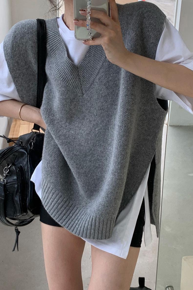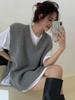 Chaleco de punto con escote en V dividido para mujer, suéter holgado de otoño e invierno 2024, prenda exterior estilo coreano, chaleco sin mangas.