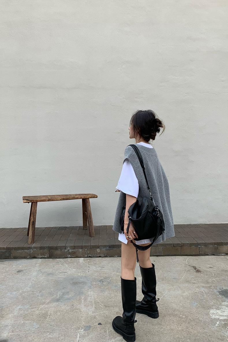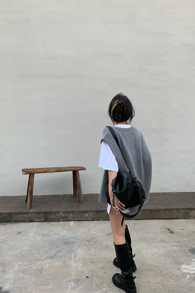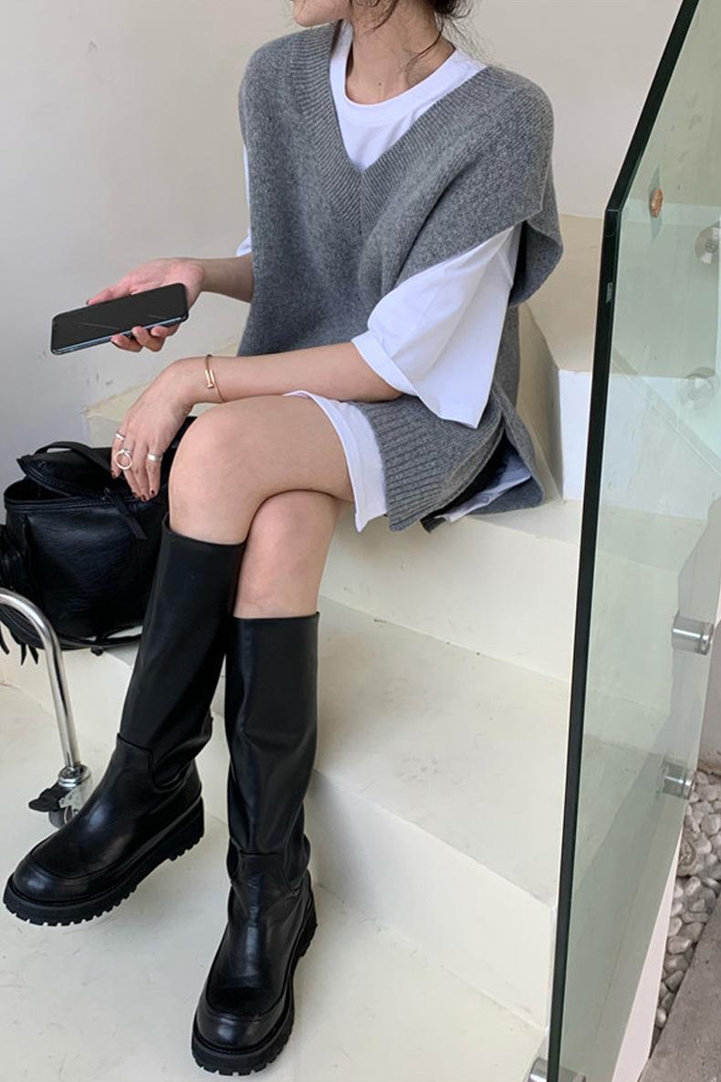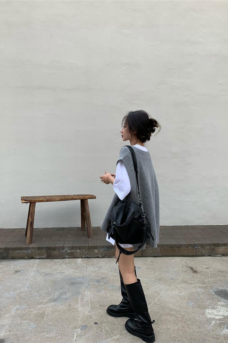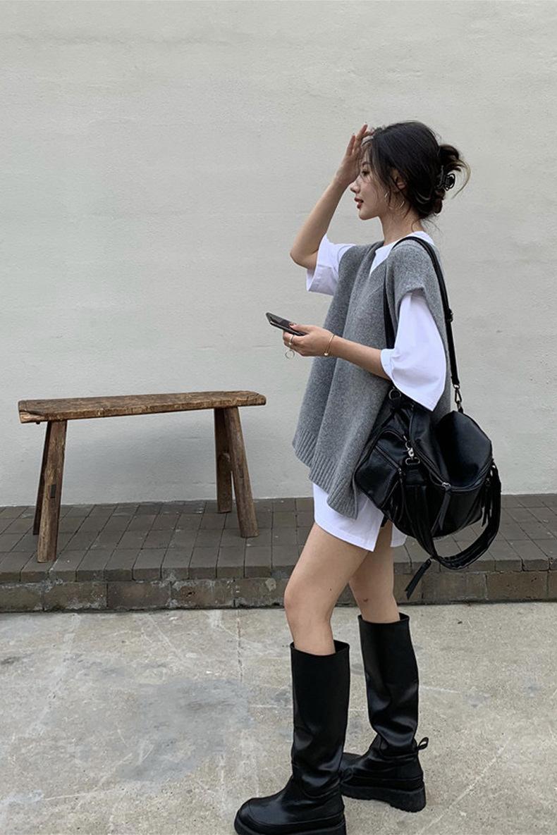 Chaleco de punto con escote en V dividido para mujer, suéter holgado de otoño e invierno 2024, prenda exterior estilo coreano, chaleco sin mangas.