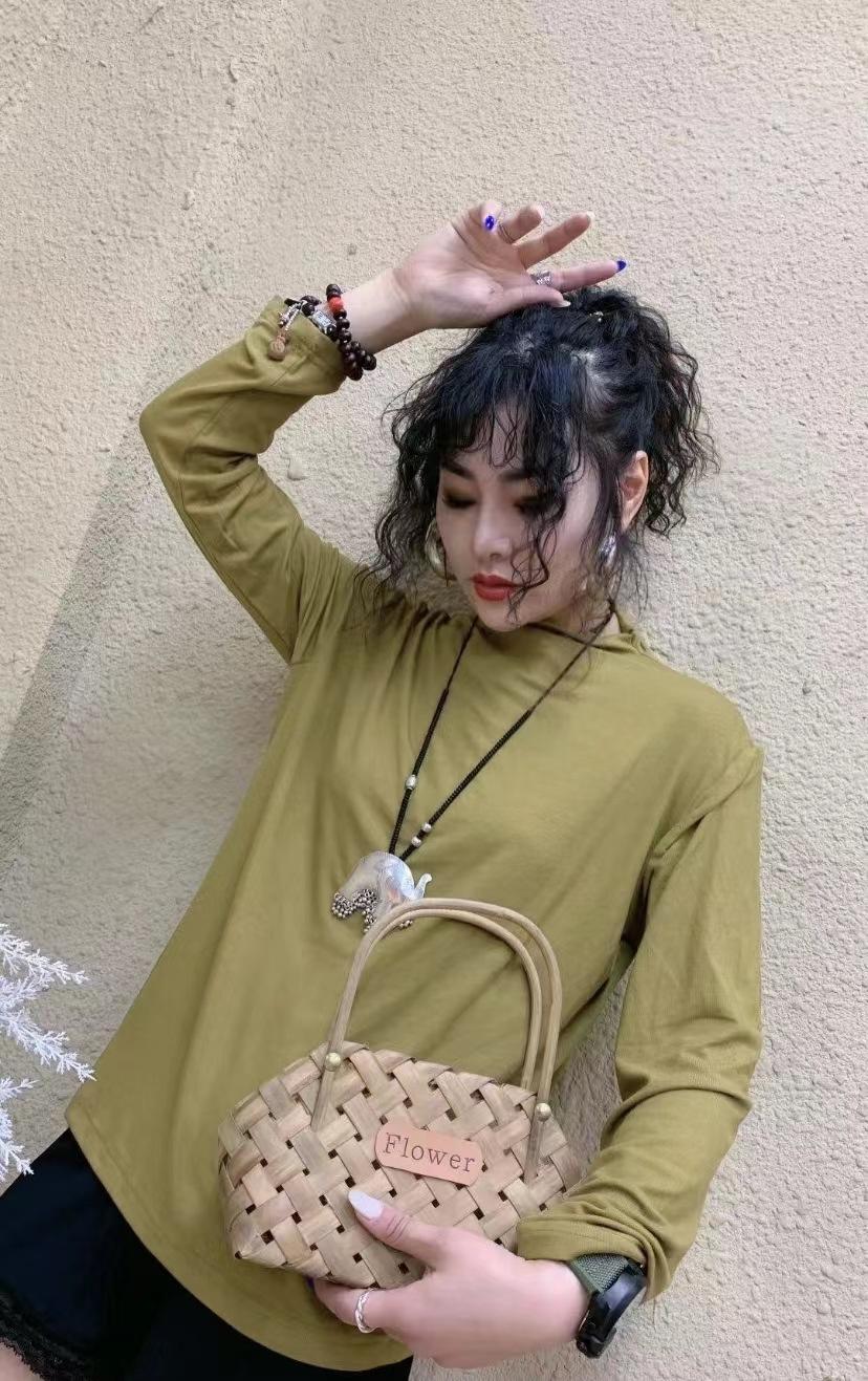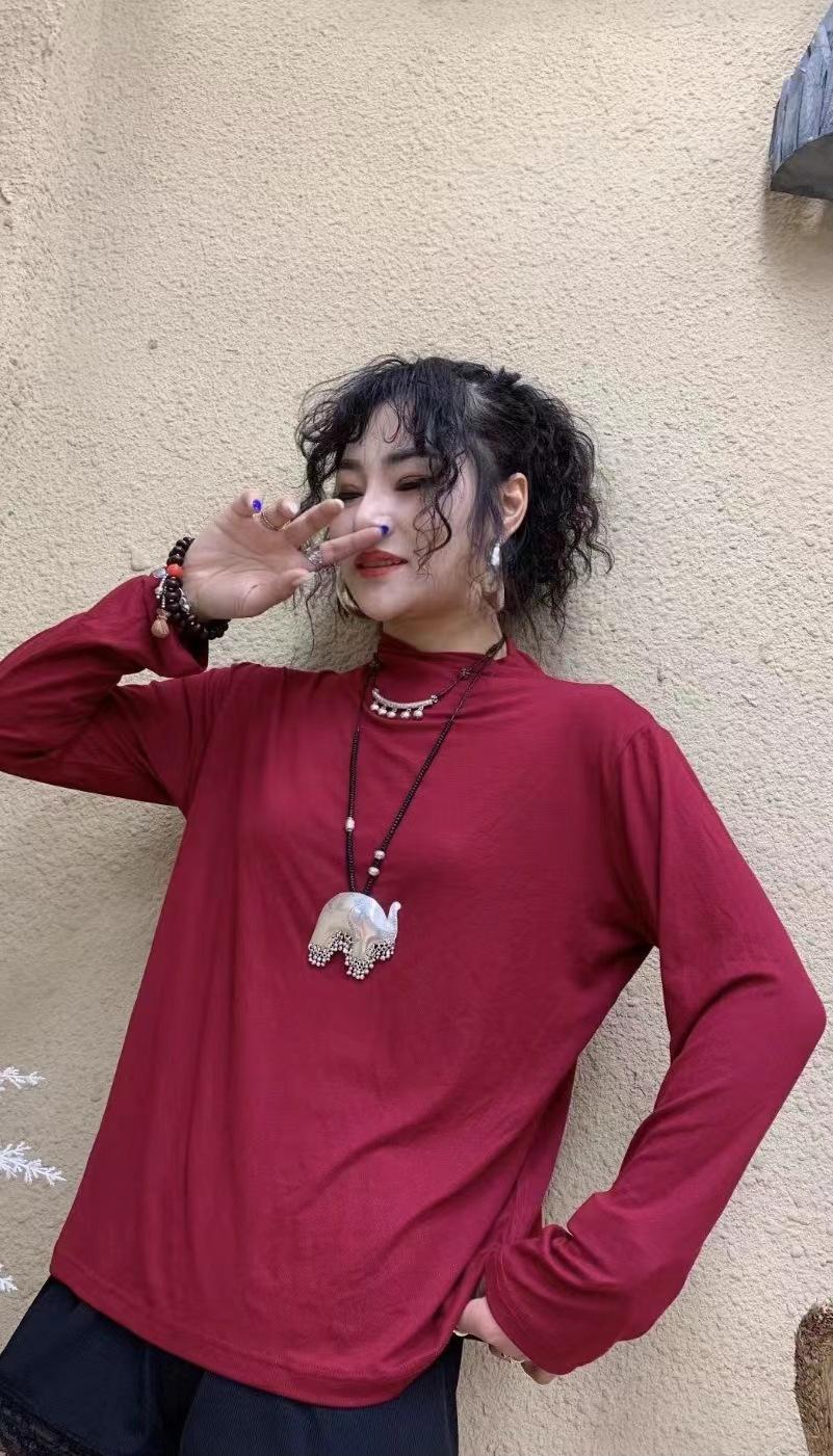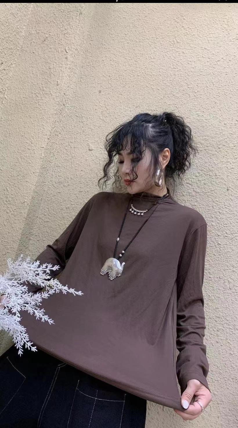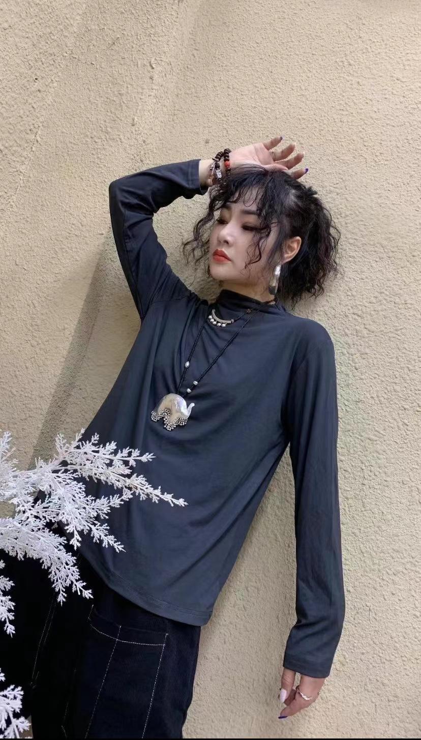 2024 Principios de Otoño Nuevo Artístico Amigable con la Piel Alta Elasticidad Manga Larga Camiseta Base Casual Combinable Camiseta Adelgazante