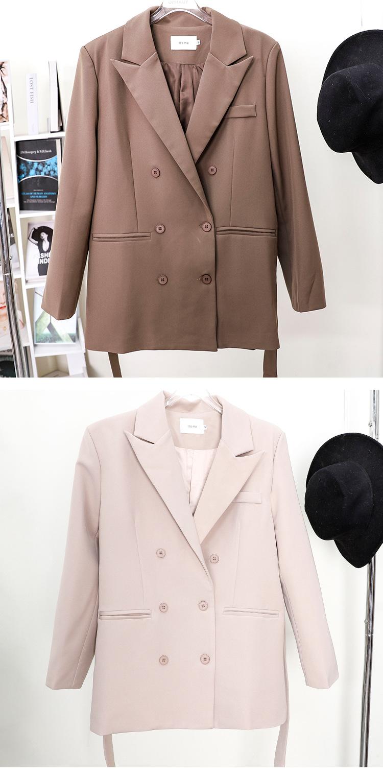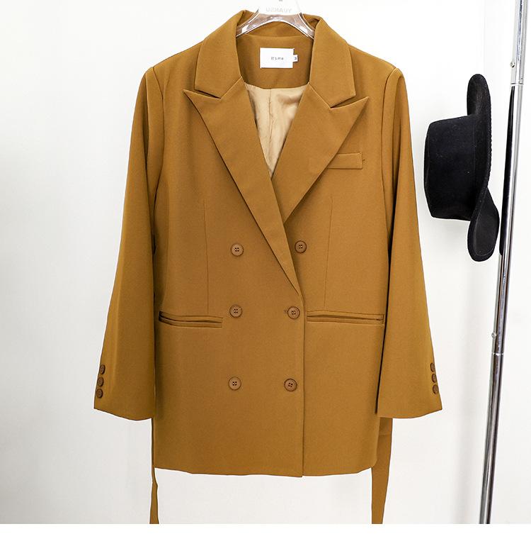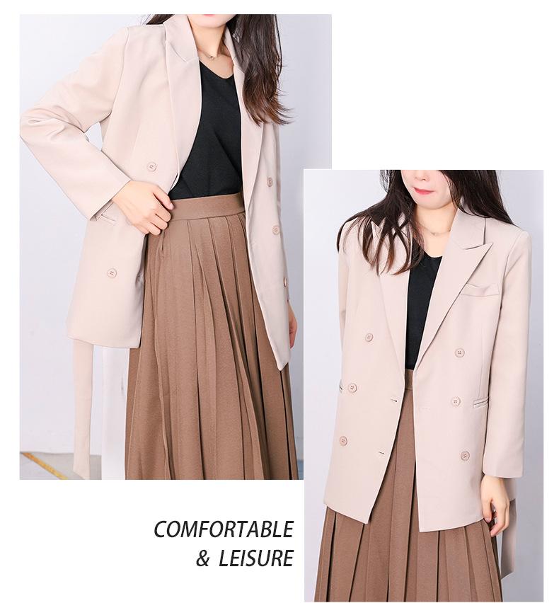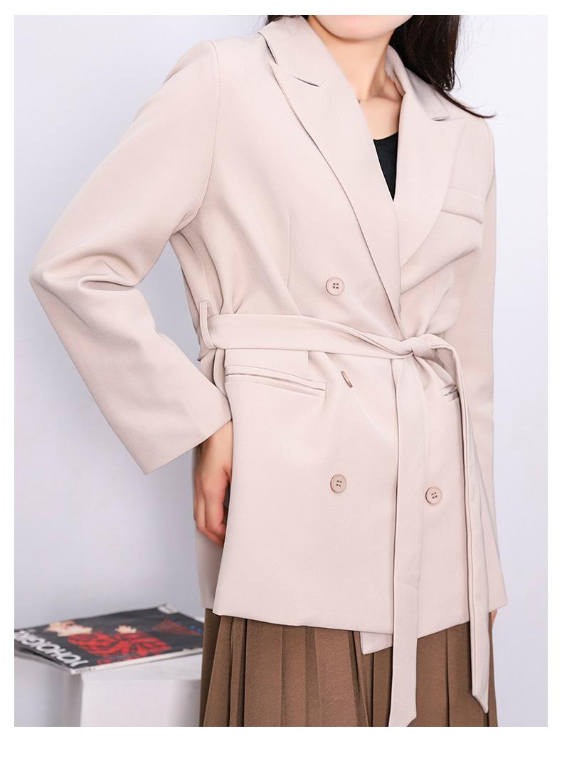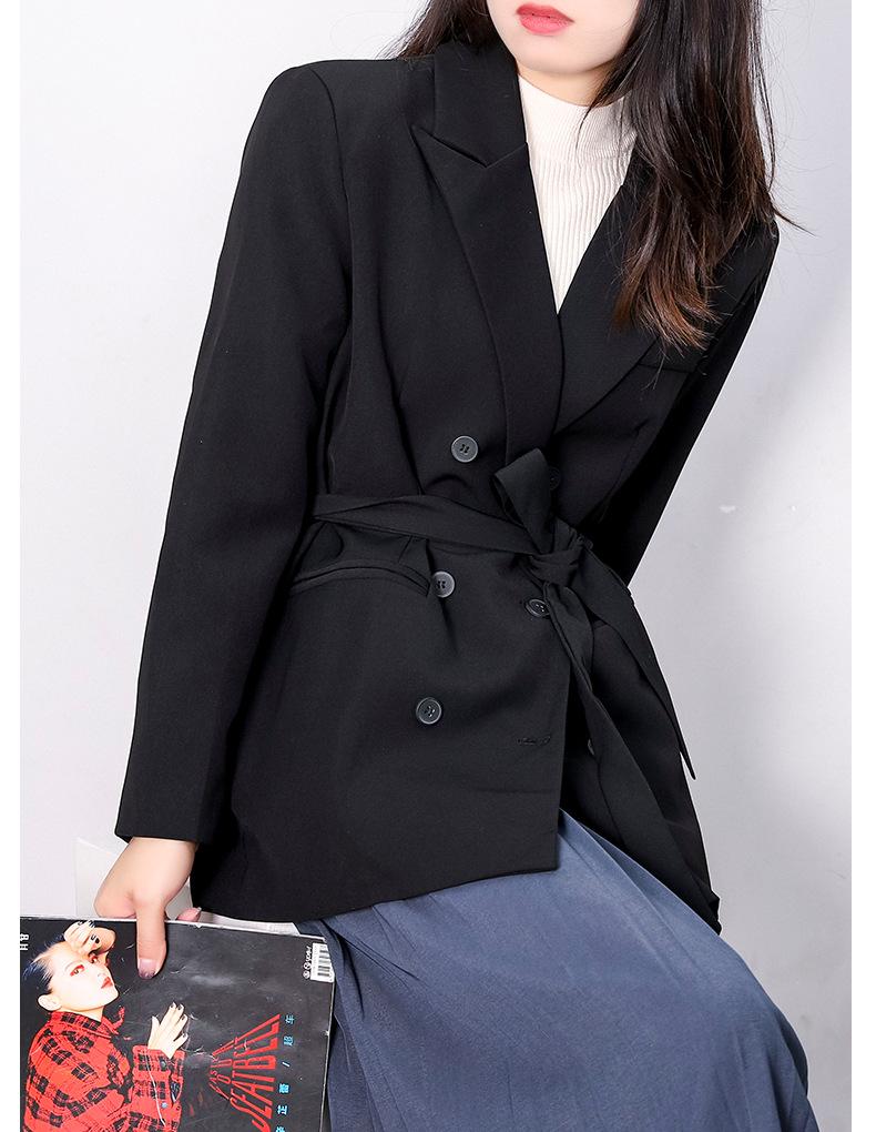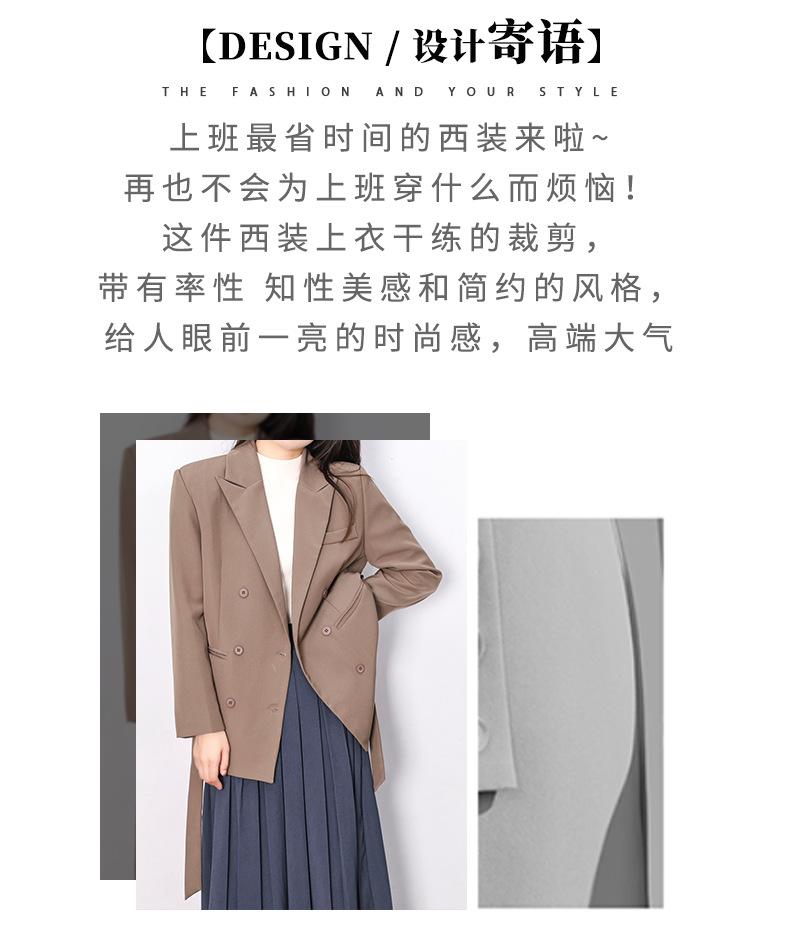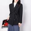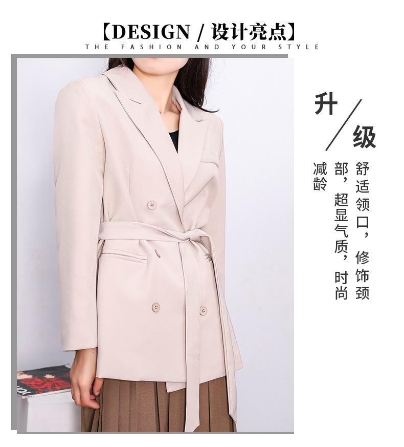 Principios de Otoño Nuevo Sencillo Moda Chaqueta de Traje Cruzada para Mujer Diseño con Sentido de Estilo Coreano Encaje en la Cintura Traje para Ir al Trabajo