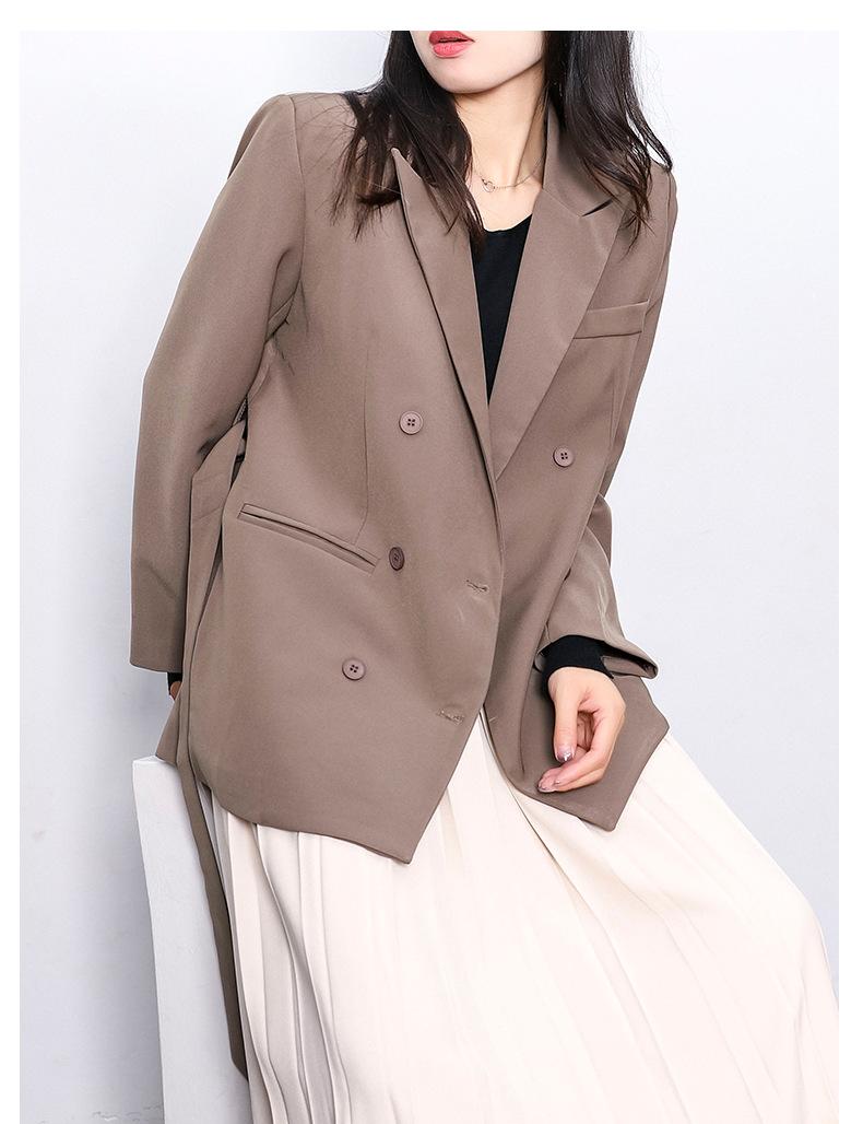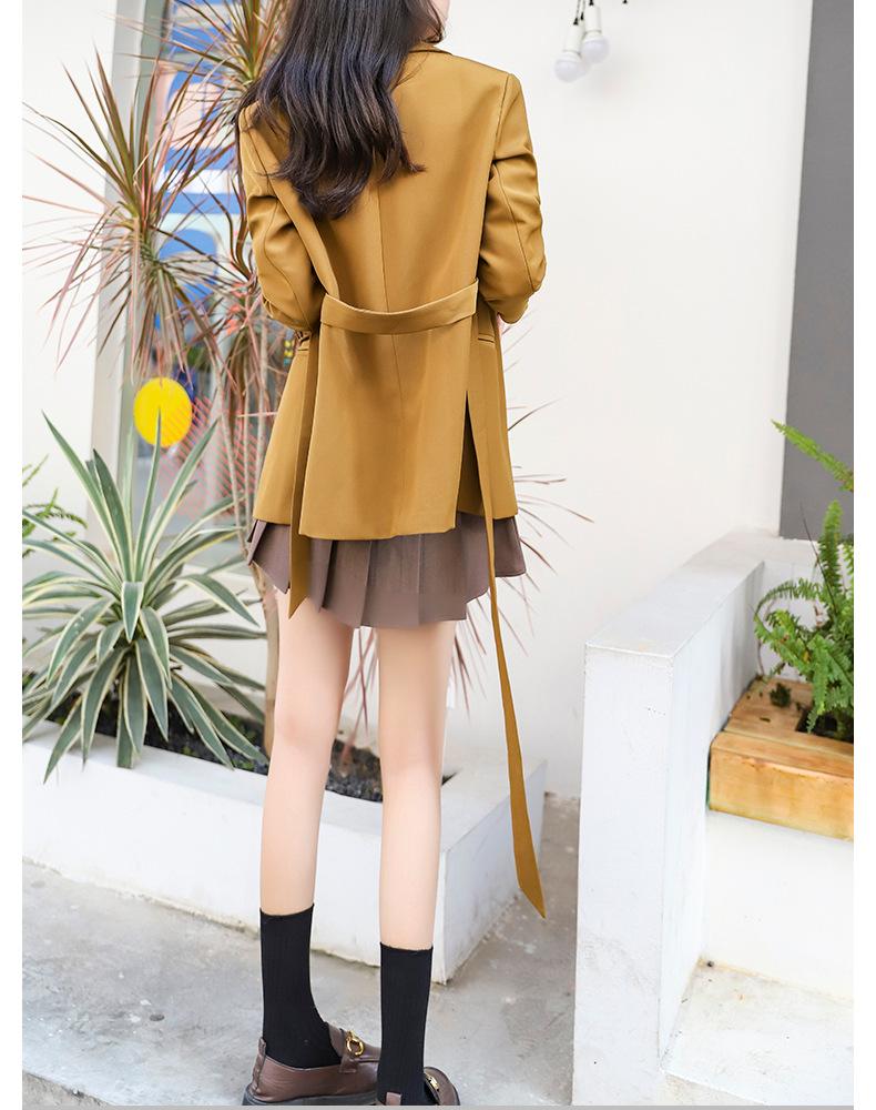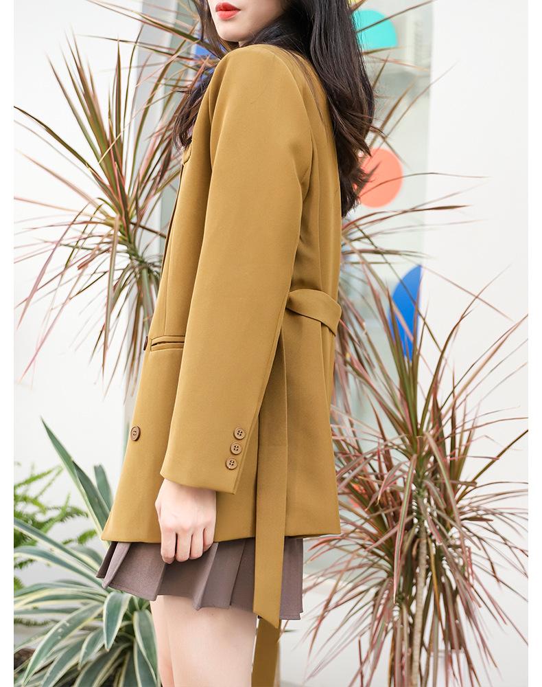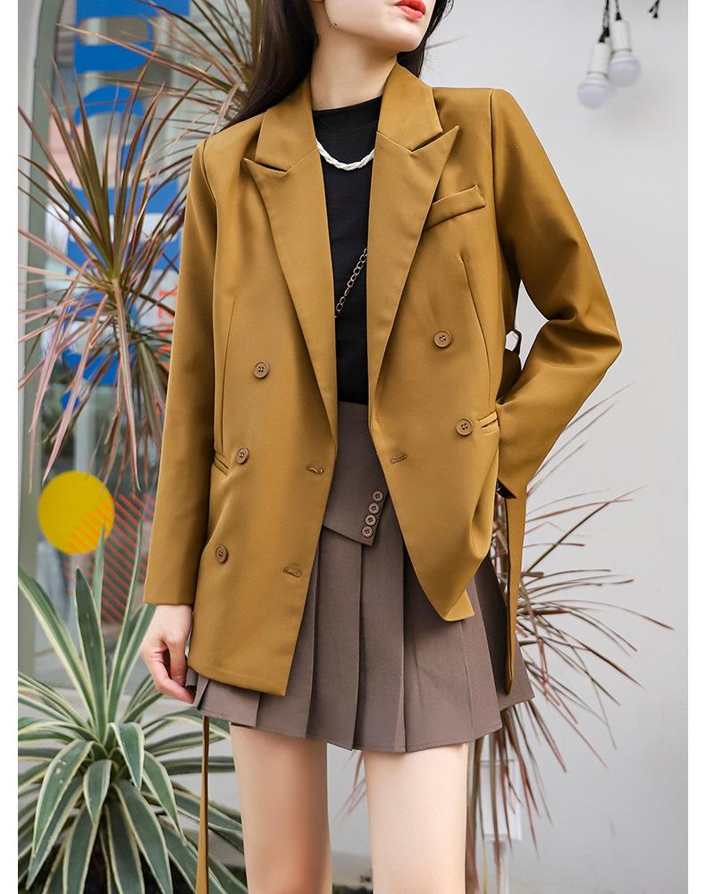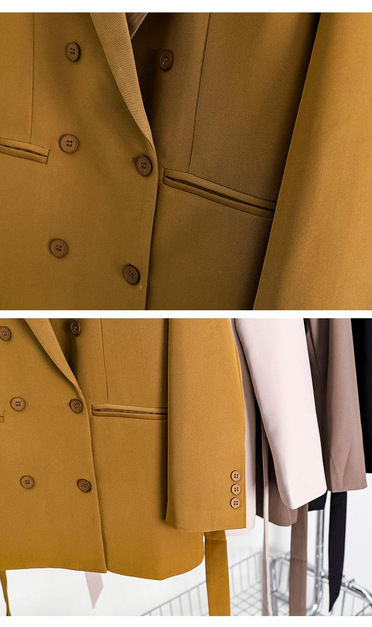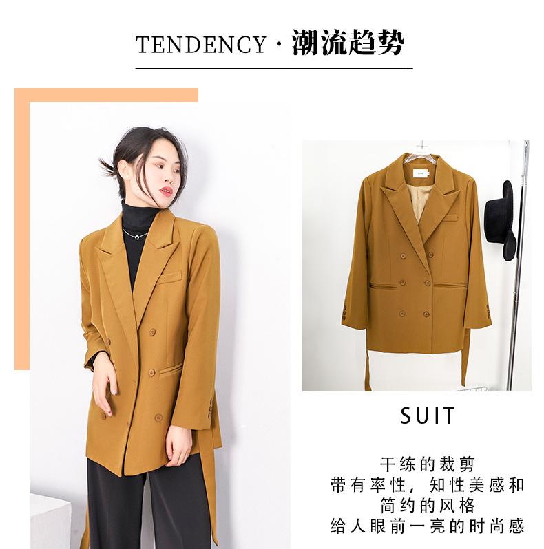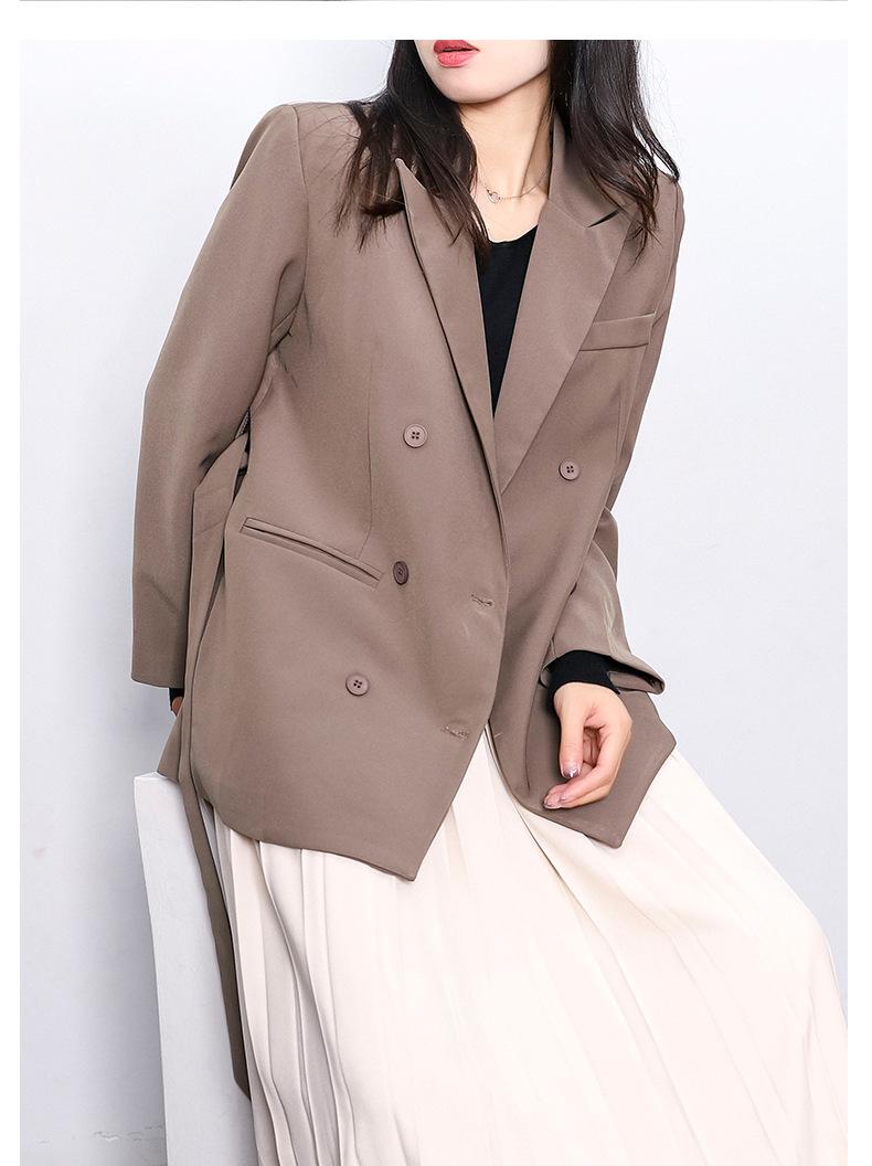 Principios de Otoño Nuevo Sencillo Moda Chaqueta de Traje Cruzada para Mujer Diseño con Sentido de Estilo Coreano Encaje en la Cintura Traje para Ir al Trabajo