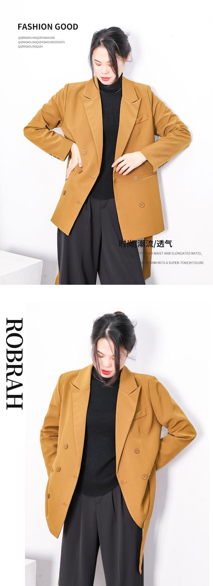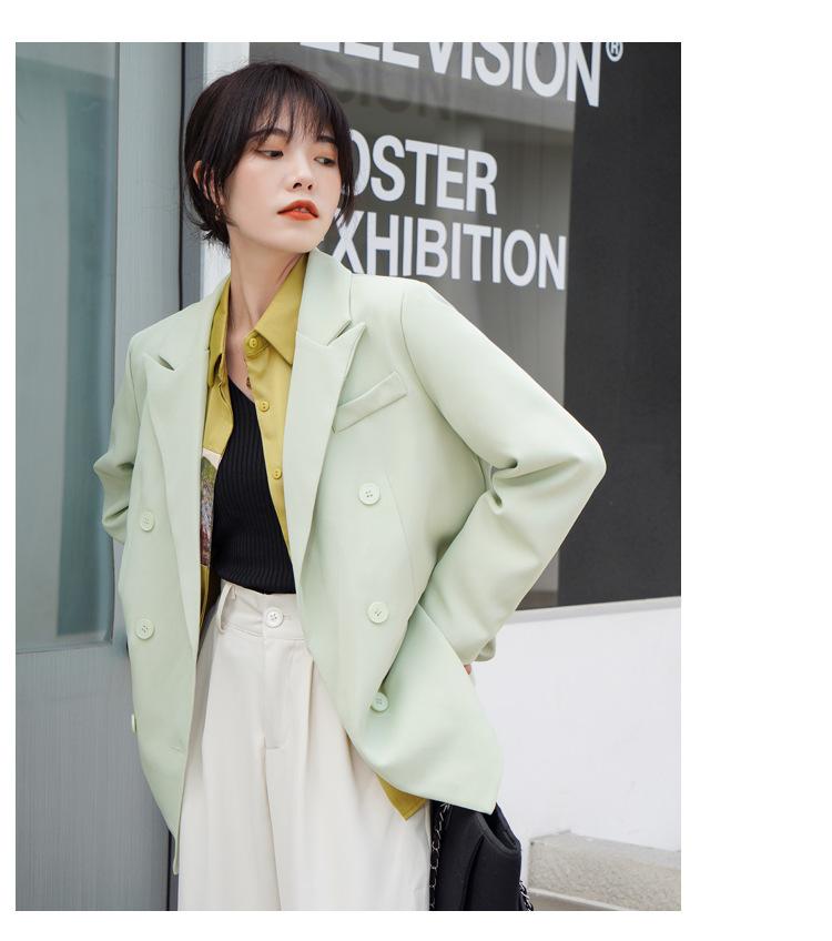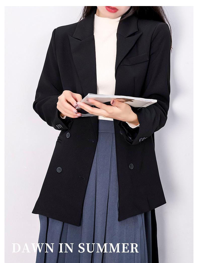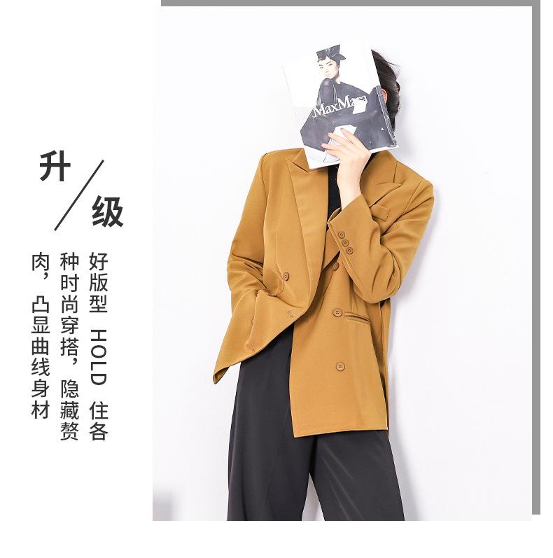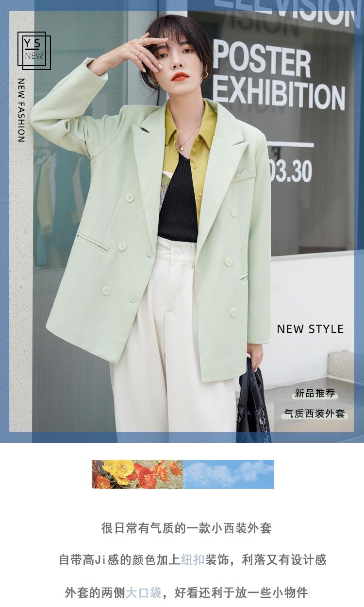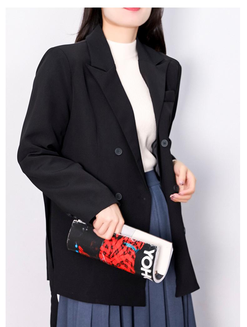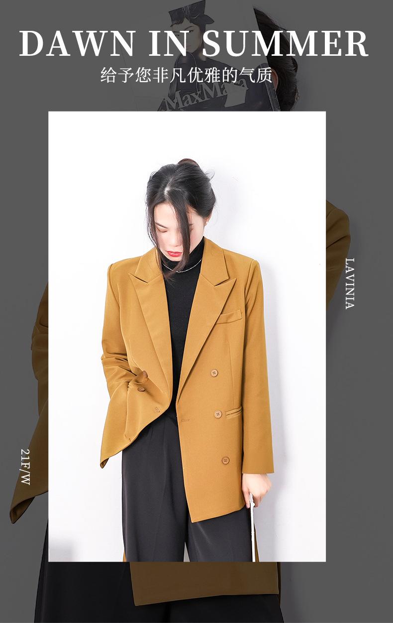 Principios de Otoño Nuevo Sencillo Moda Chaqueta de Traje Cruzada para Mujer Diseño con Sentido de Estilo Coreano Encaje en la Cintura Traje para Ir al Trabajo