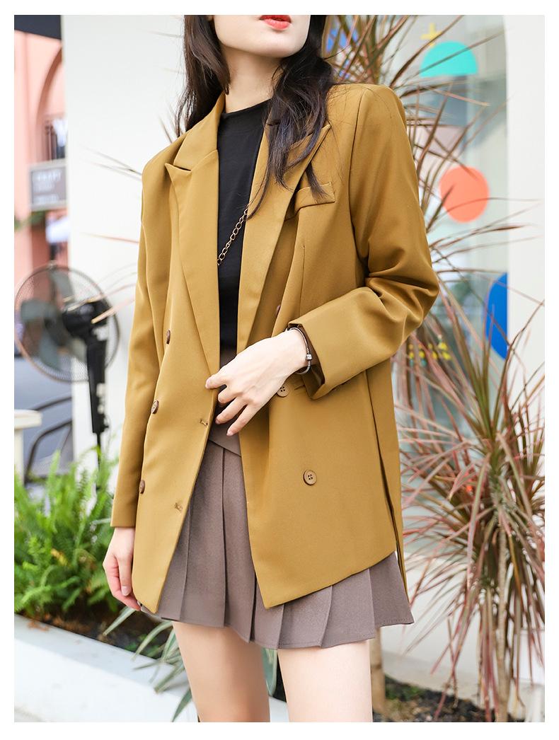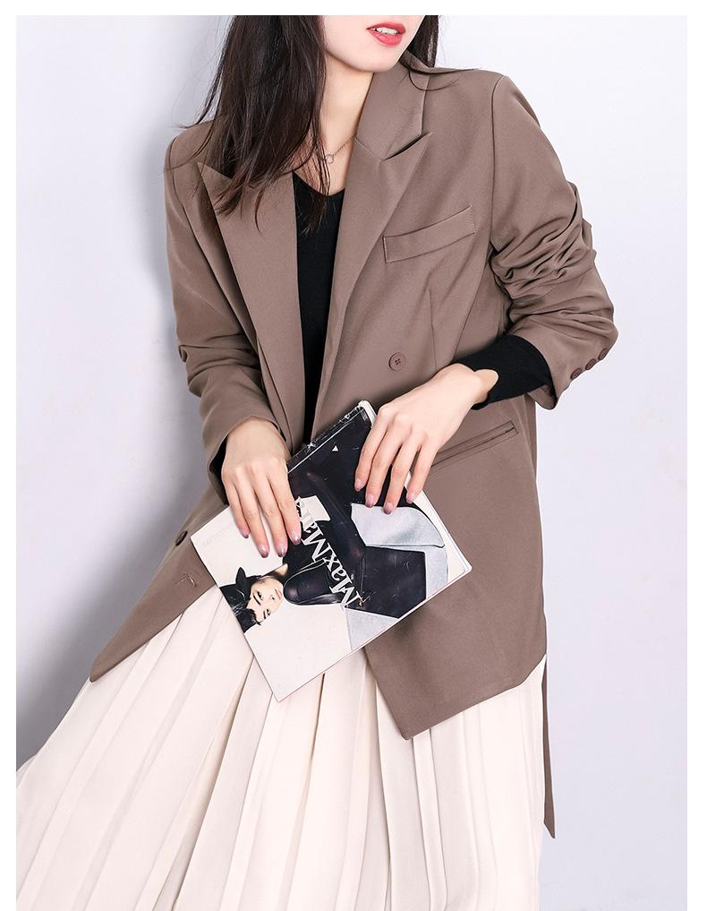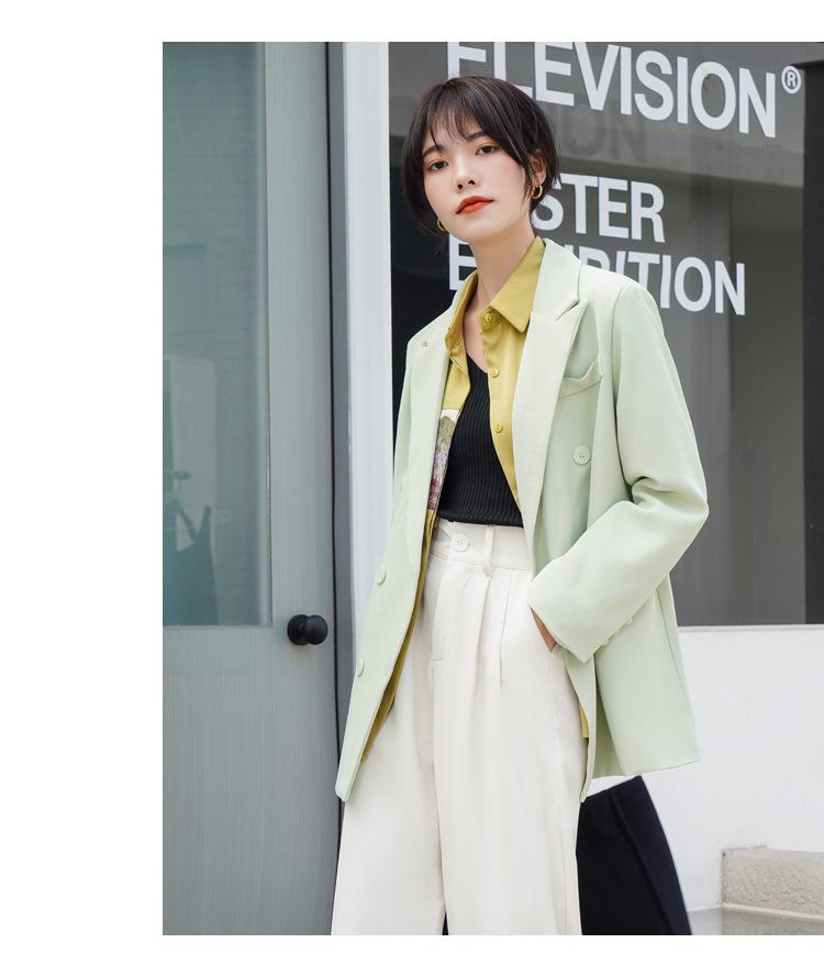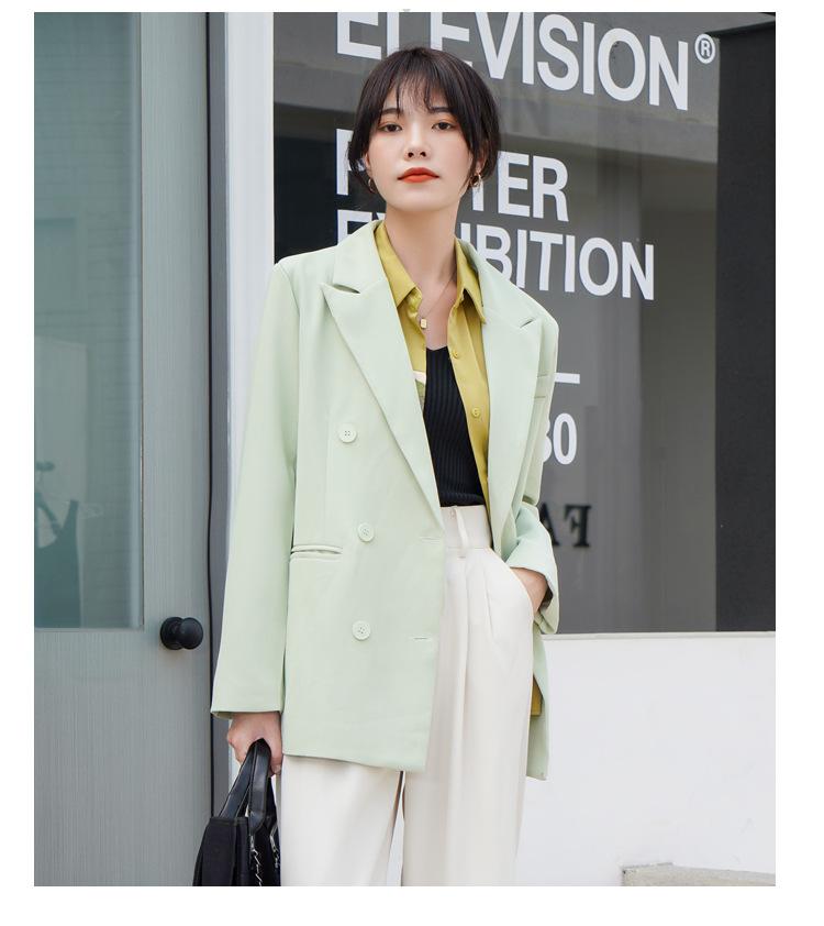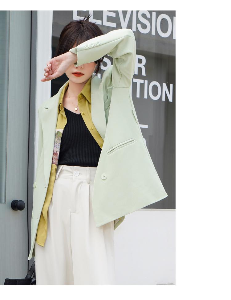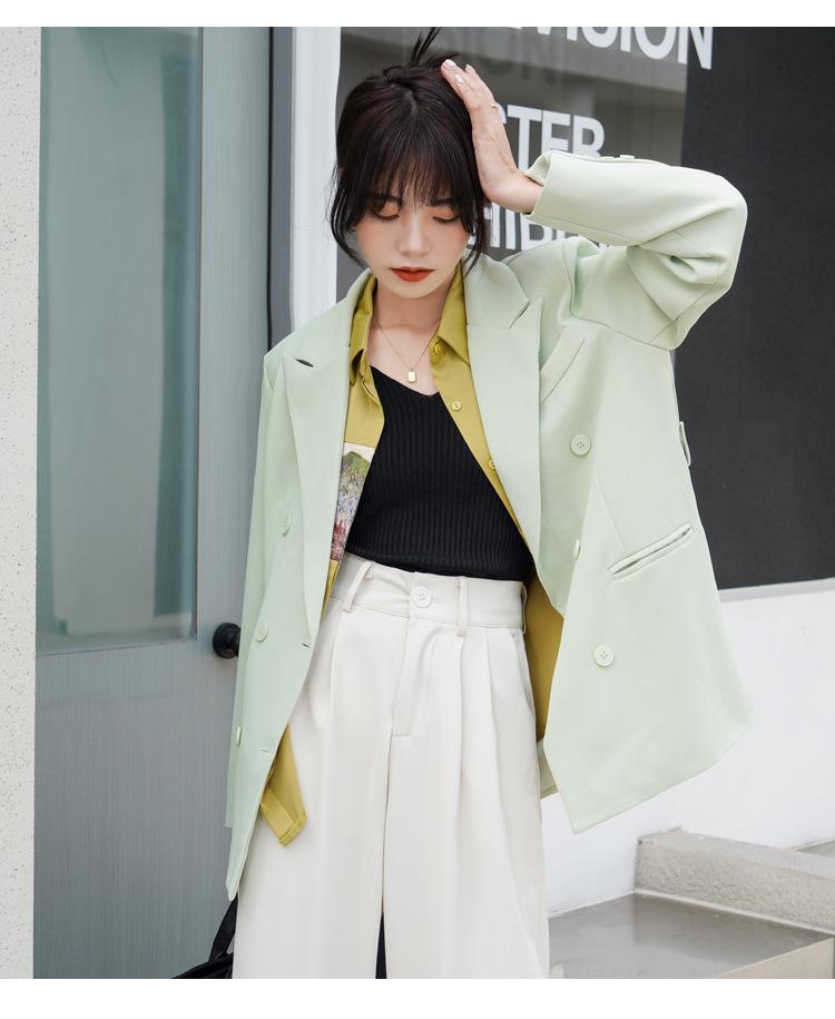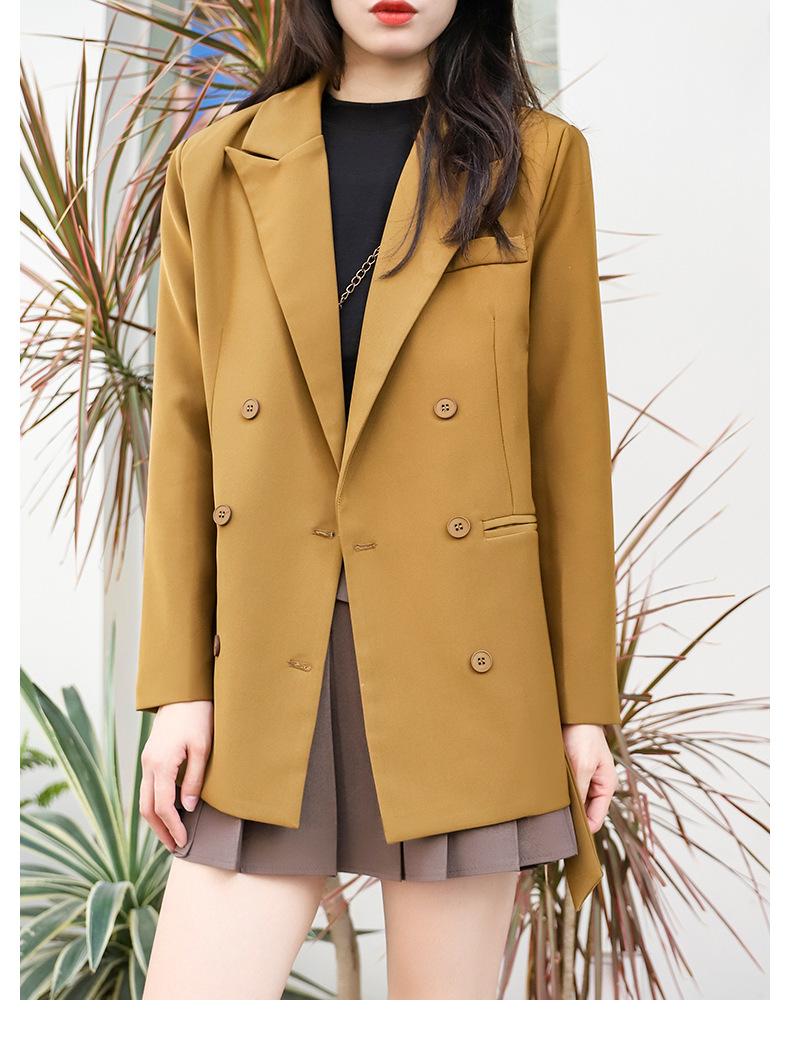 Principios de Otoño Nuevo Sencillo Moda Chaqueta de Traje Cruzada para Mujer Diseño con Sentido de Estilo Coreano Encaje en la Cintura Traje para Ir al Trabajo