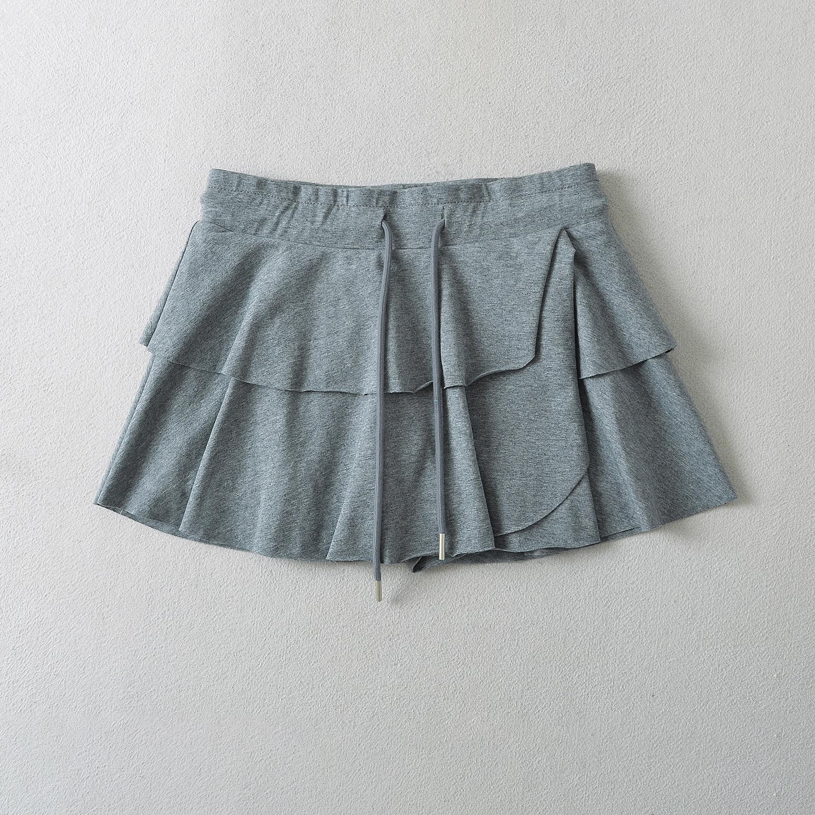 Falda corta informal sexy antiluz con cordón multicapa irregular francesa de verano 1453-24